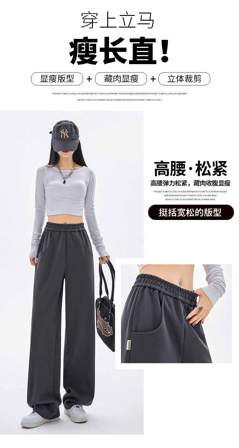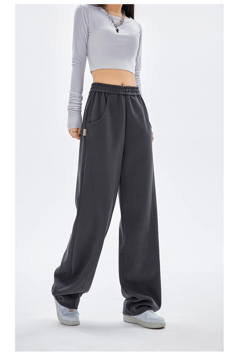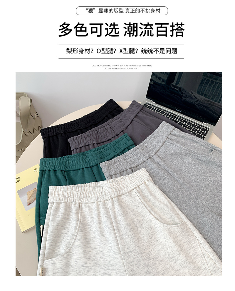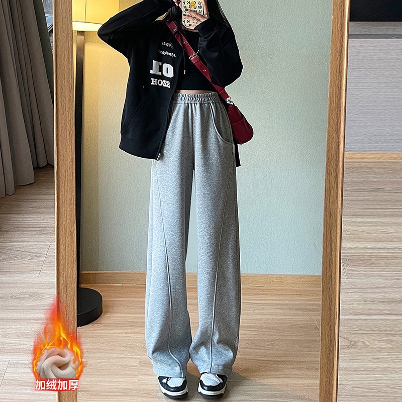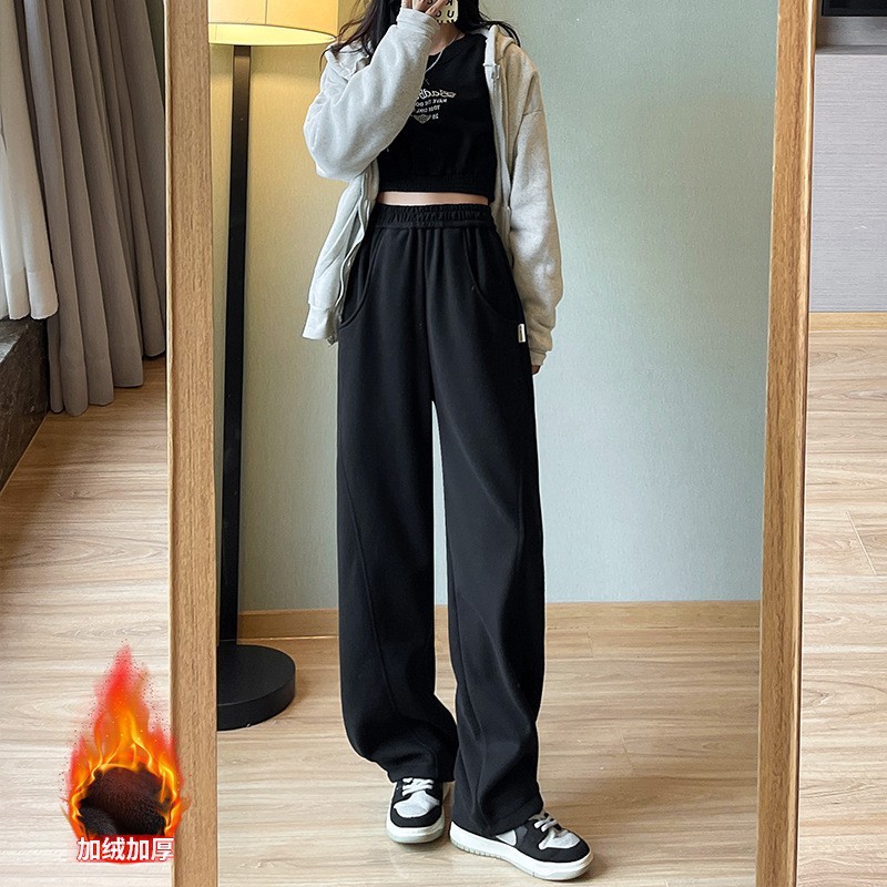 加绒运动裤秋冬裤子女直筒高腰阔腿裤垂坠感休闲窄版华棉香蕉裤