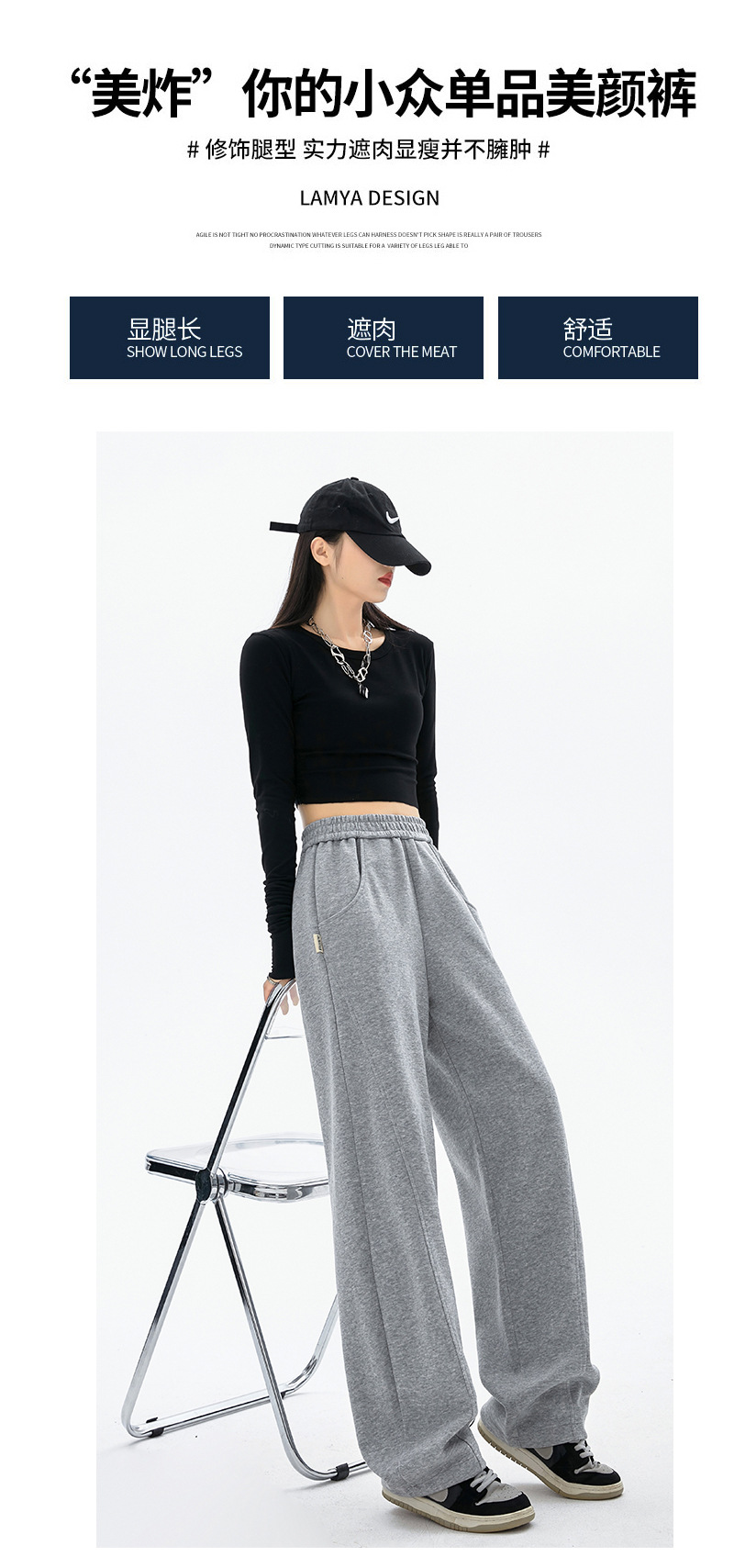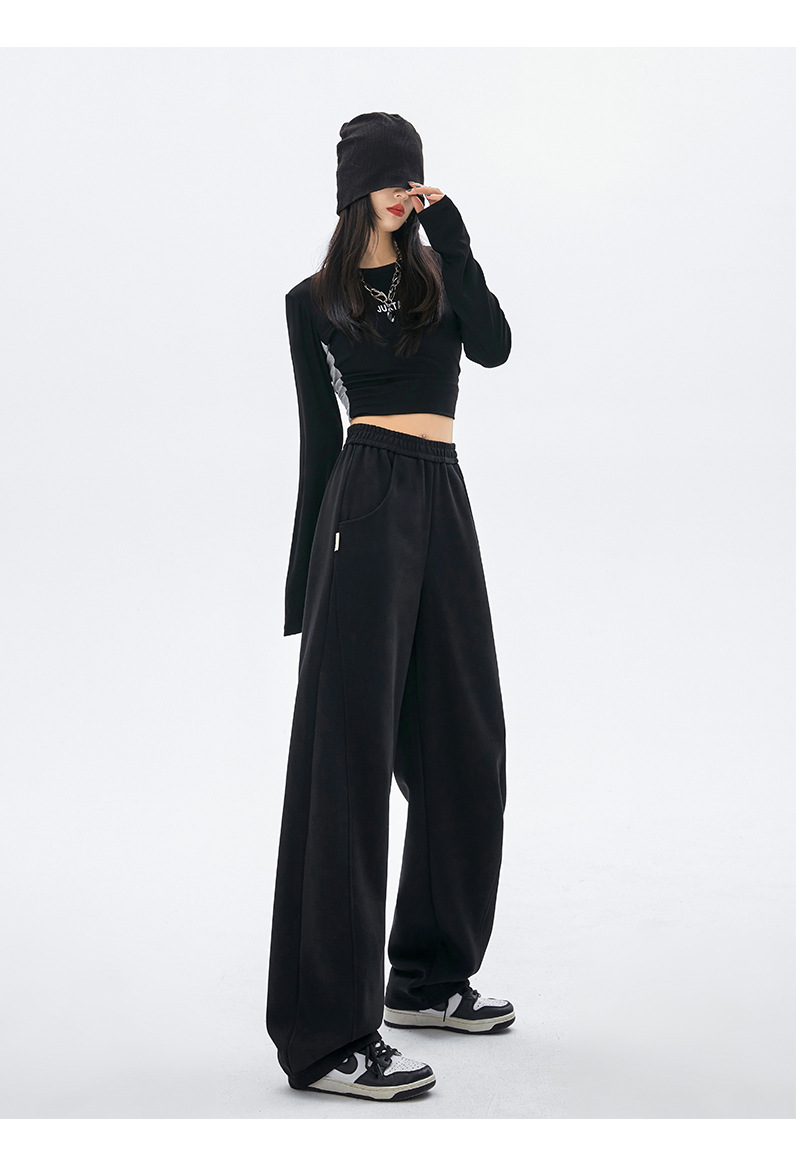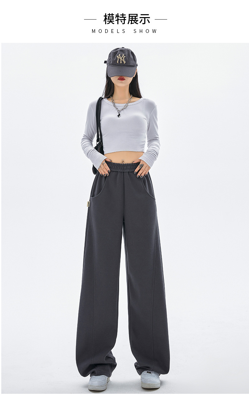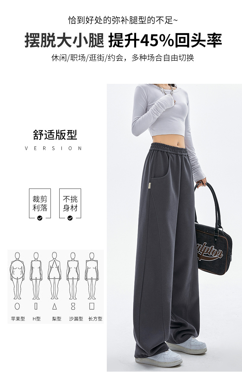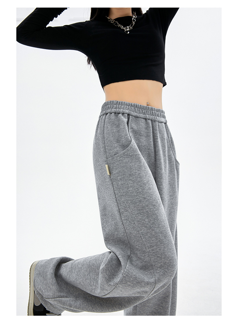 加绒运动裤秋冬裤子女直筒高腰阔腿裤垂坠感休闲窄版华棉香蕉裤