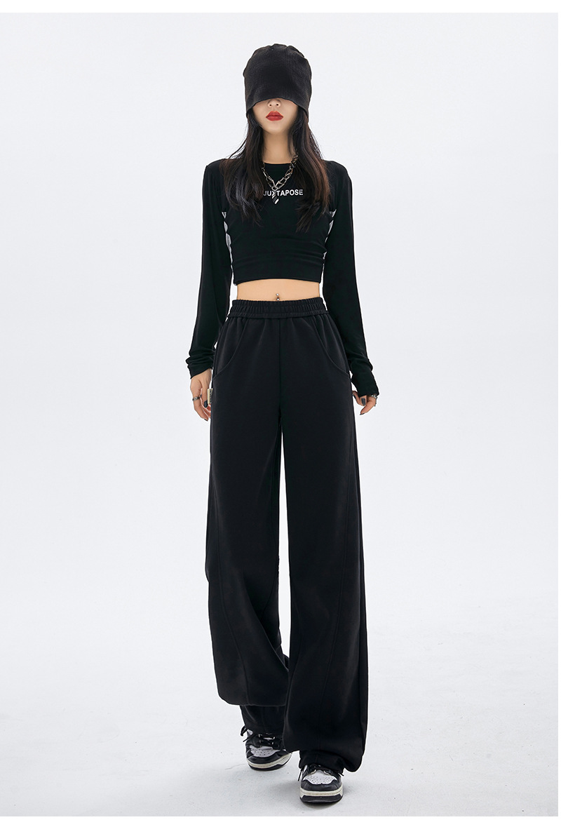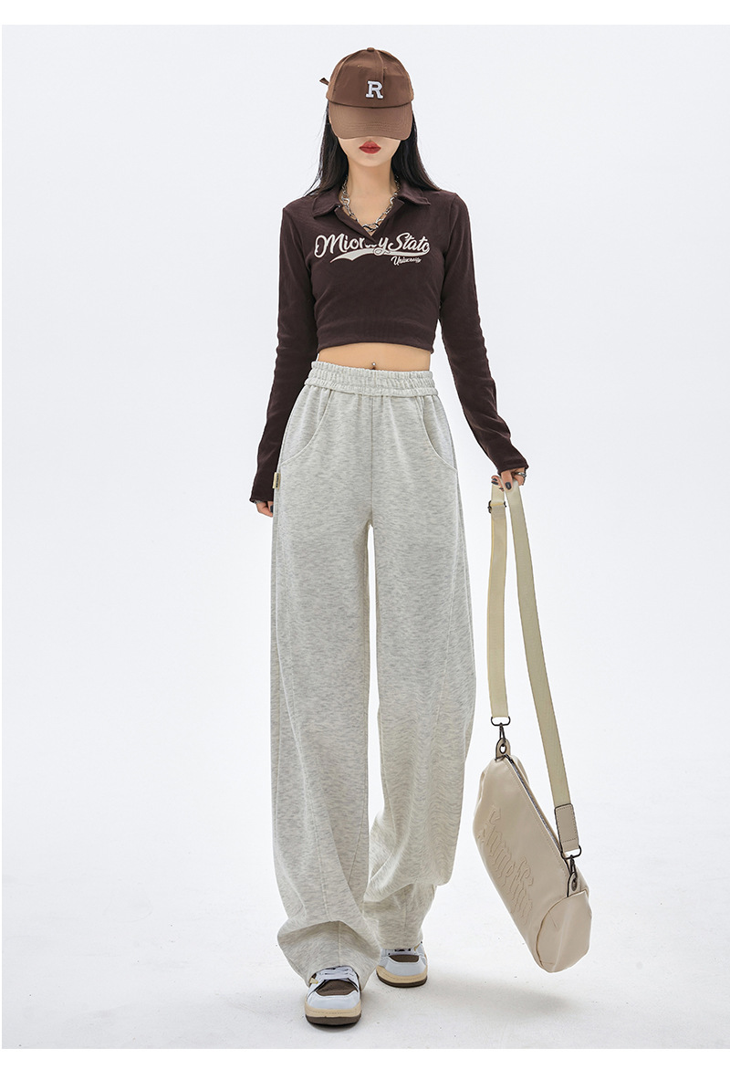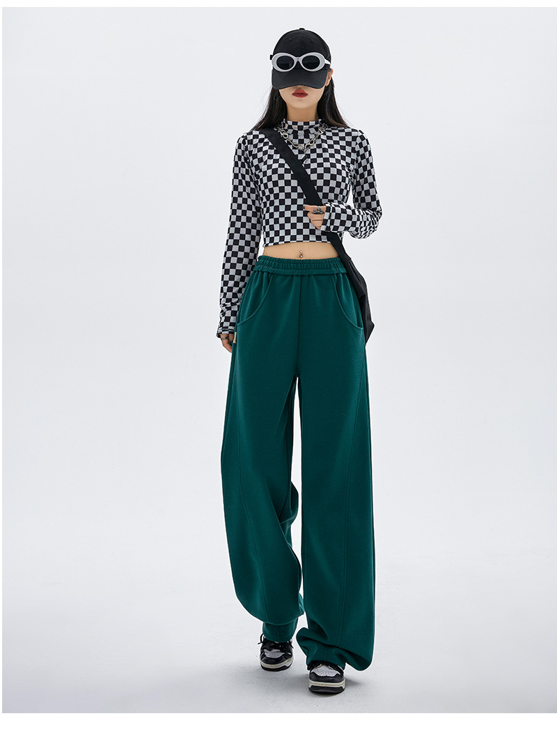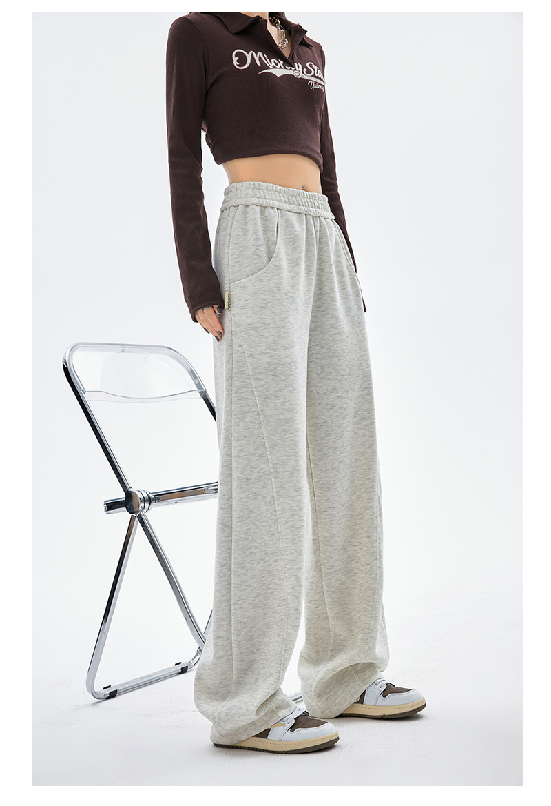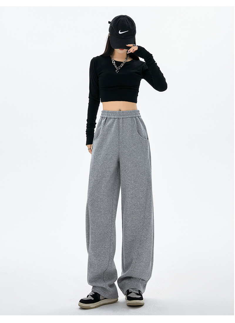 加绒运动裤秋冬裤子女直筒高腰阔腿裤垂坠感休闲窄版华棉香蕉裤