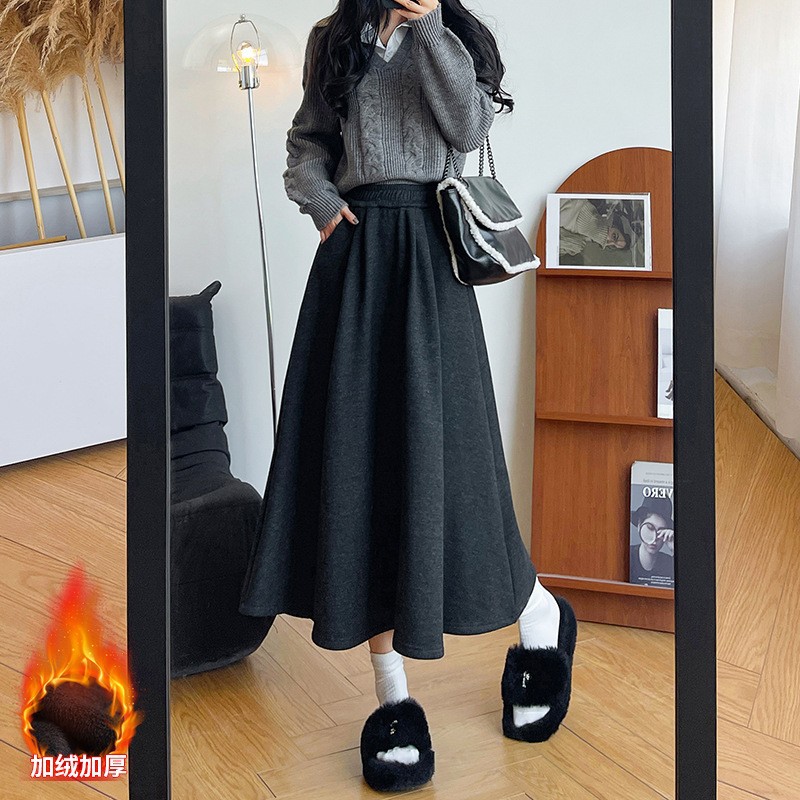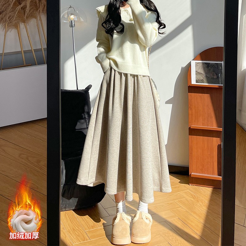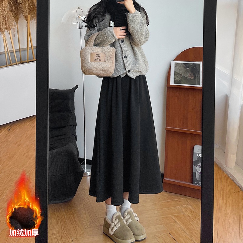 高克重加绒糯米山本裙女秋冬高腰a字显瘦裙子垂坠感中长款半身裙