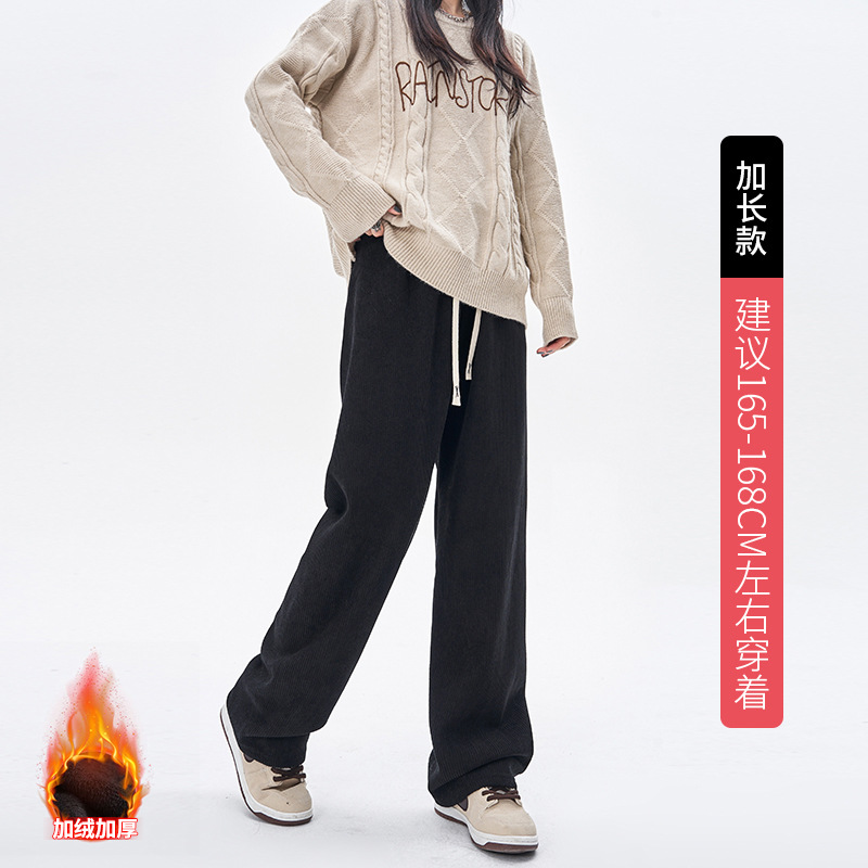 雪尼尔阔腿裤女裤秋冬新款加绒灯芯绒裤子女显瘦直筒高腰休闲裤