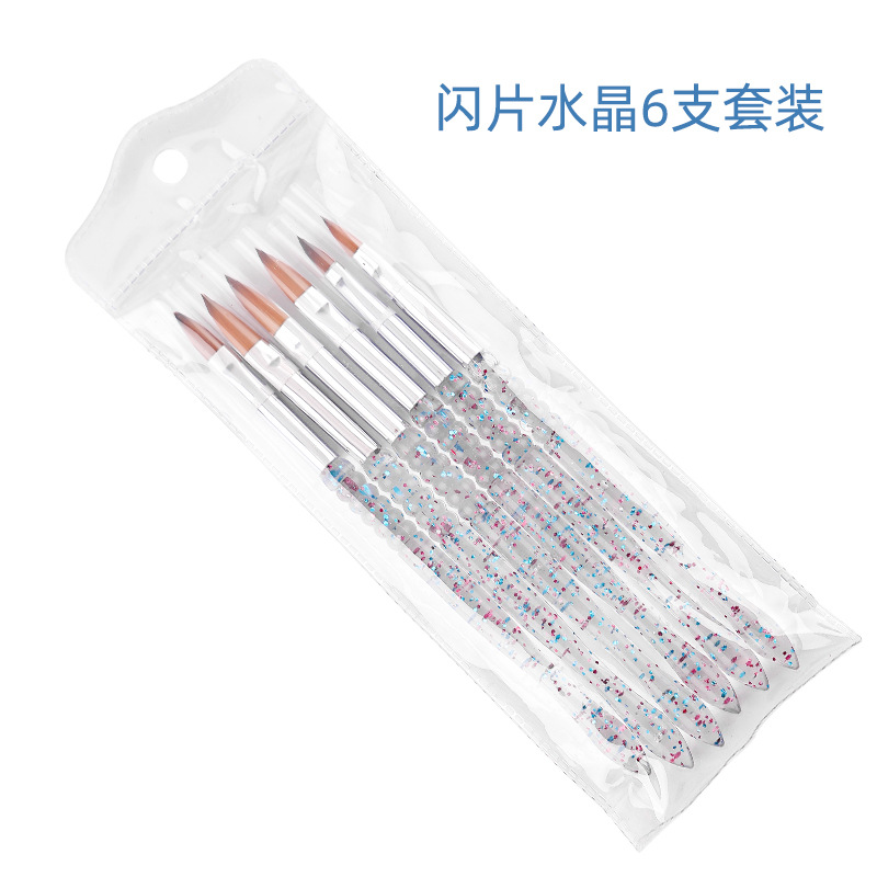 181 6支装亚克力闪粉杆水晶笔葱粉杆水晶笔雕花笔美甲笔刷工具