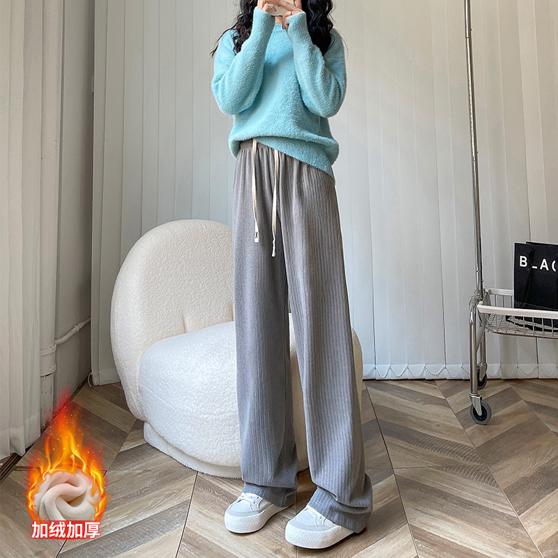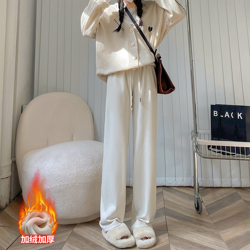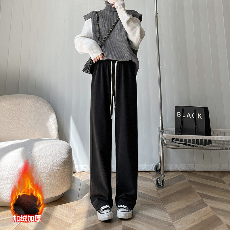 仿羊绒阔腿裤垂坠感裤子女春秋高腰女装休闲裤外穿显瘦窄版直筒裤