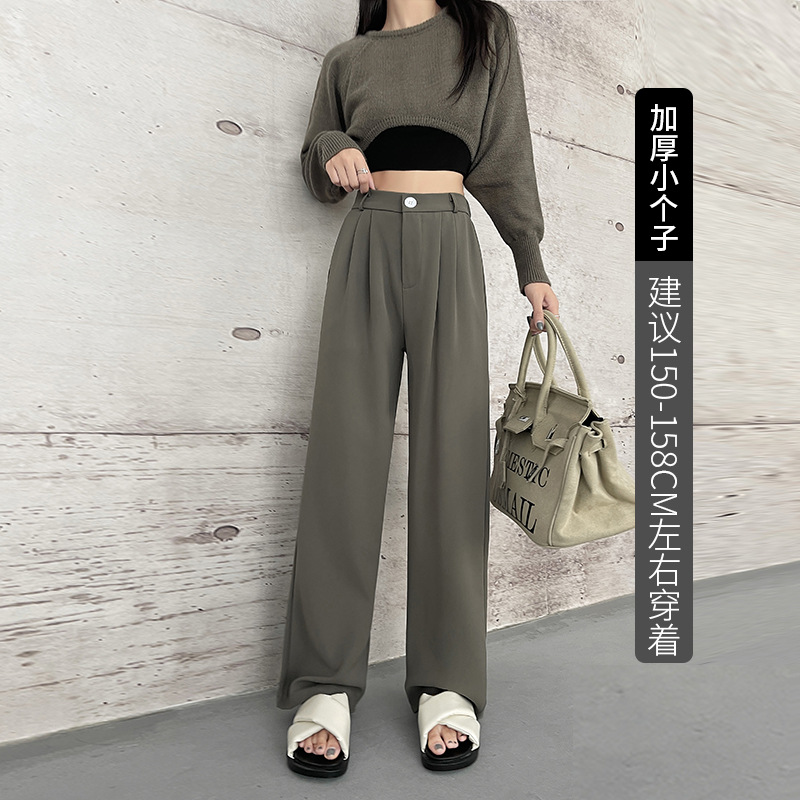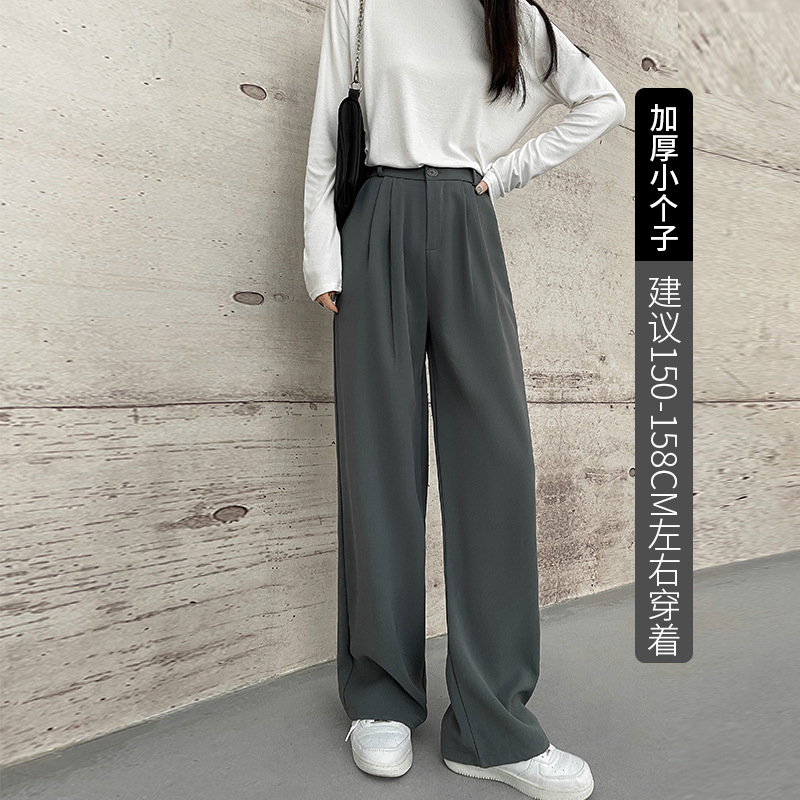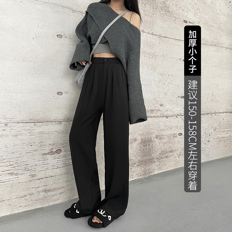 网文西装裤女秋冬新款拖地高腰阔腿裤垂感休闲直筒窄版小个子裤子