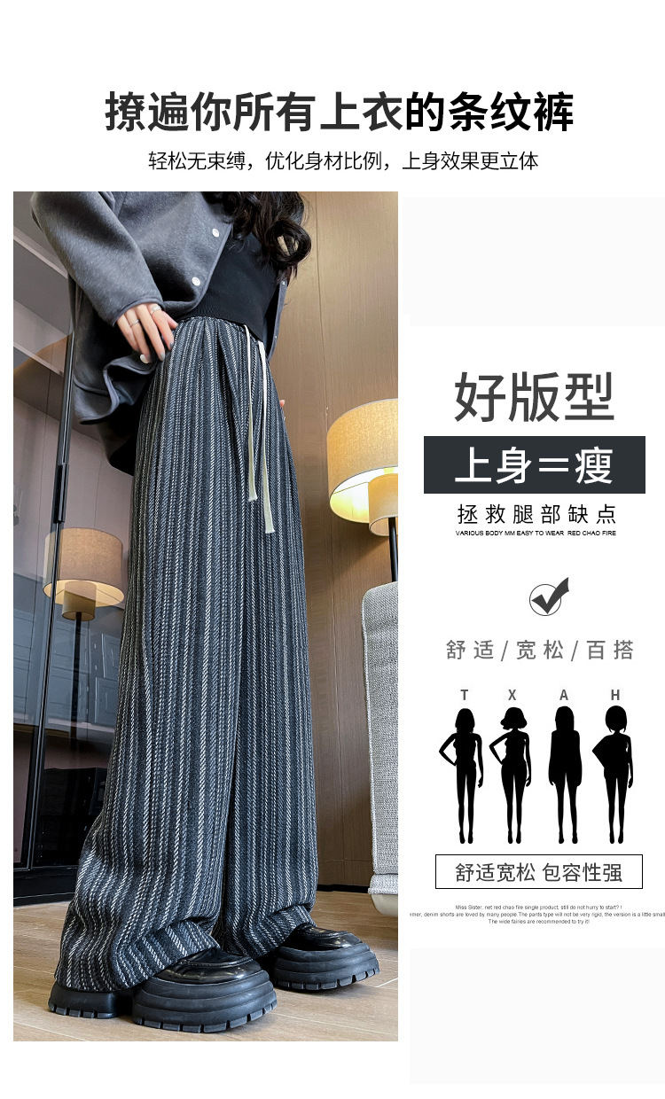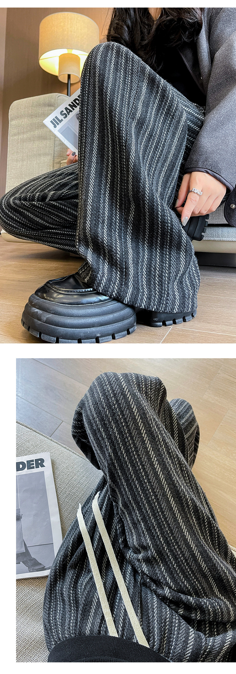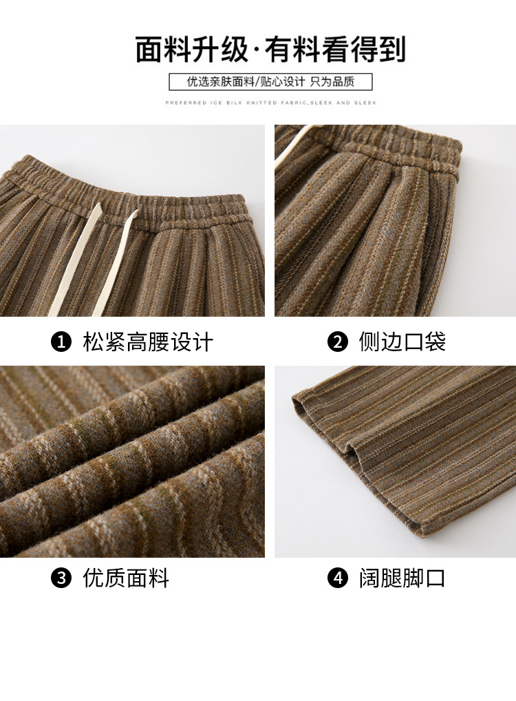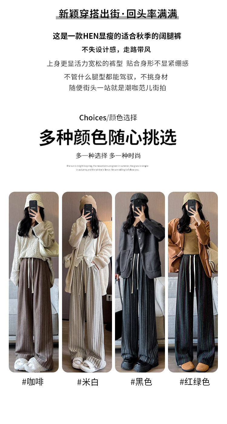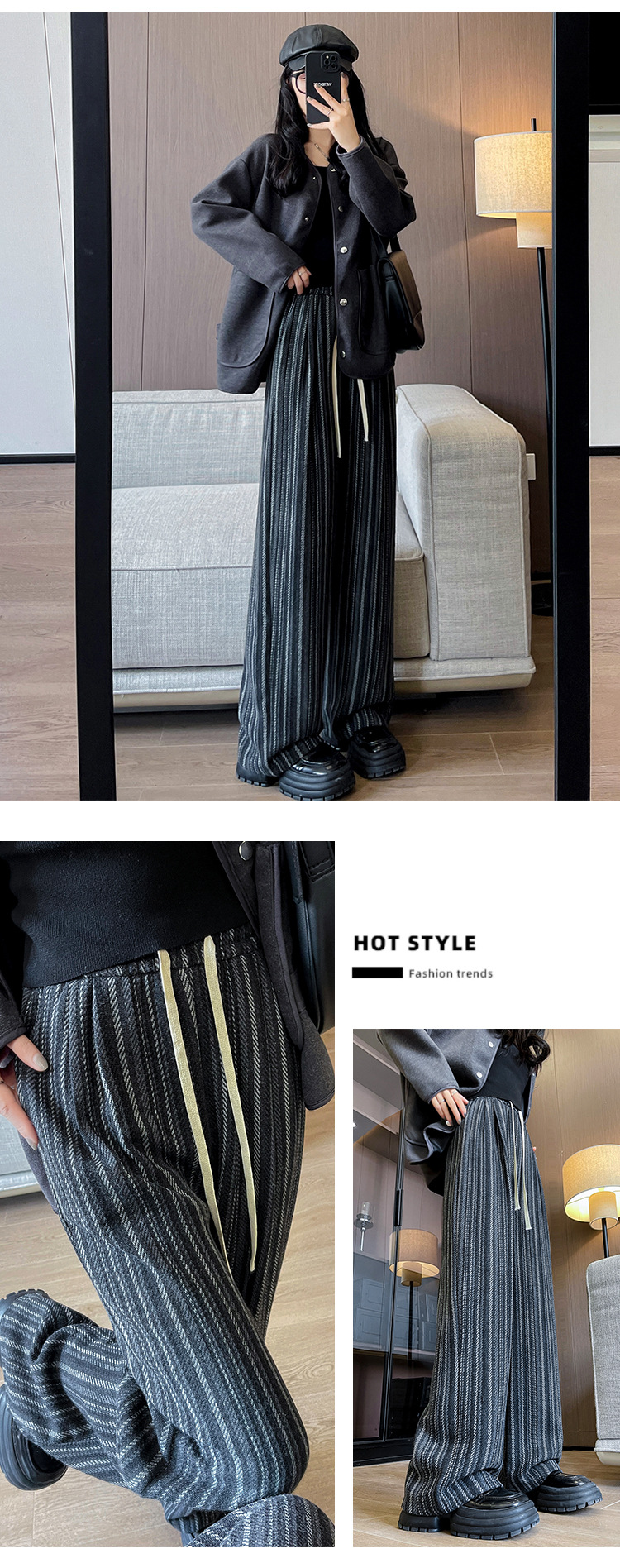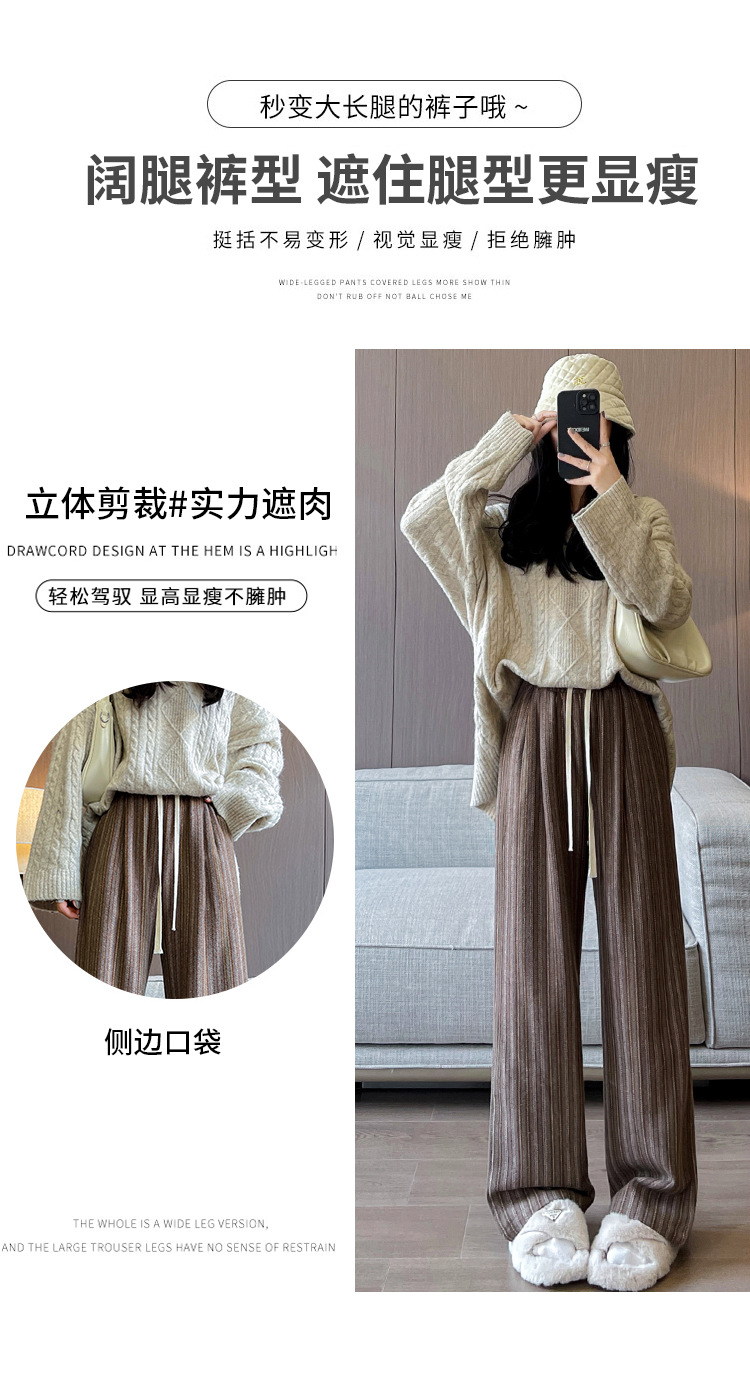 竖条纹毛呢阔腿裤女裤子女款秋冬慵懒山本风直筒裤显瘦复古休闲裤