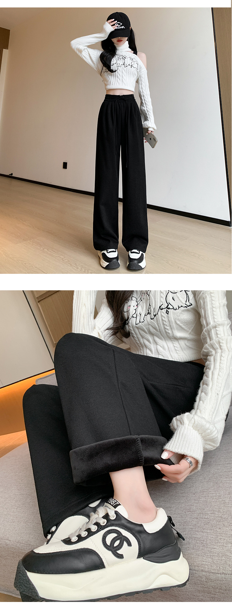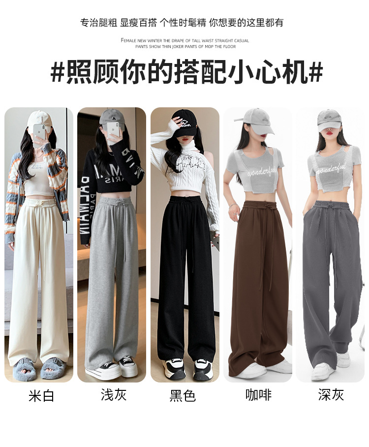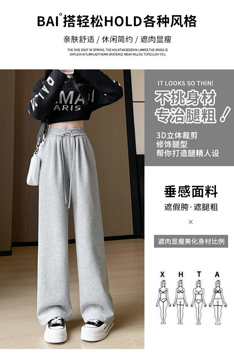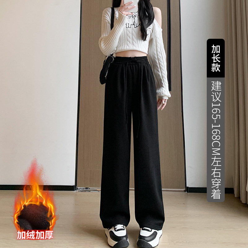 美式阔腿裤女裤子女款秋新款显瘦直筒休闲拖地长裤冬季加绒运动裤