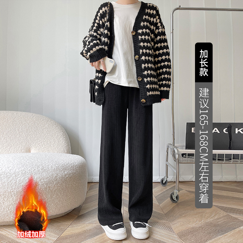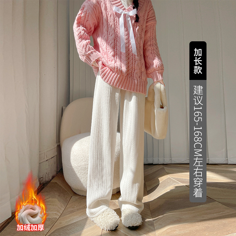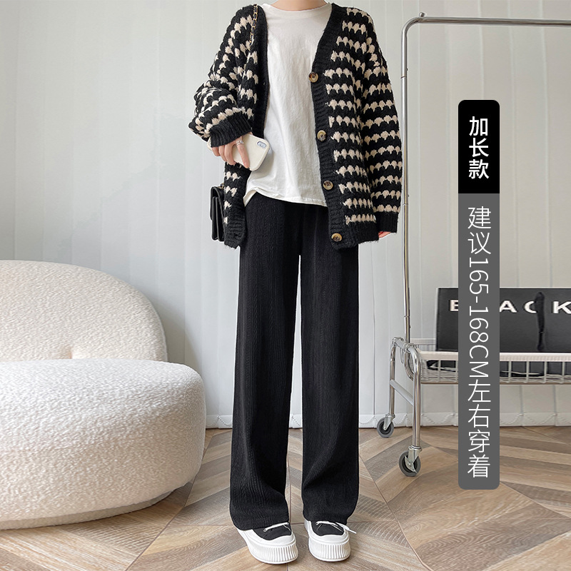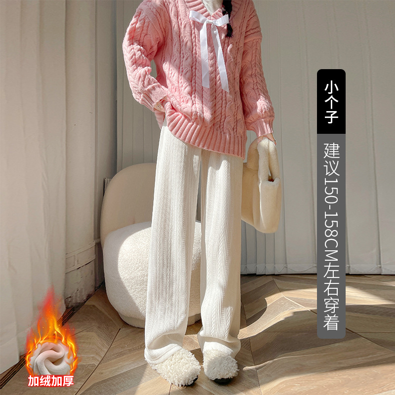 雪尼尔阔腿裤女春秋新款拖地裤垂感高腰休闲裤麦穗针织小个子裤子
