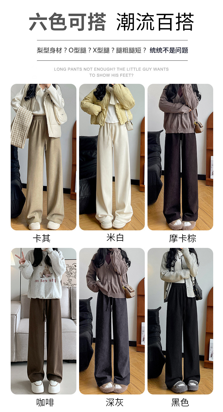 阔腿裤女秋冬裤子女款加绒外穿女装垂感休闲裤显瘦高腰拖地直筒裤