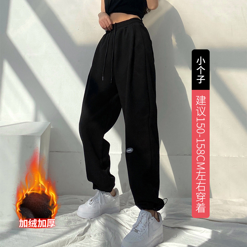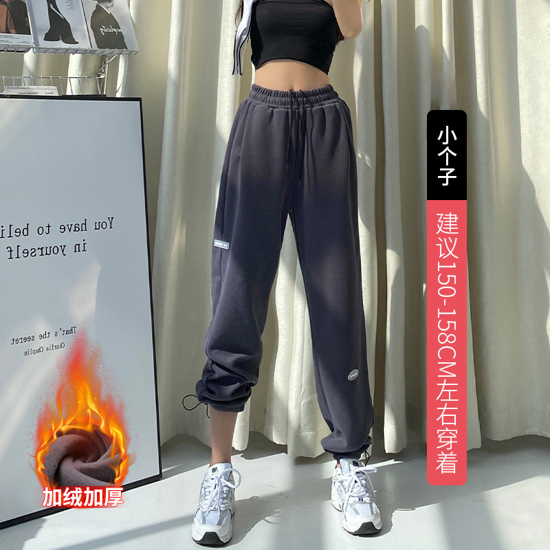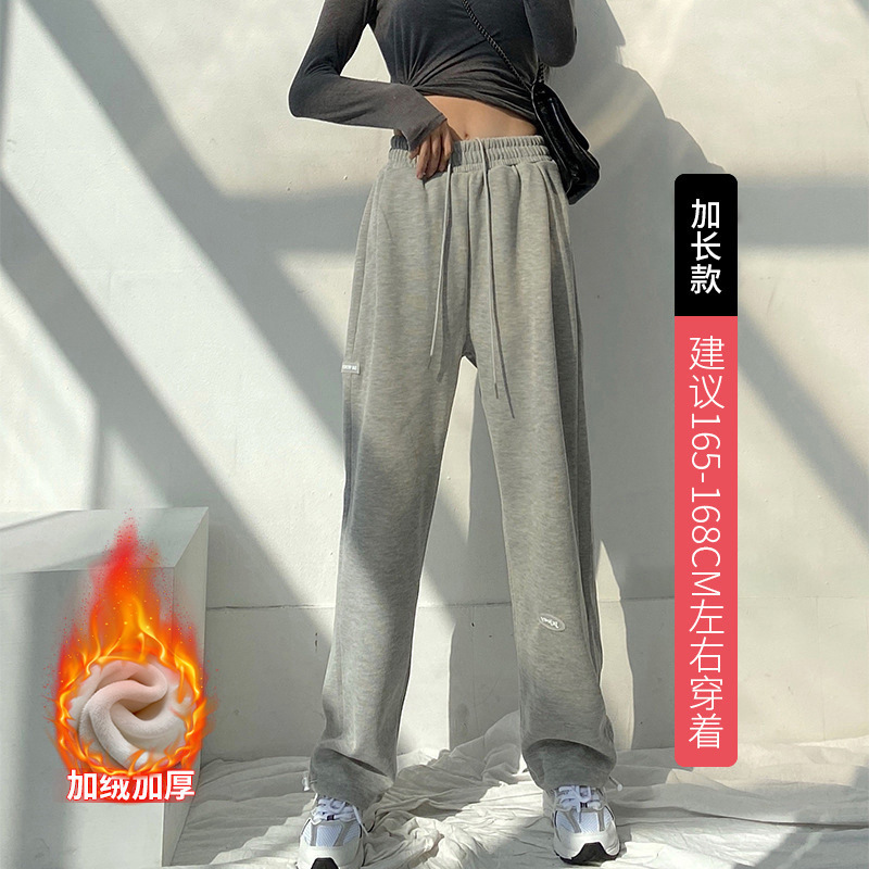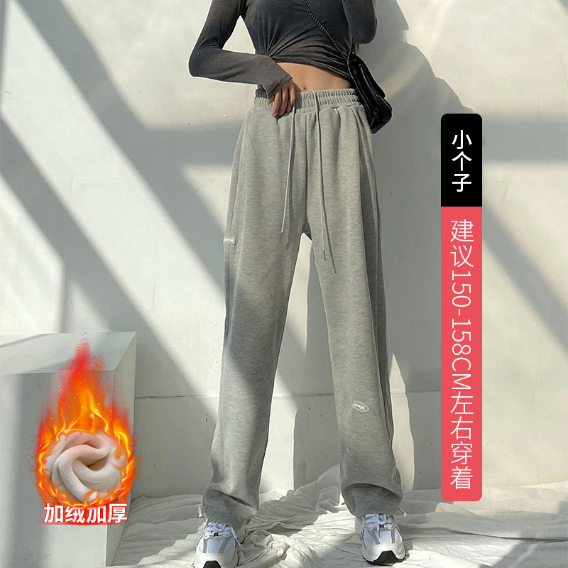 米妮运动裤女秋冬加绒裤子女装外穿直筒休闲裤卫裤高腰垂感阔腿裤