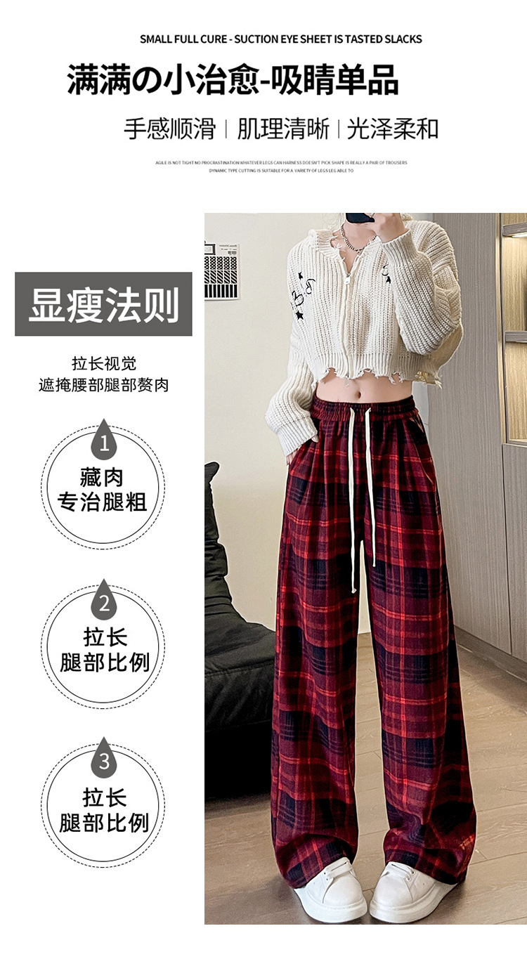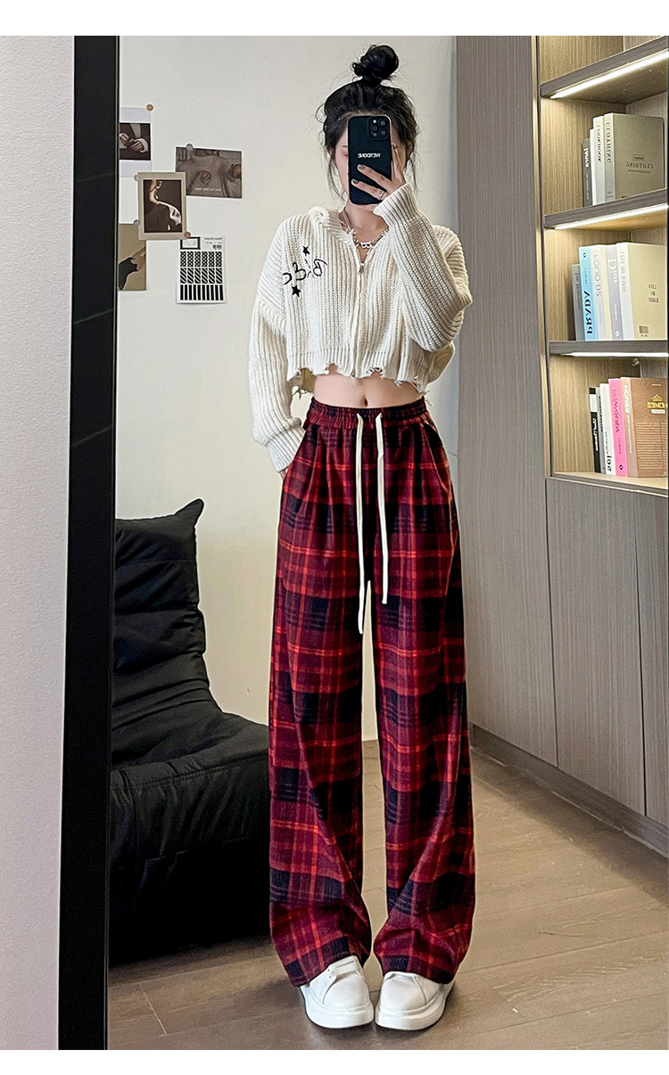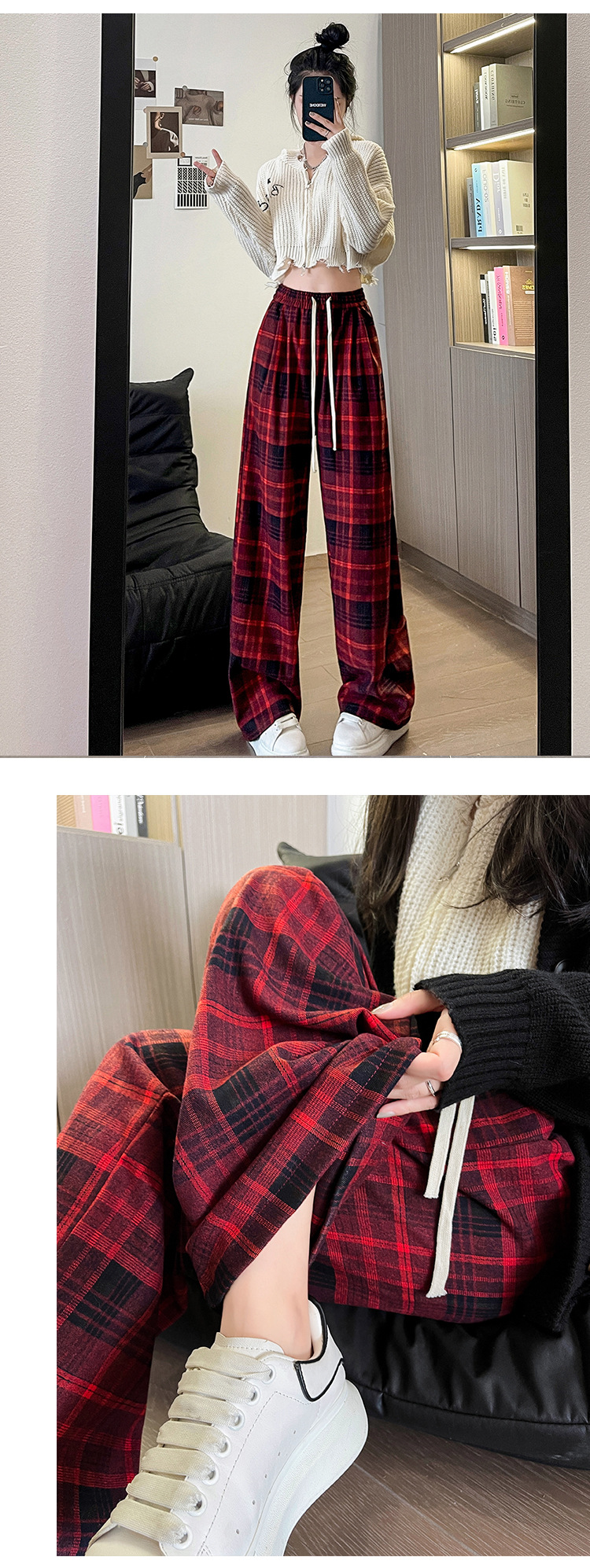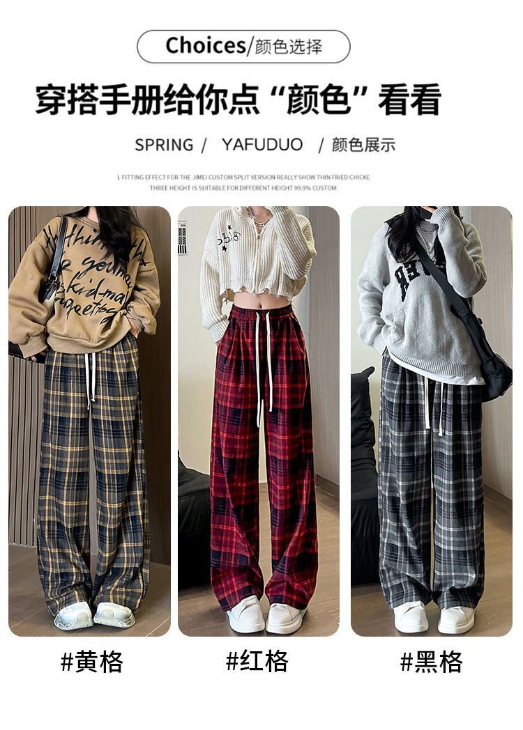 美式加绒格子裤女裤子秋冬新款磨毛复古休闲裤宽松直筒窄版阔腿裤