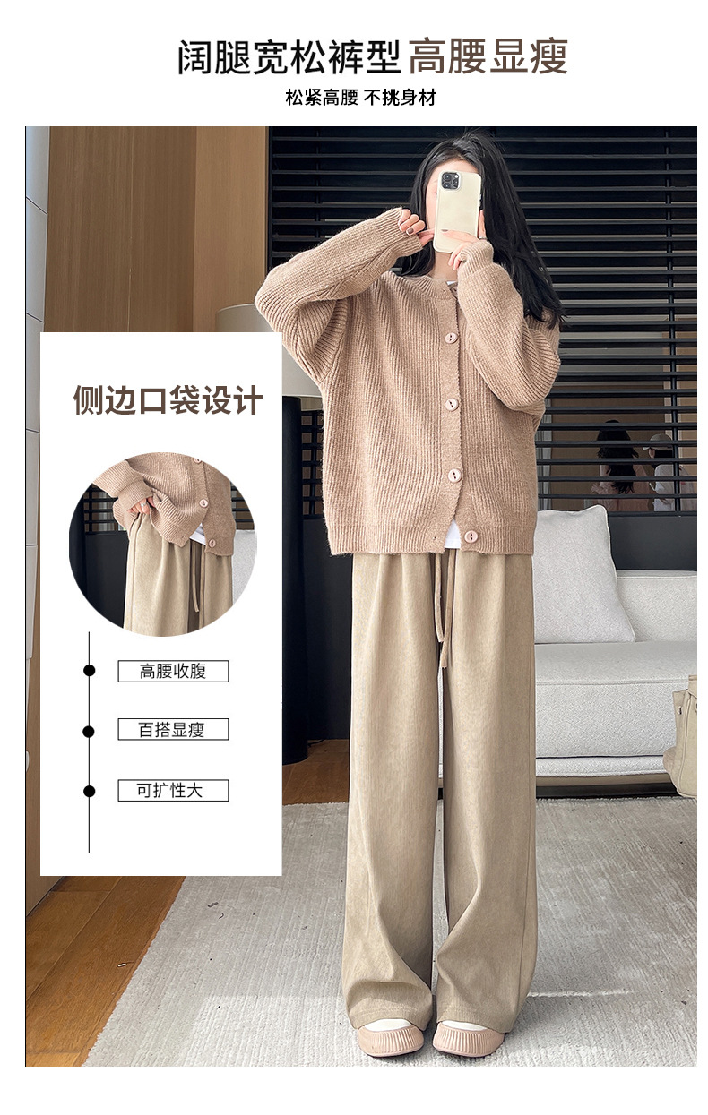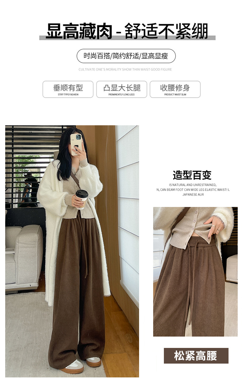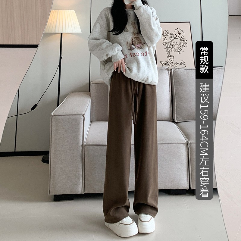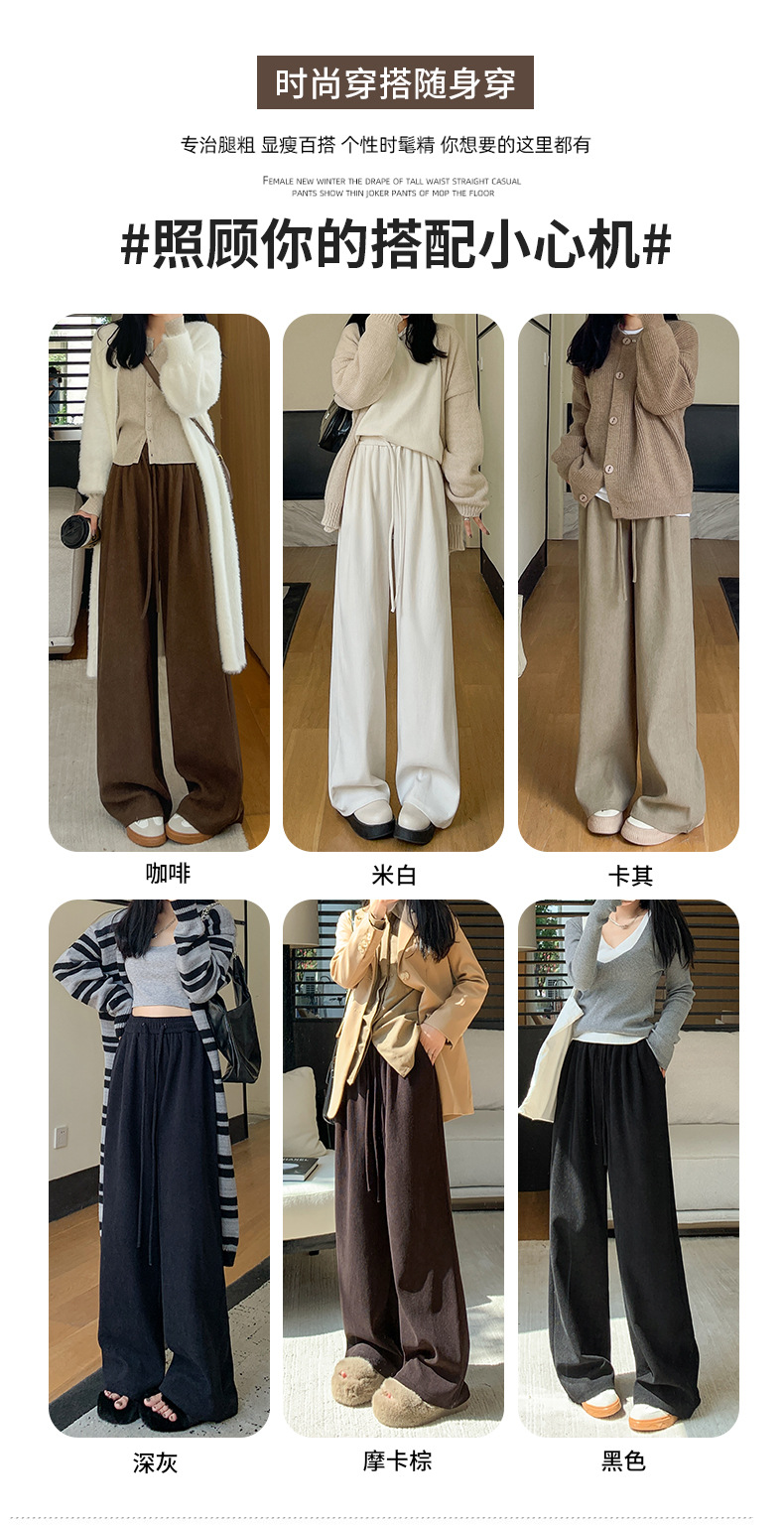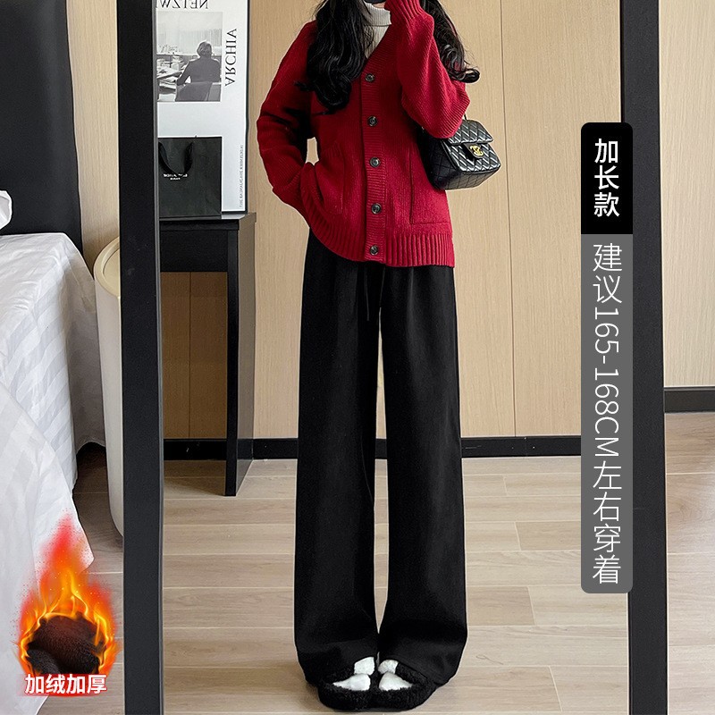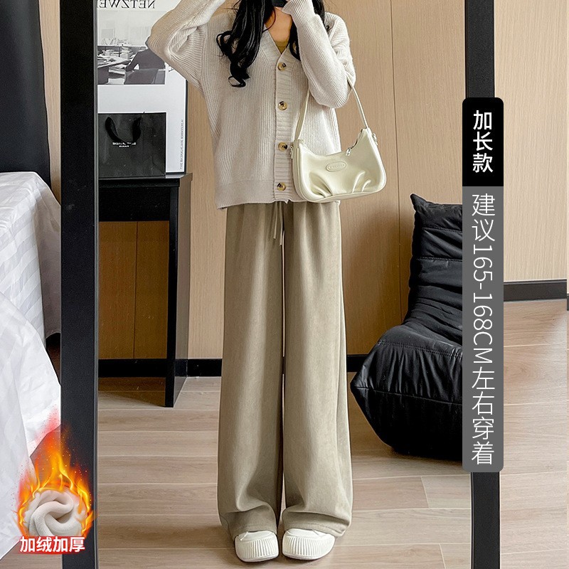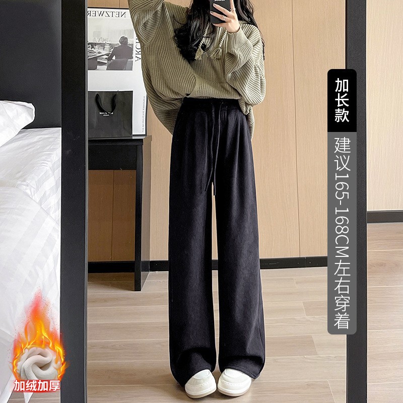 雪尼尔阔腿裤女裤子女款加绒裤女装慵懒拖地直筒裤高腰显瘦休闲裤