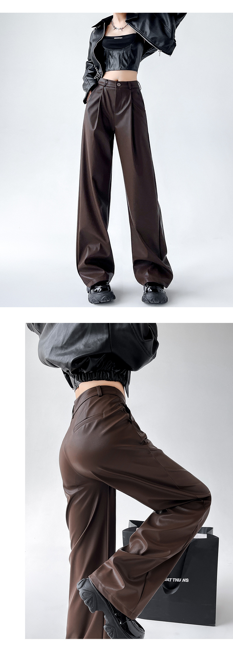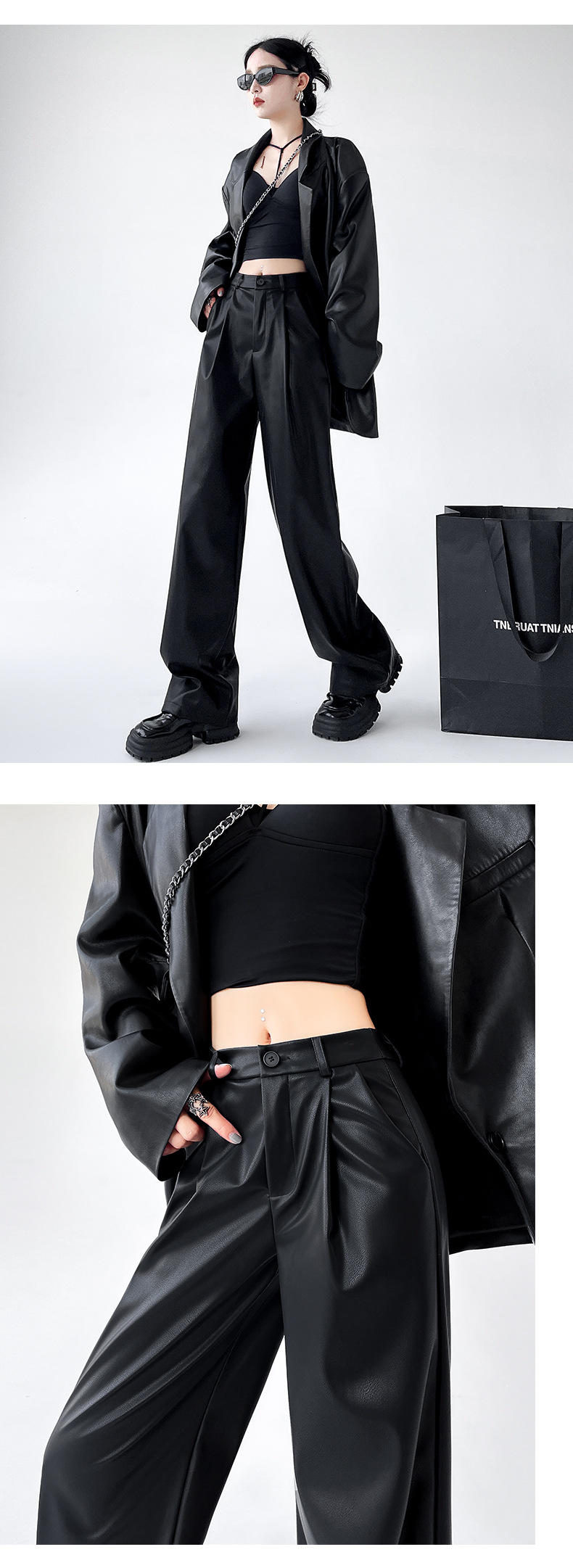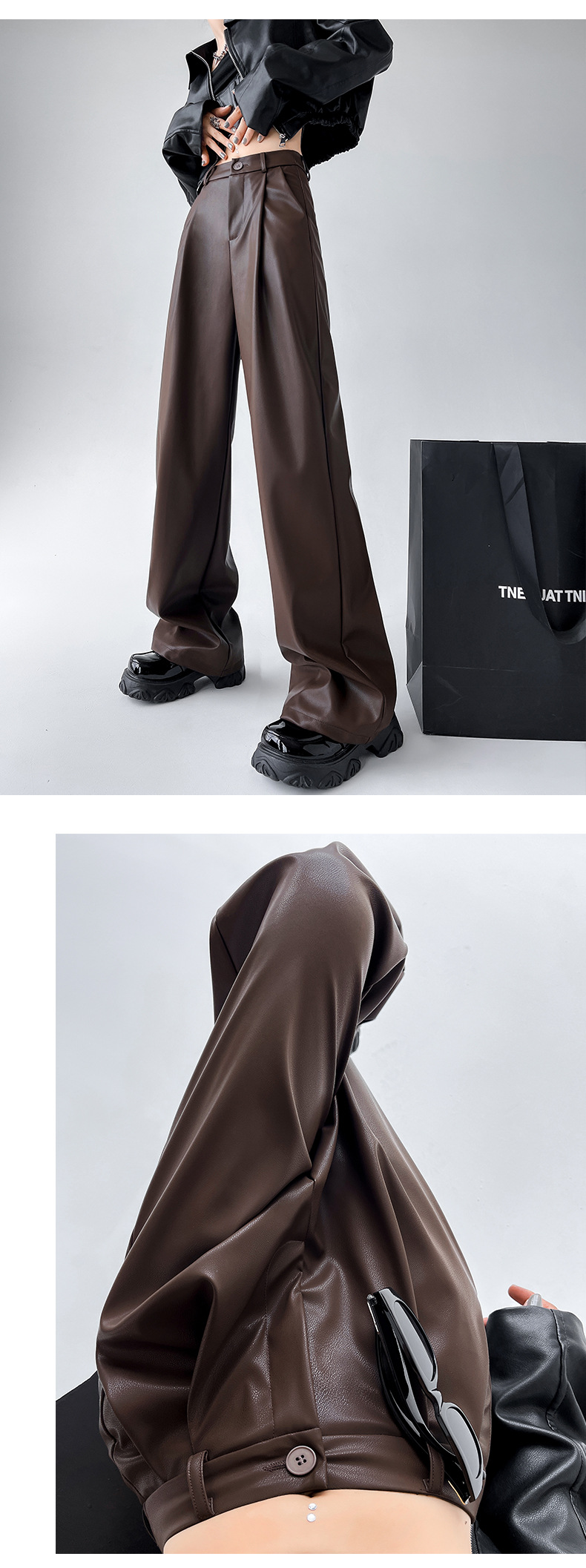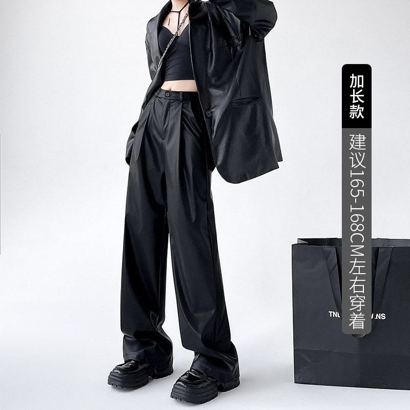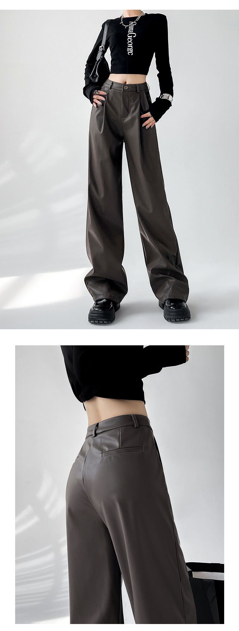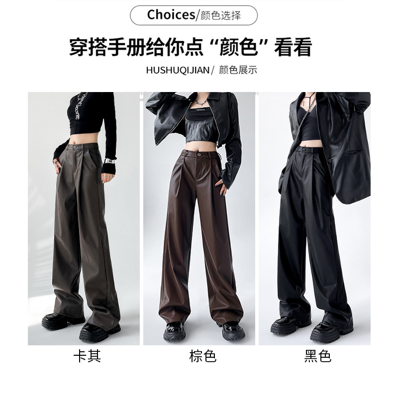 卡其阔腿裤女裤子春秋2023新款宽松高级感直筒裤显瘦垂感西装皮裤