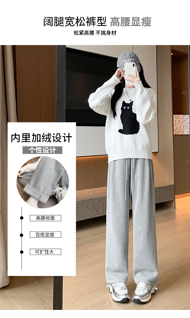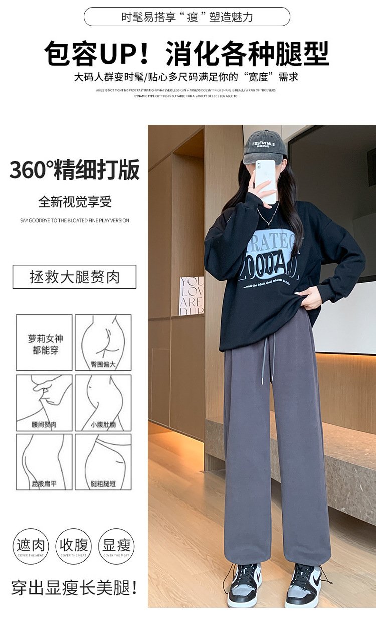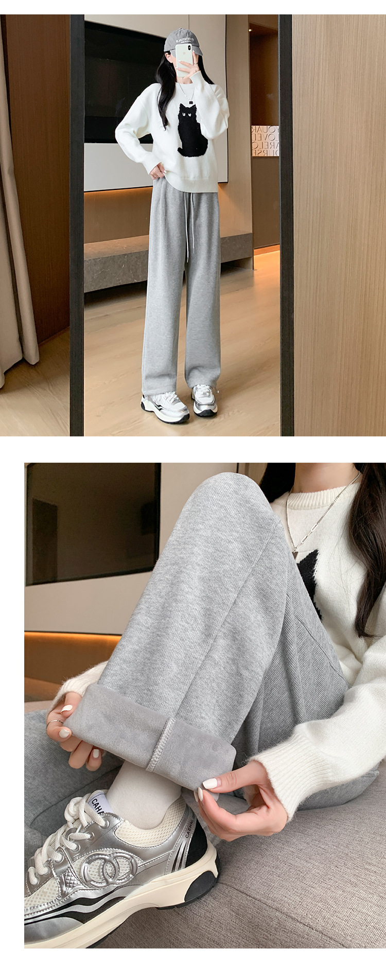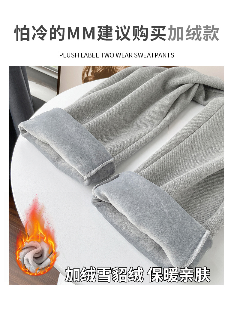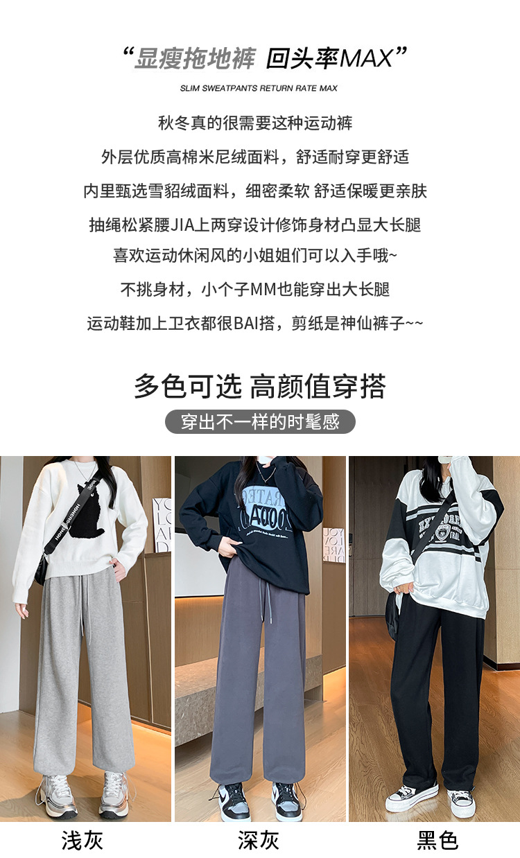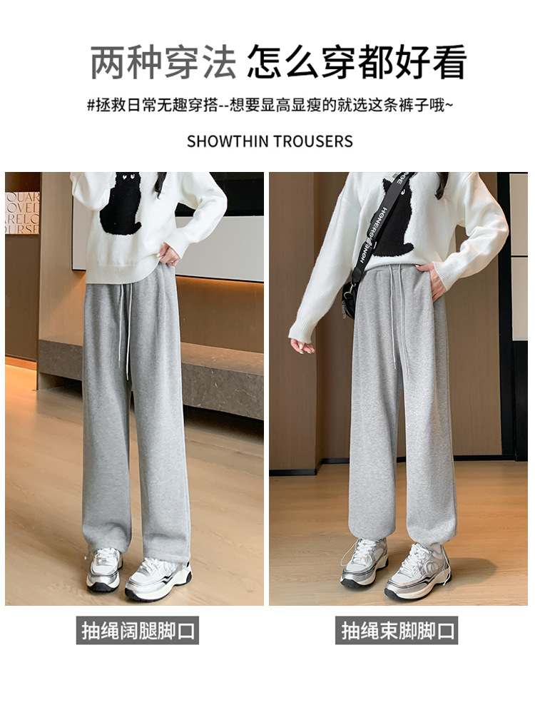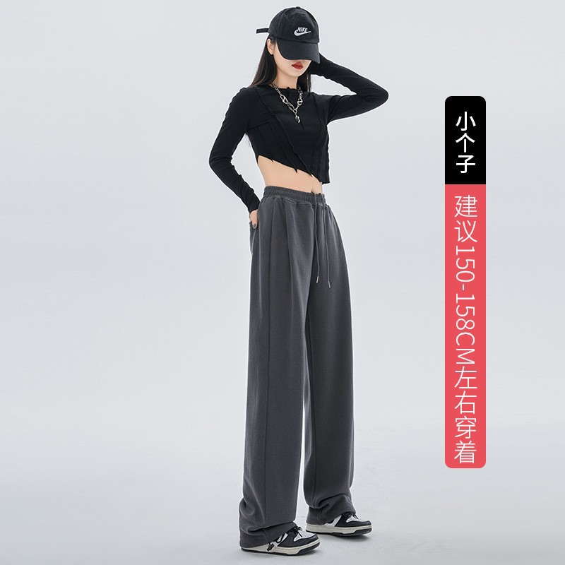 灰色运动裤女秋冬加绒裤子垂感直筒休闲裤卫裤高腰宽松美式阔腿裤