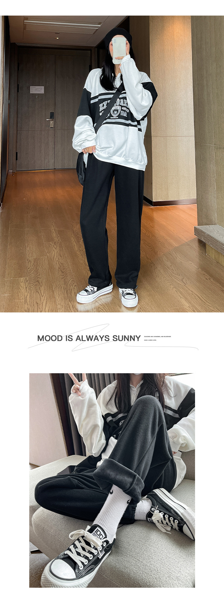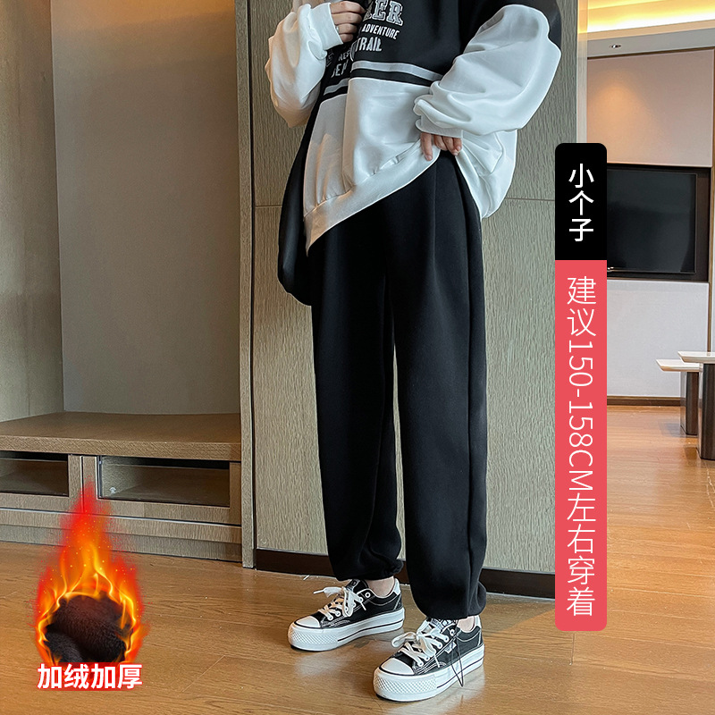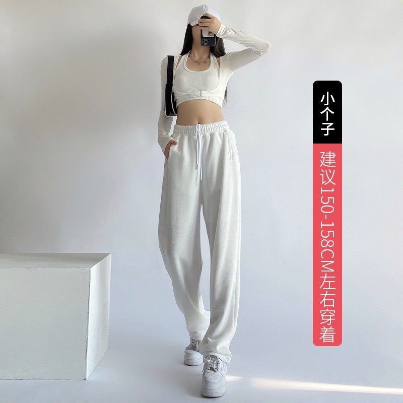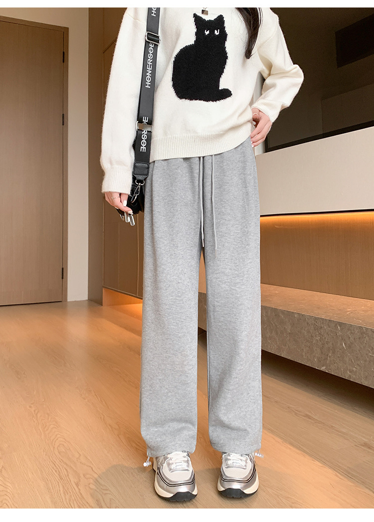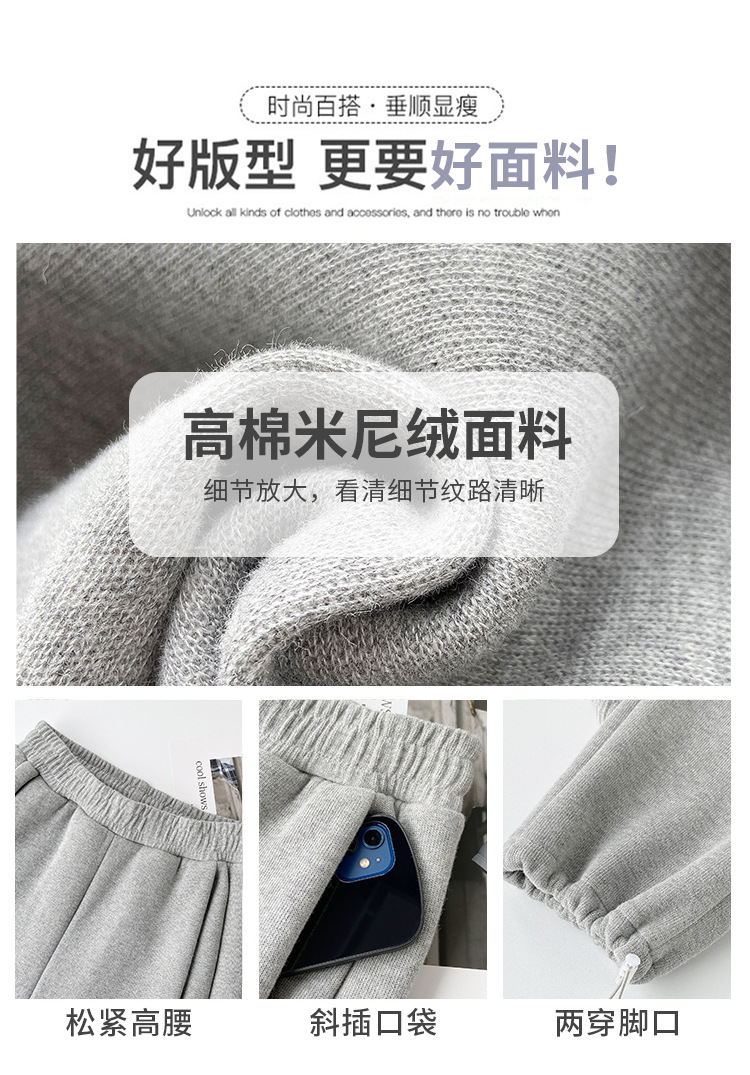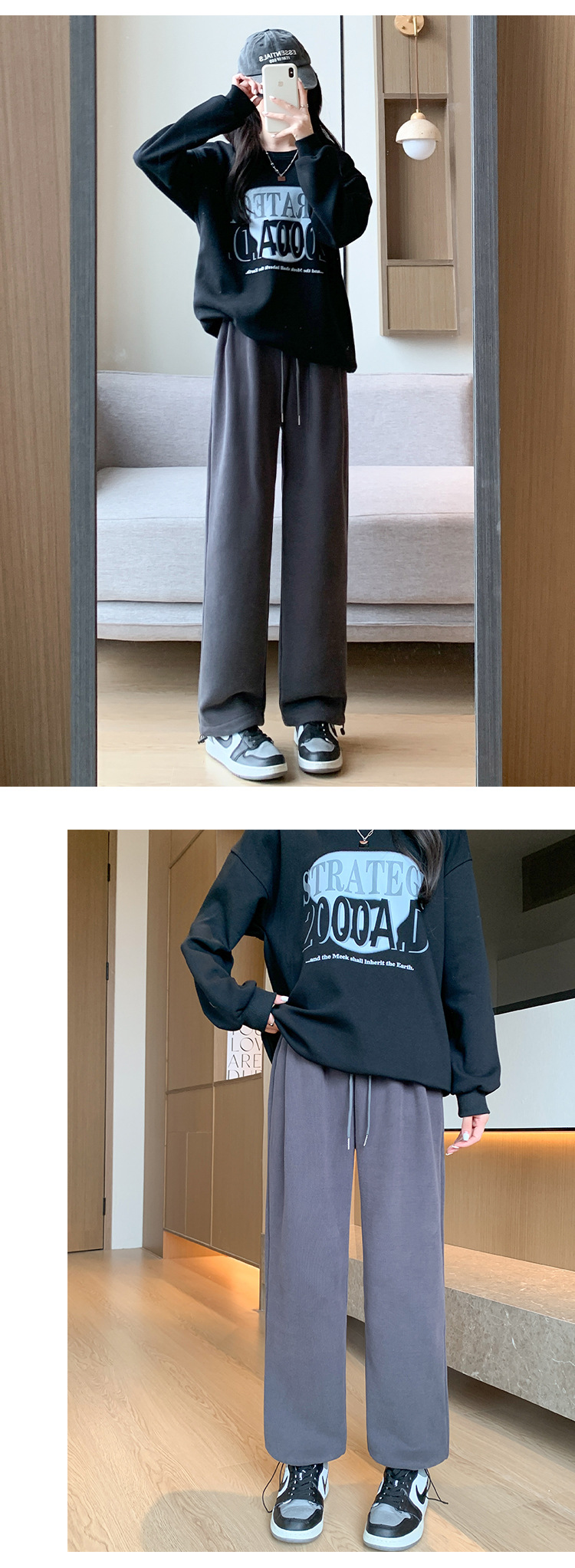 灰色运动裤女秋冬加绒裤子垂感直筒休闲裤卫裤高腰宽松美式阔腿裤