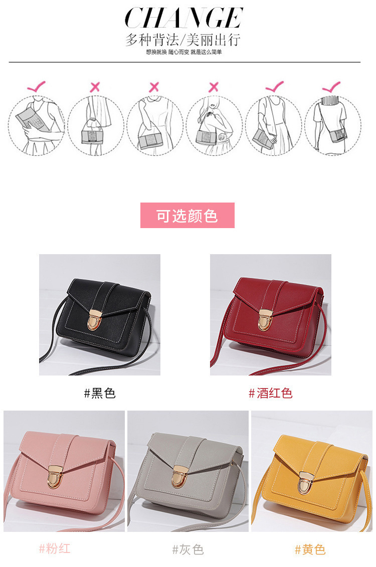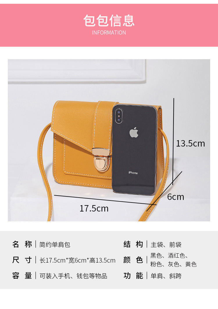 女式包包2019新款锁扣小方包车缝线装饰双层手机包零钱小包现货潮