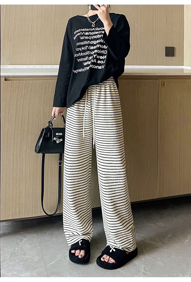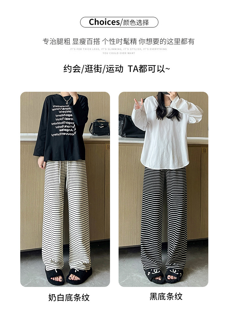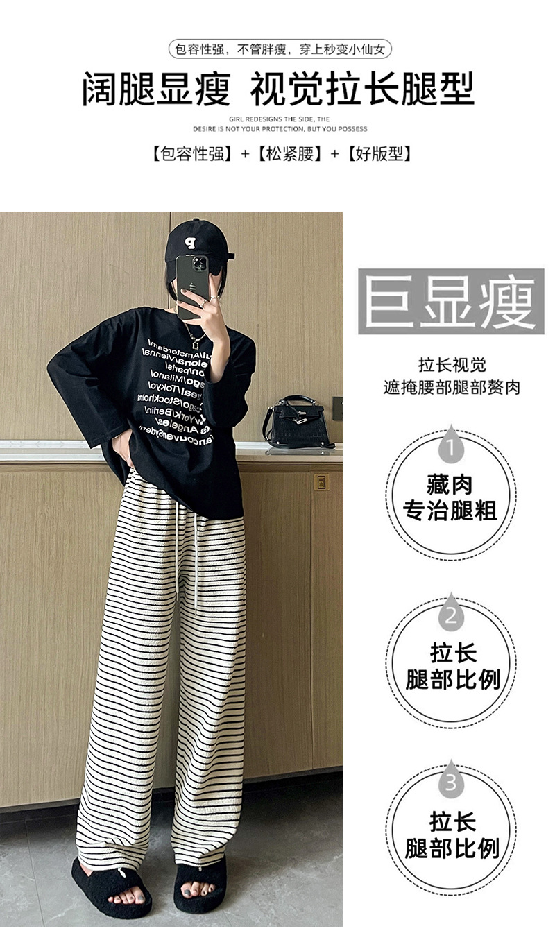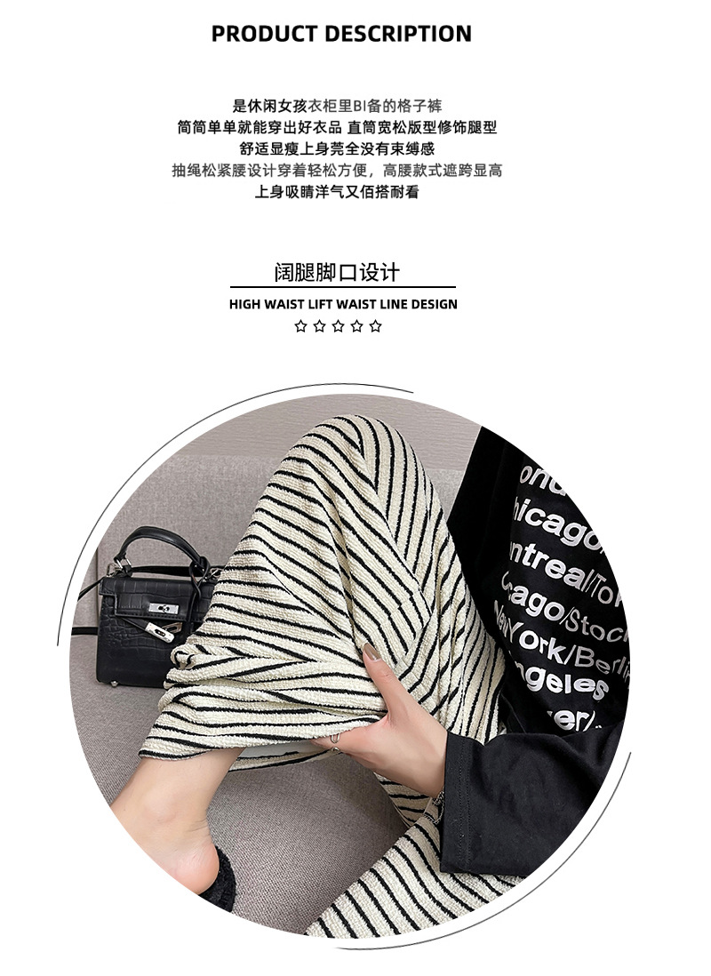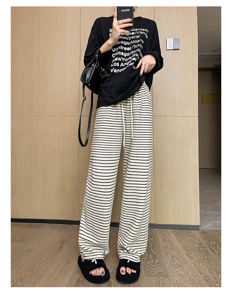 条纹毛巾阔腿裤女垂坠感裤子春秋新款高腰显瘦休闲裤直筒拖地裤
