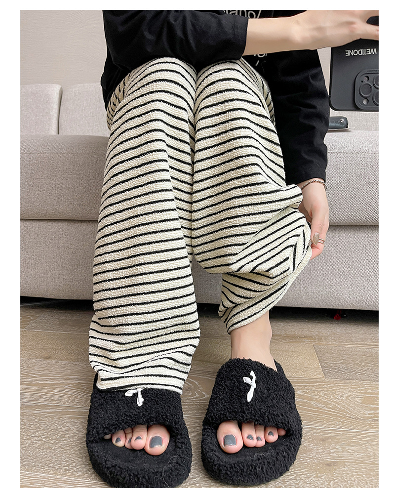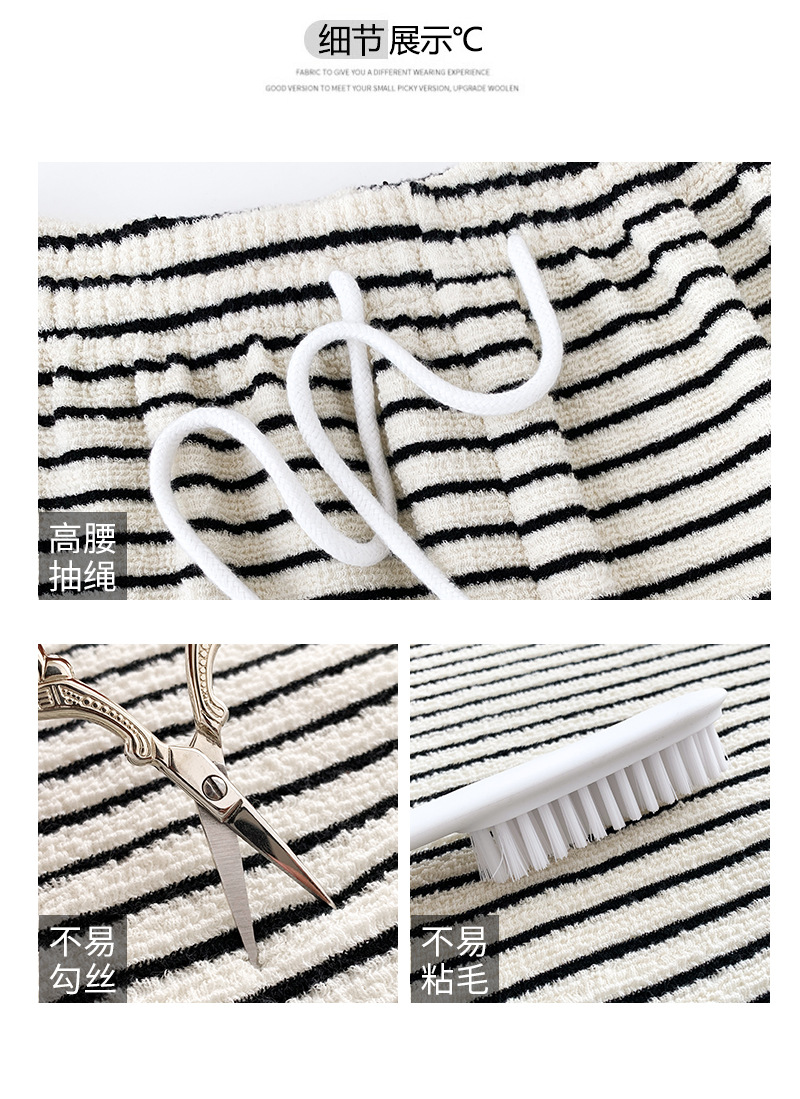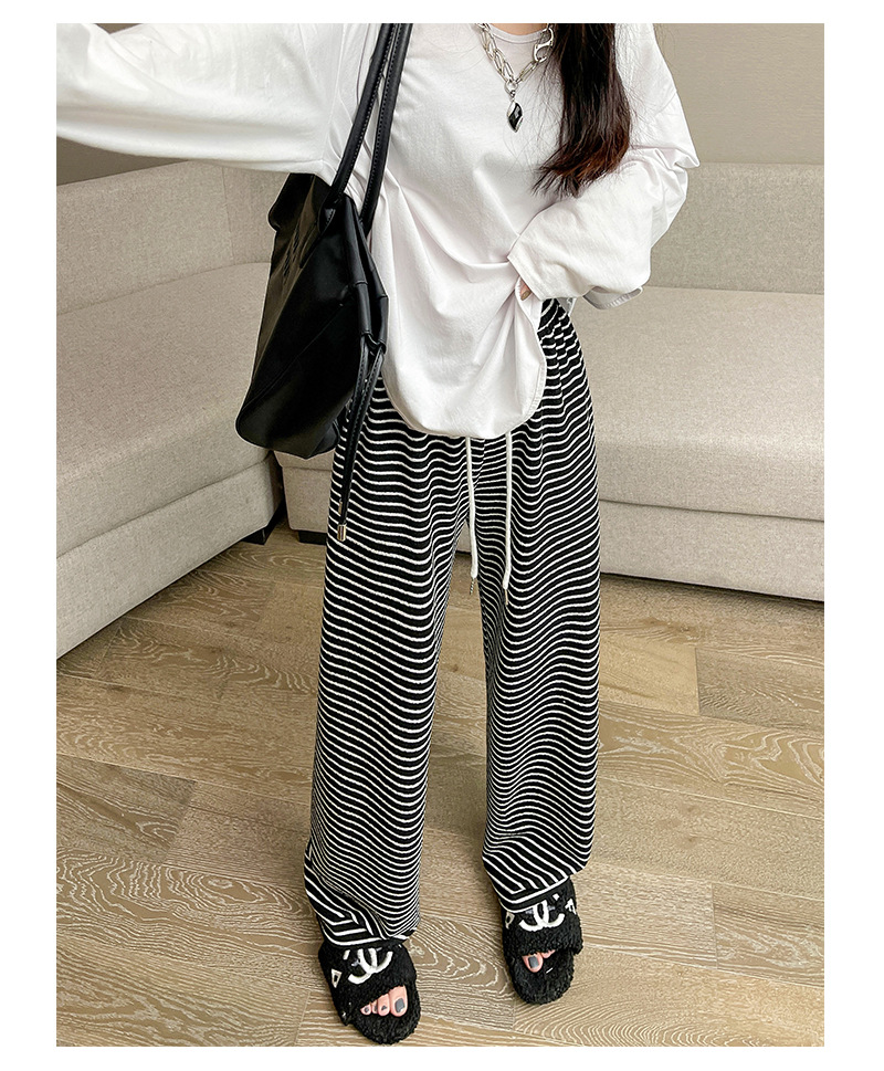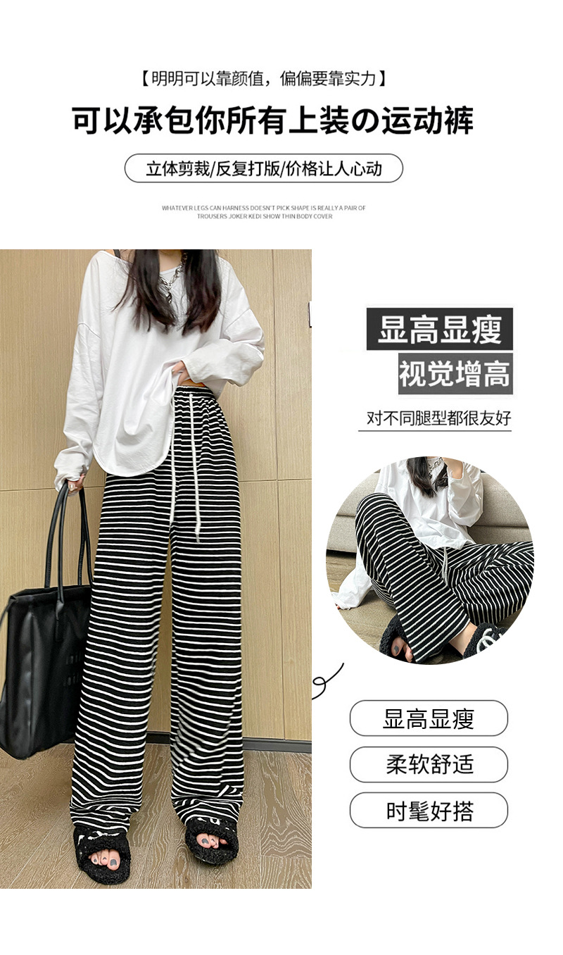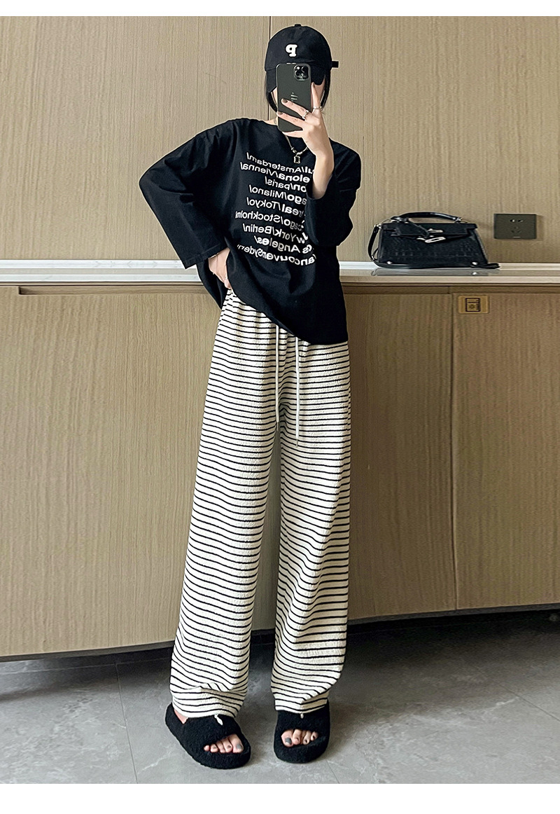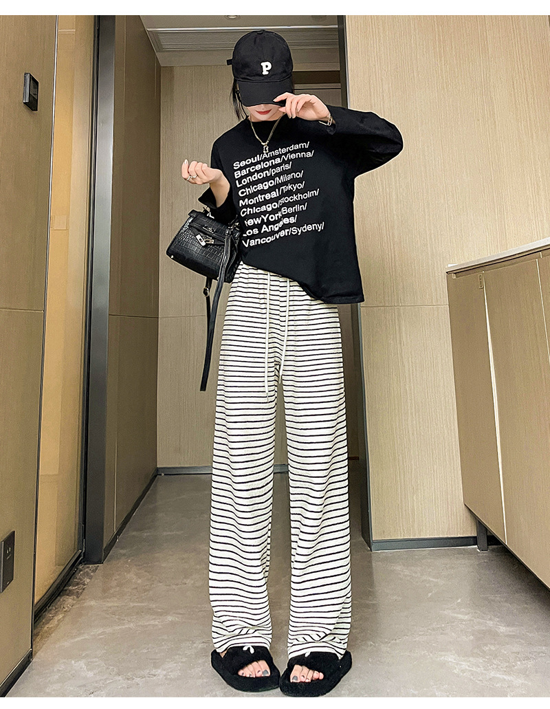 条纹毛巾阔腿裤女垂坠感裤子春秋新款高腰显瘦休闲裤直筒拖地裤