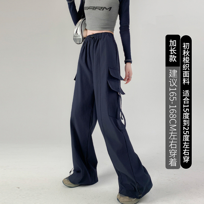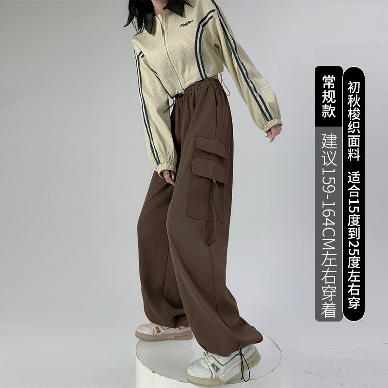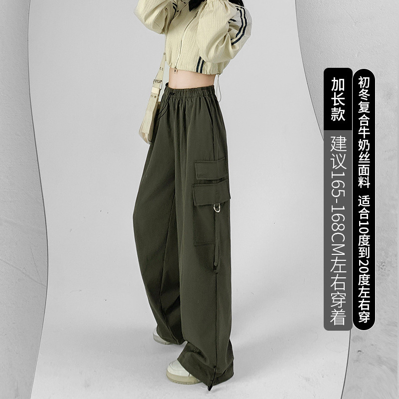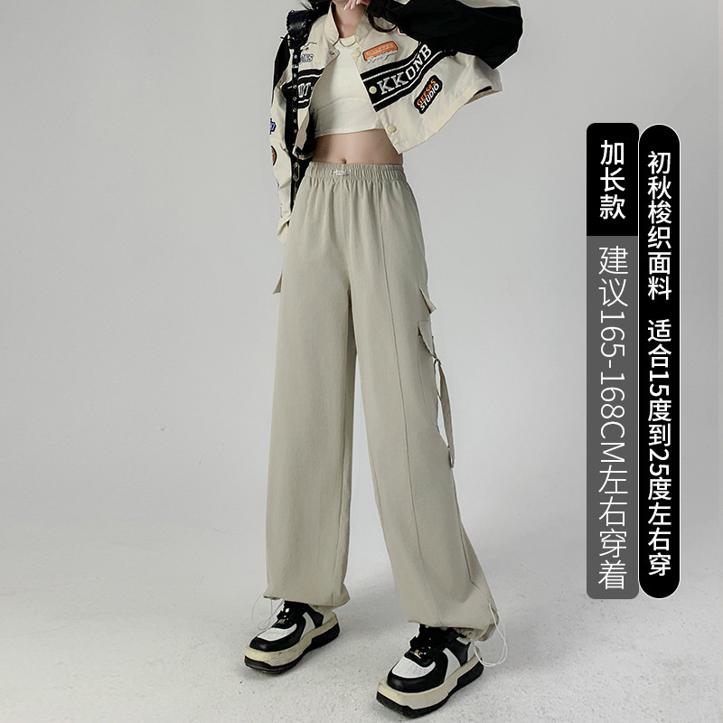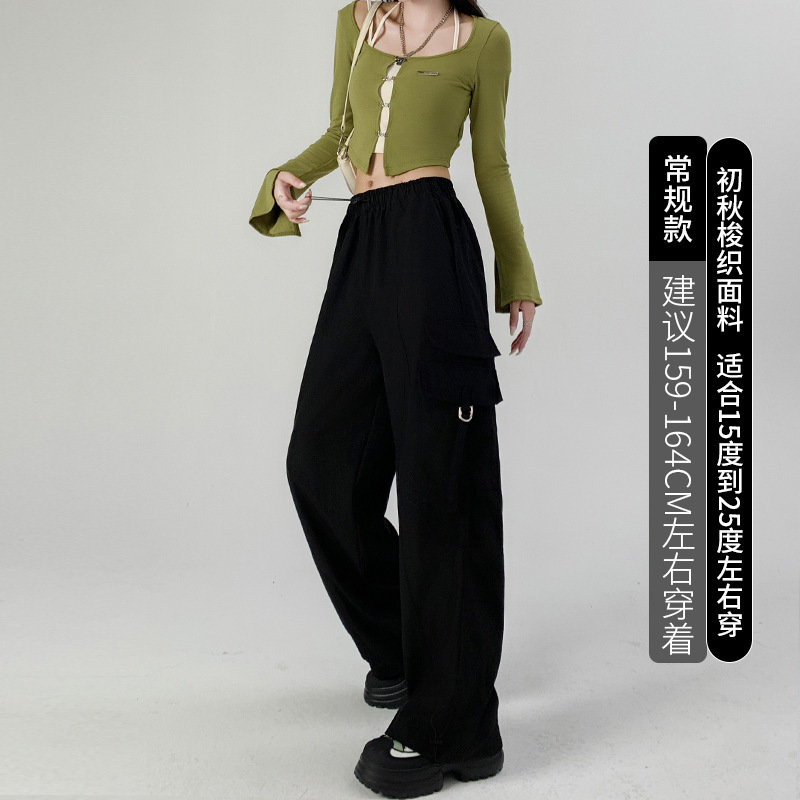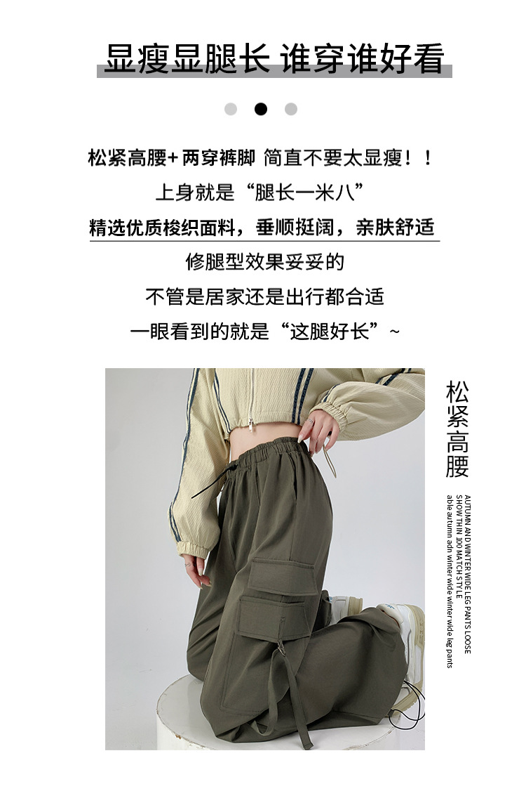 灰绿运动裤女裤子女装春秋新款宽松高腰阔腿裤垂感直筒辣妹工装裤