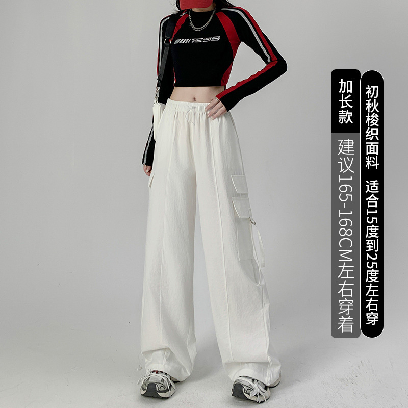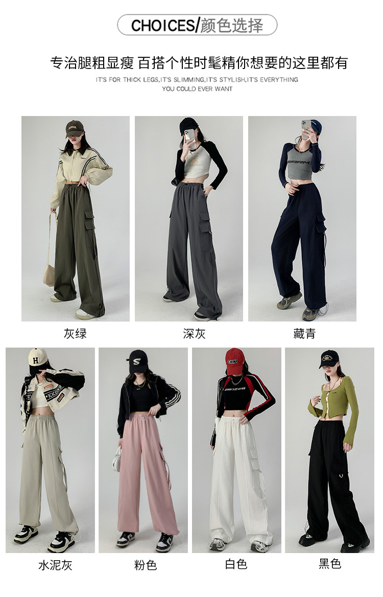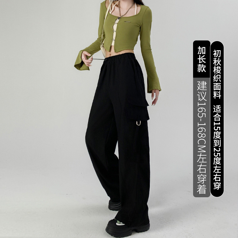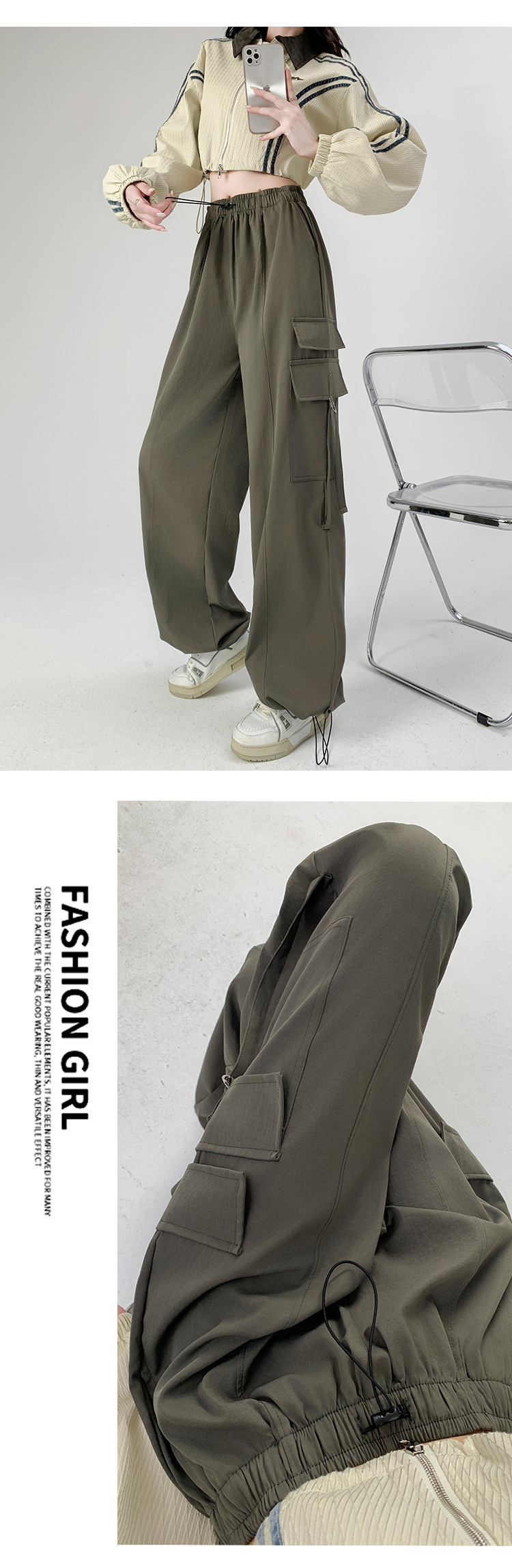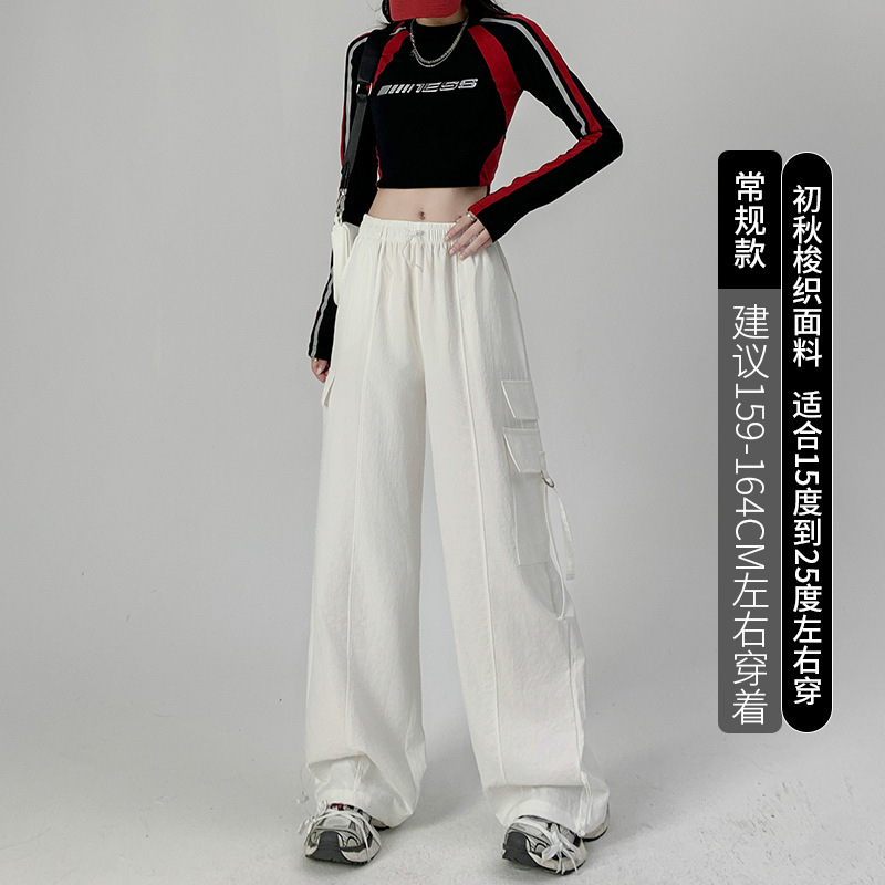 灰绿运动裤女裤子女装春秋新款宽松高腰阔腿裤垂感直筒辣妹工装裤