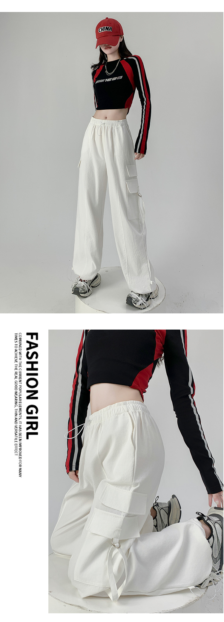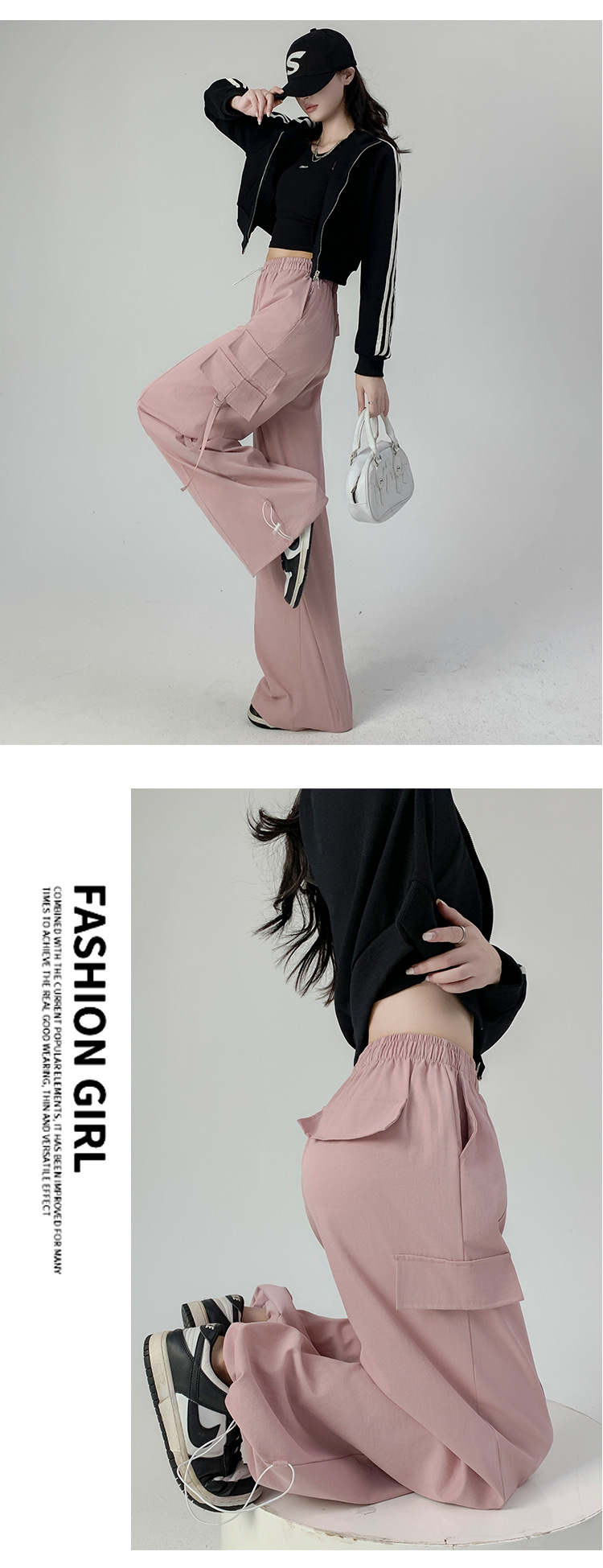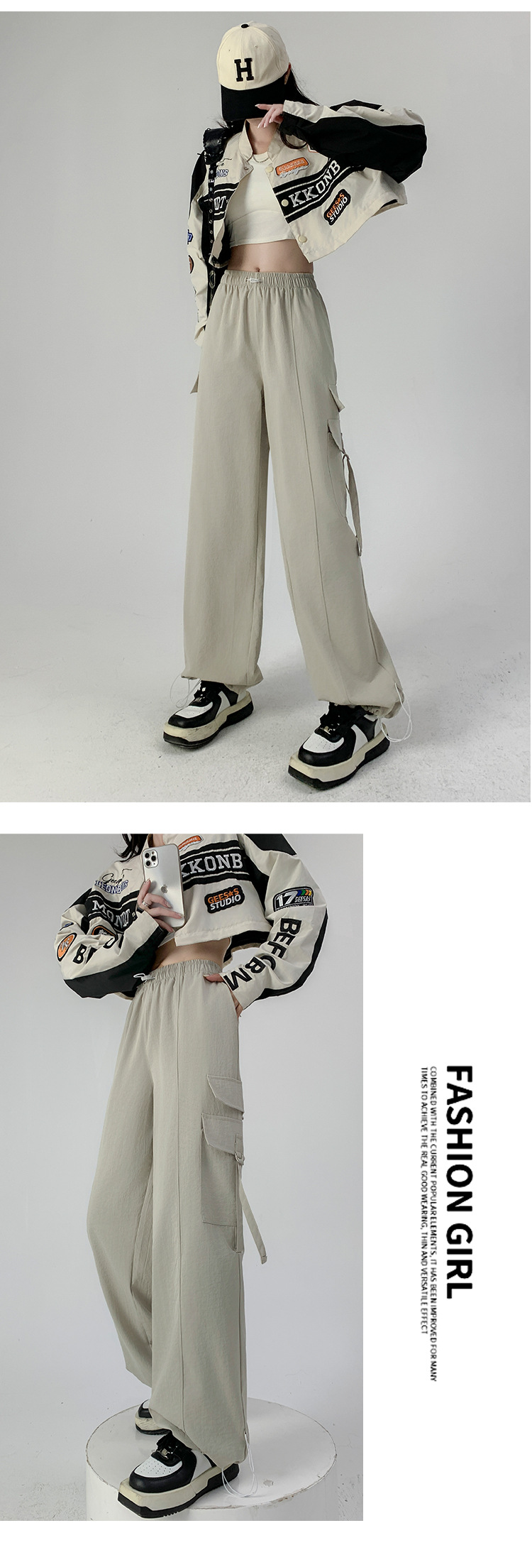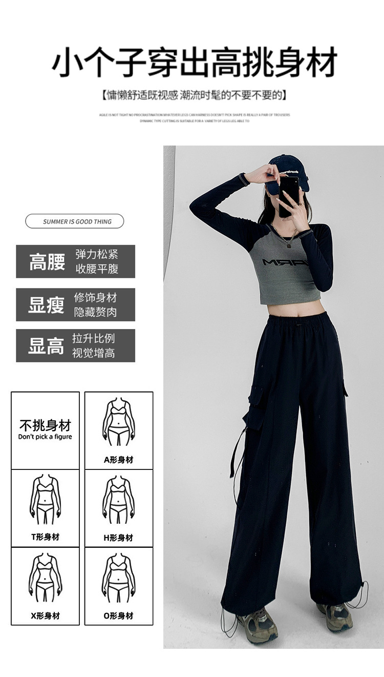 灰绿运动裤女裤子女装春秋新款宽松高腰阔腿裤垂感直筒辣妹工装裤