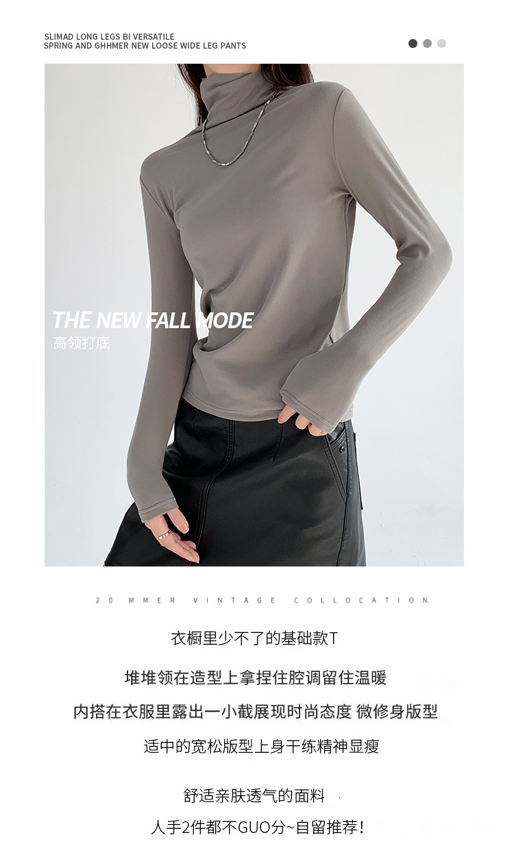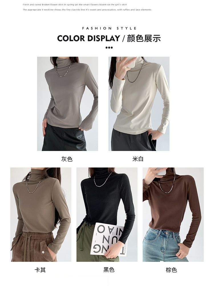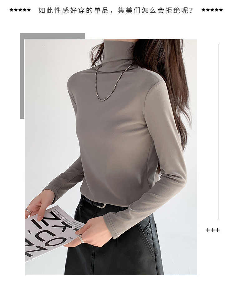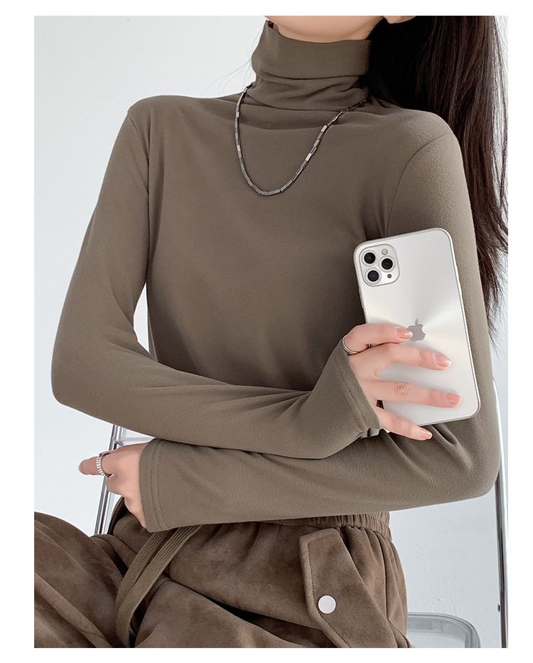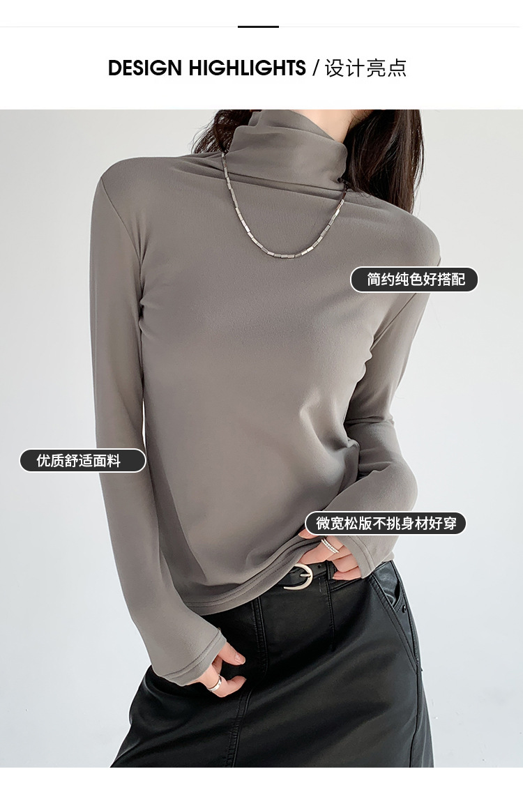 堆堆领长袖磨毛针织衫女秋冬新款纯色百搭上衣显瘦内搭修身打底衫