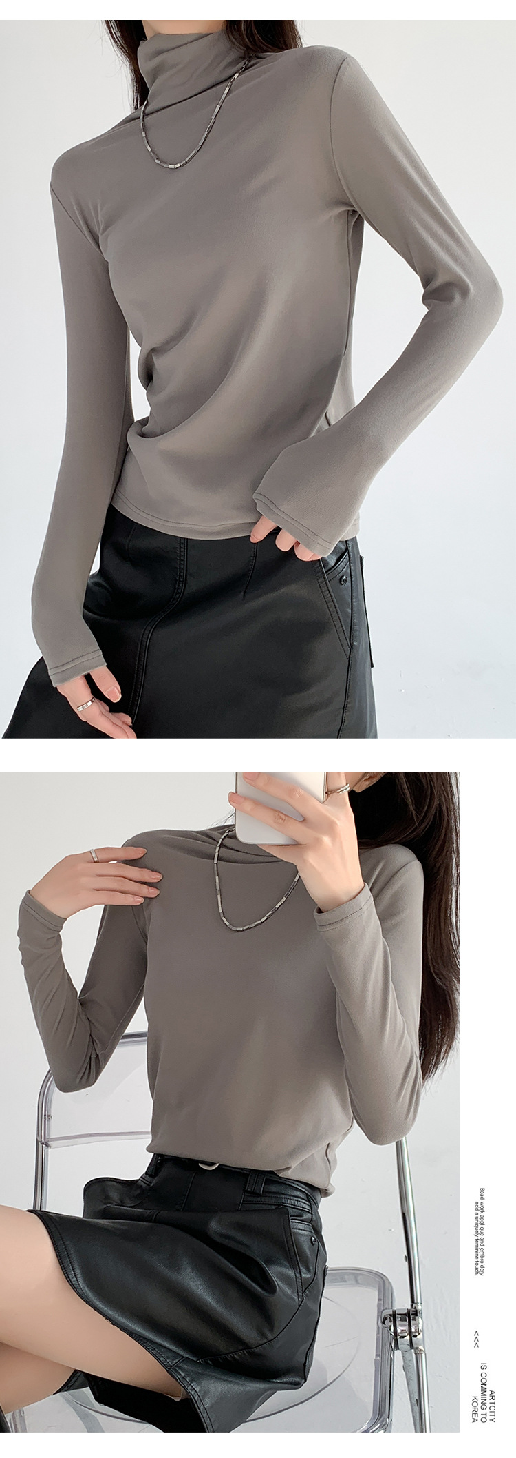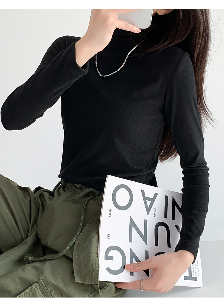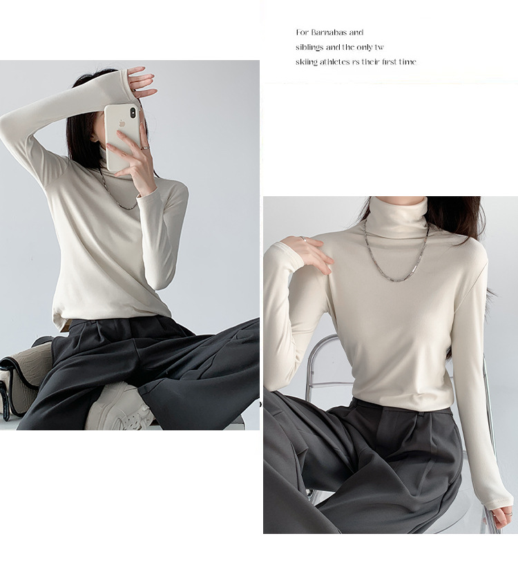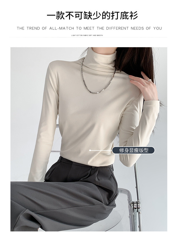 堆堆领长袖磨毛针织衫女秋冬新款纯色百搭上衣显瘦内搭修身打底衫