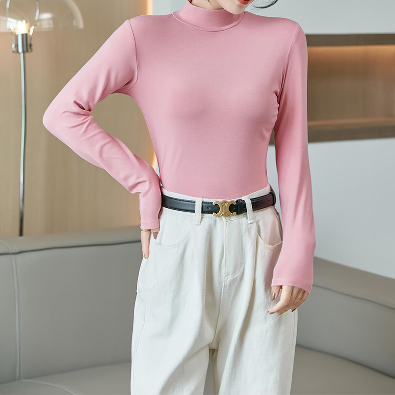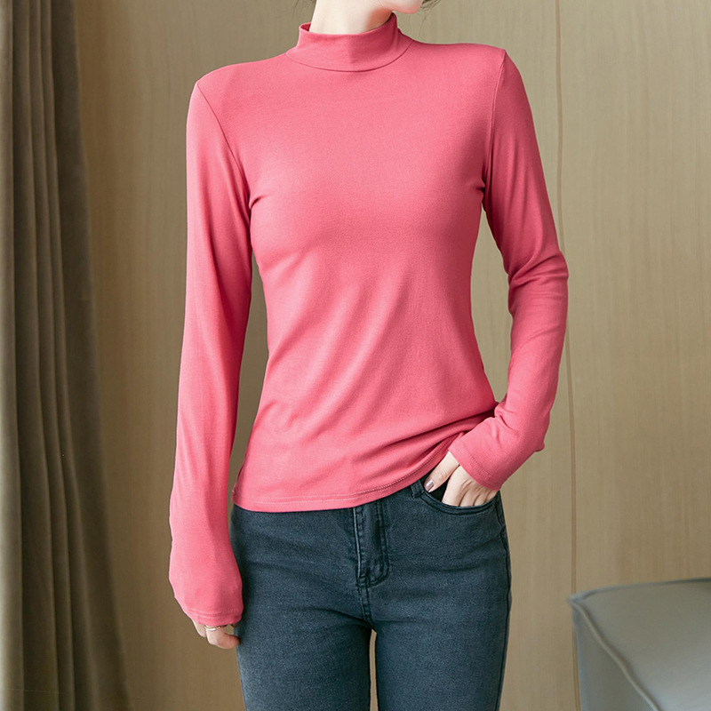 莫代尔半高领打底衫女秋季新款内搭修身蛋白长袖t恤显瘦百搭上衣