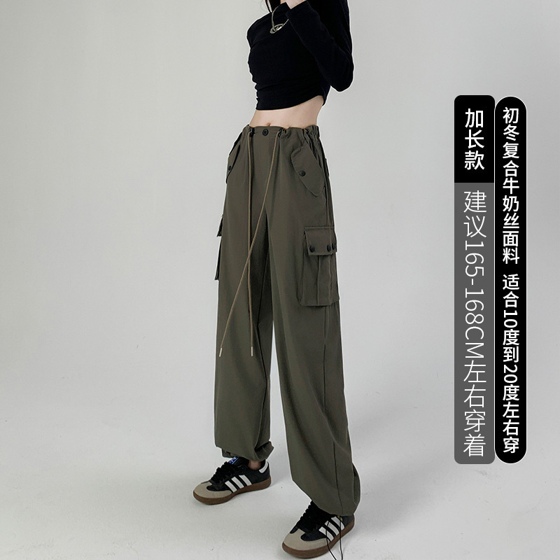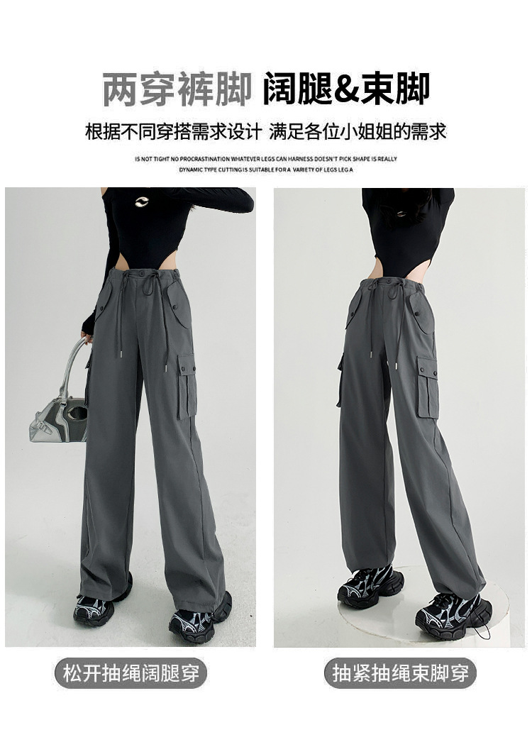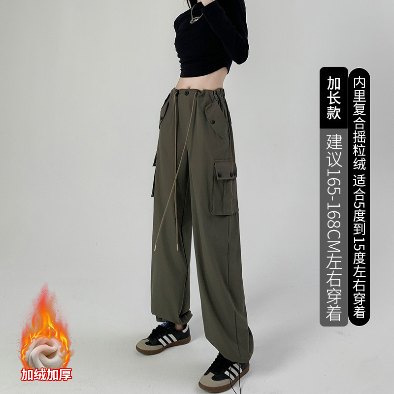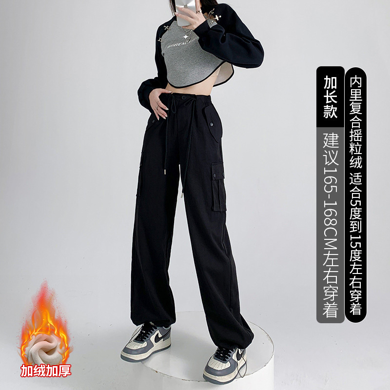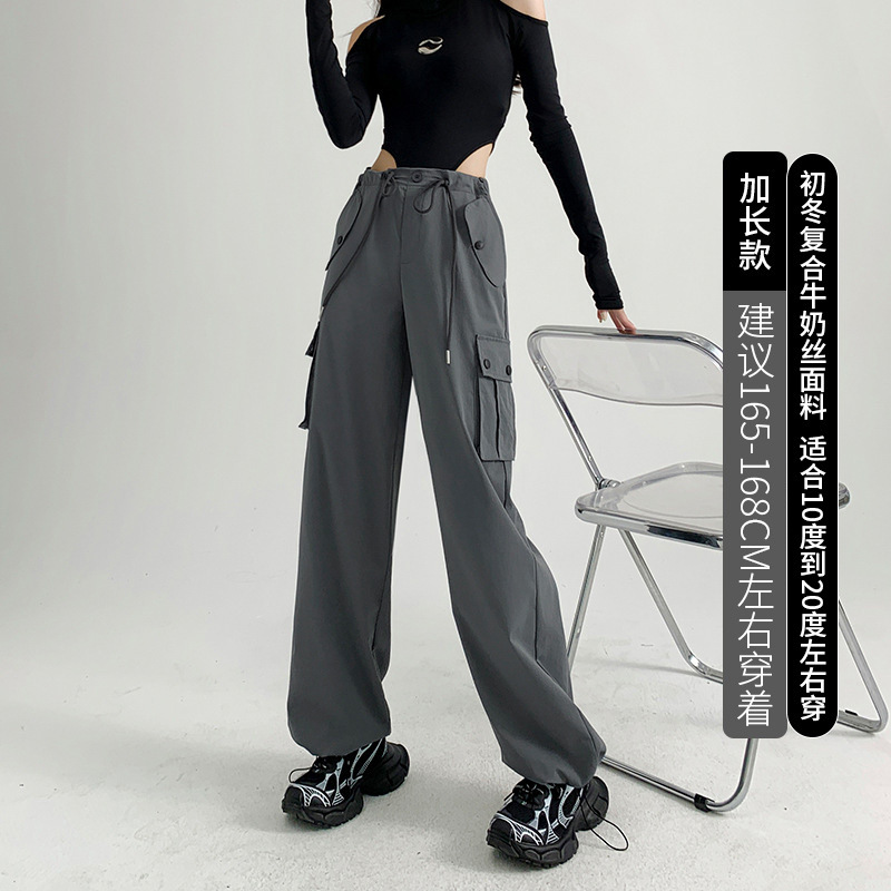 灰色工装裤女装裤子女秋冬新款直筒显瘦阔腿裤卫裤休闲辣妹运动裤