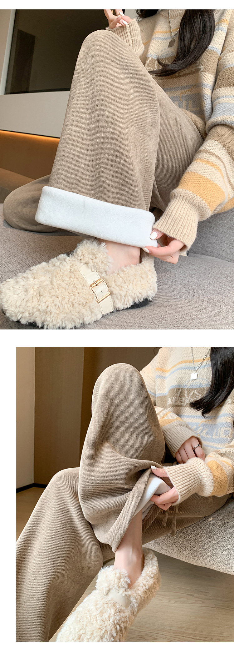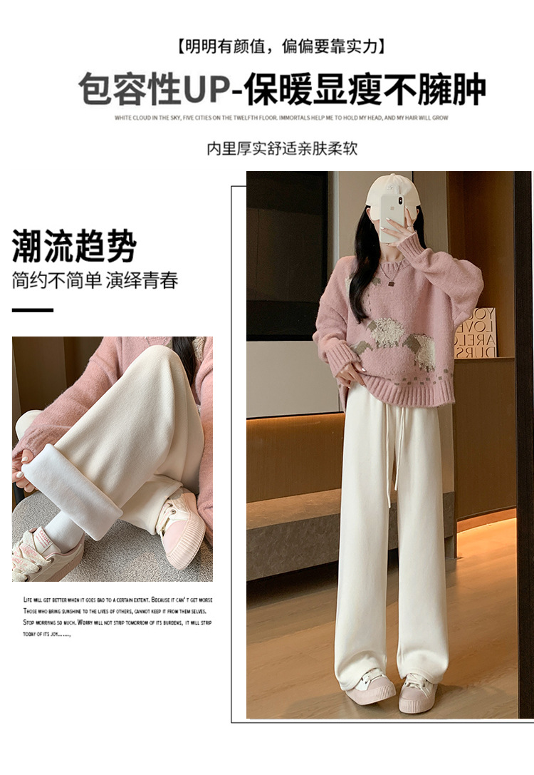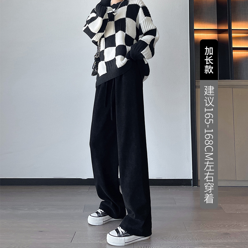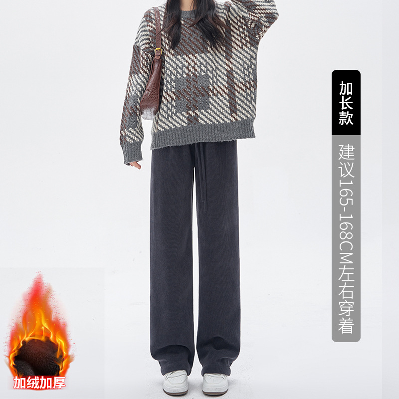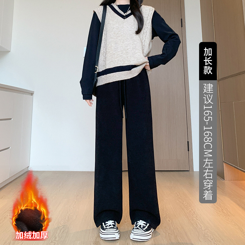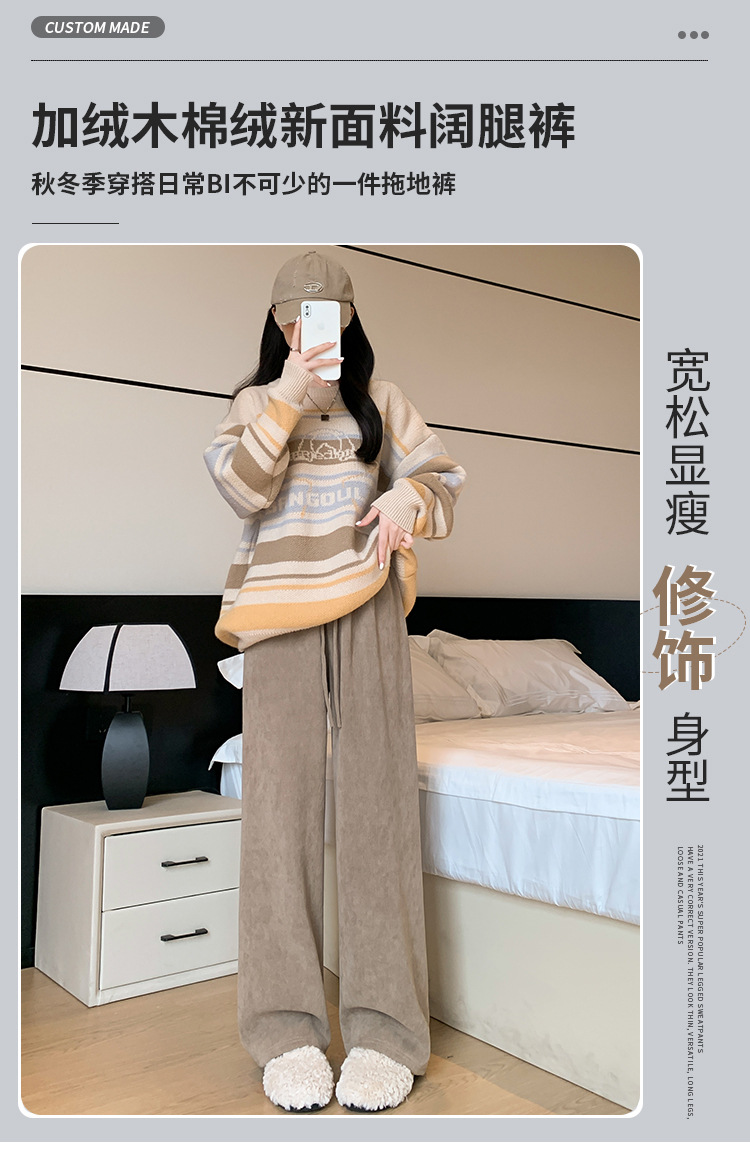 木棉绒阔腿裤秋冬加绒裤子女垂感宽松女款休闲裤高腰拖地直筒裤