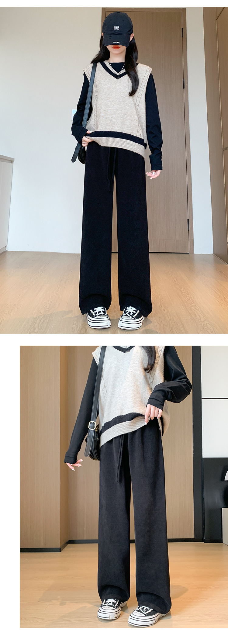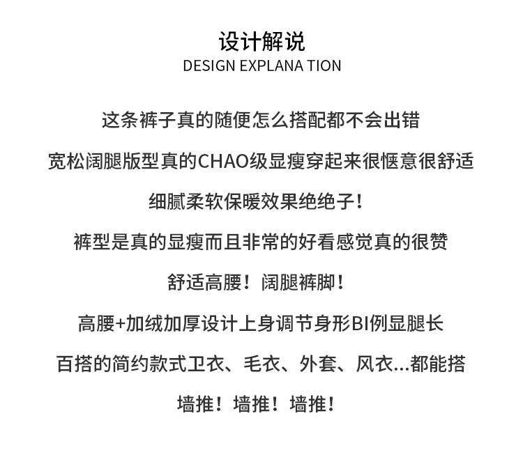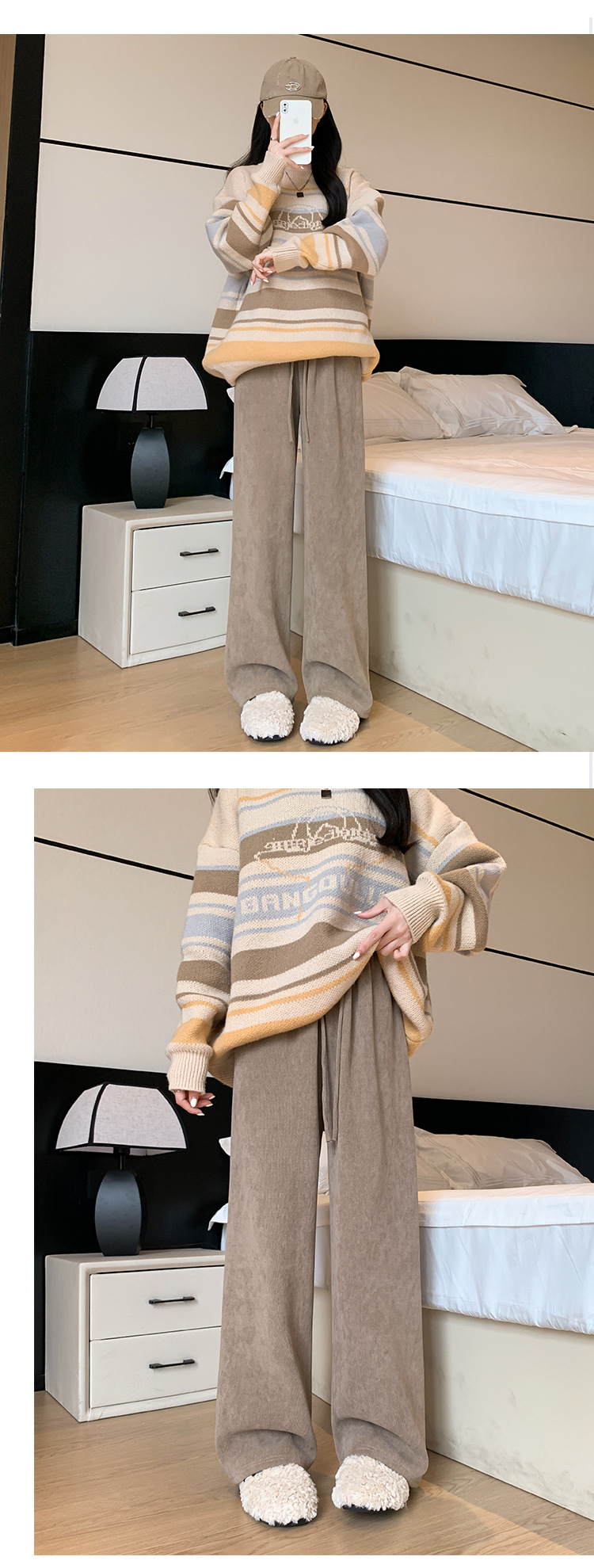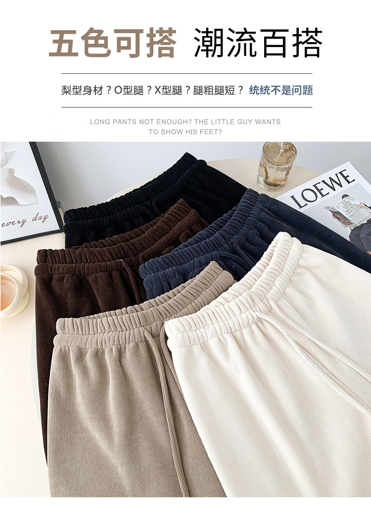 木棉绒阔腿裤秋冬加绒裤子女垂感宽松女款休闲裤高腰拖地直筒裤