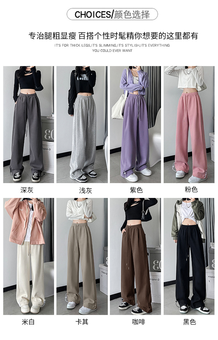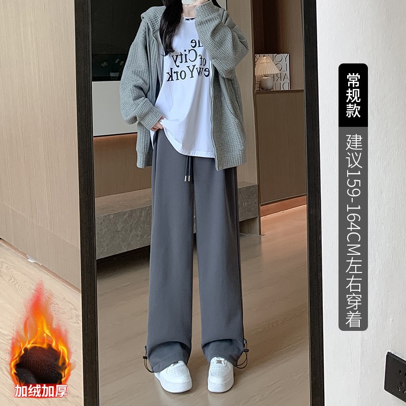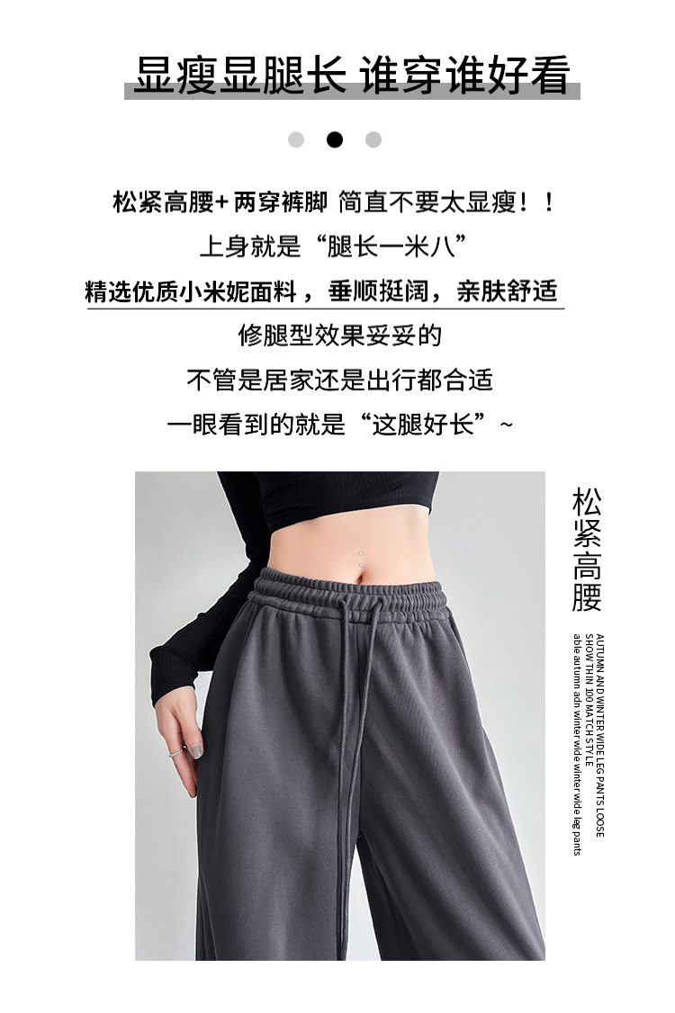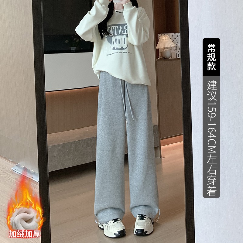 米妮加绒运动裤女裤子秋冬新款宽松显瘦高腰休闲裤卫裤女装阔腿裤