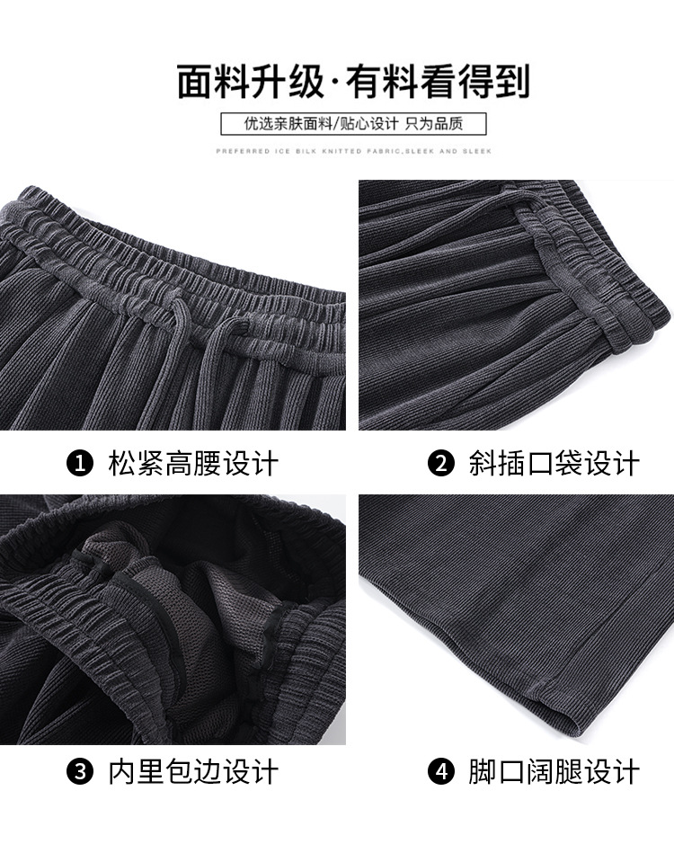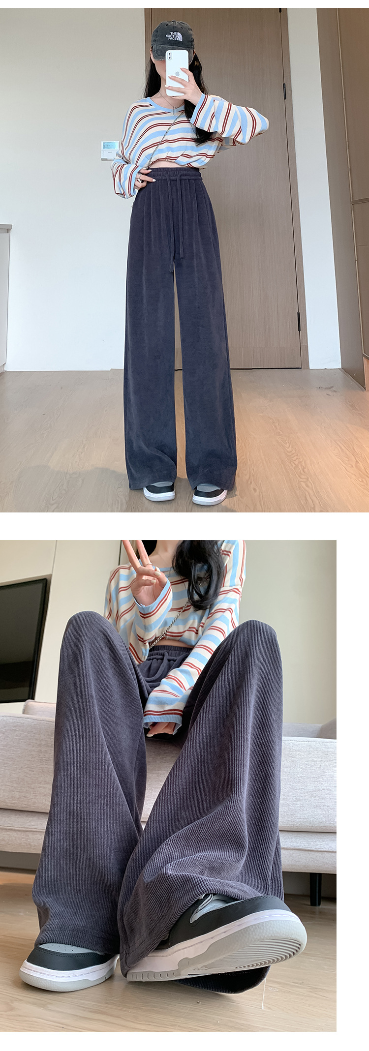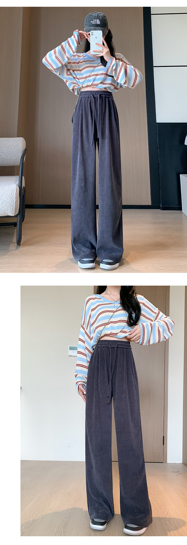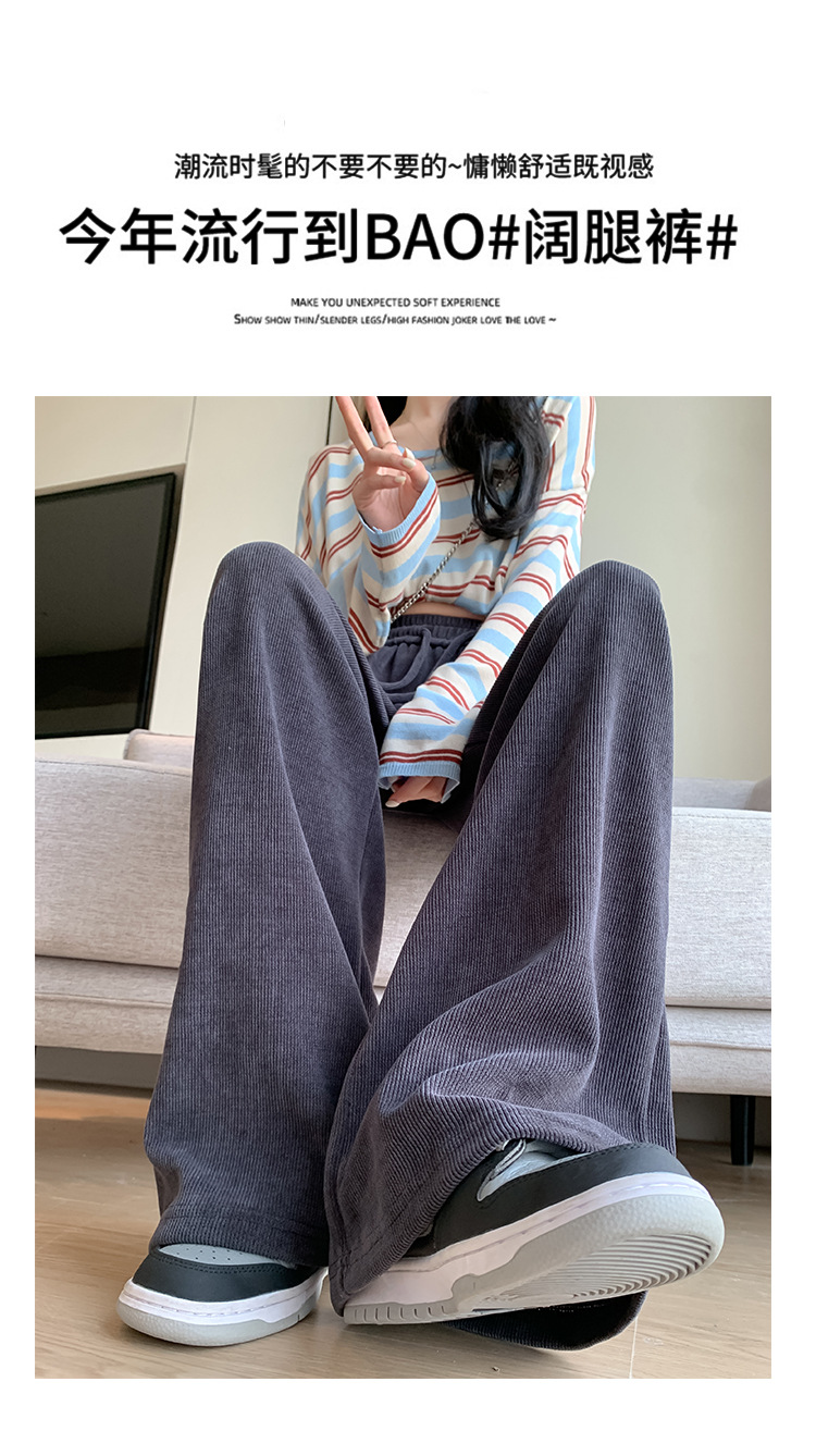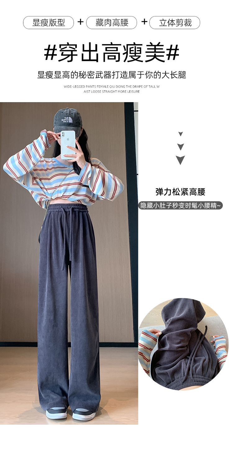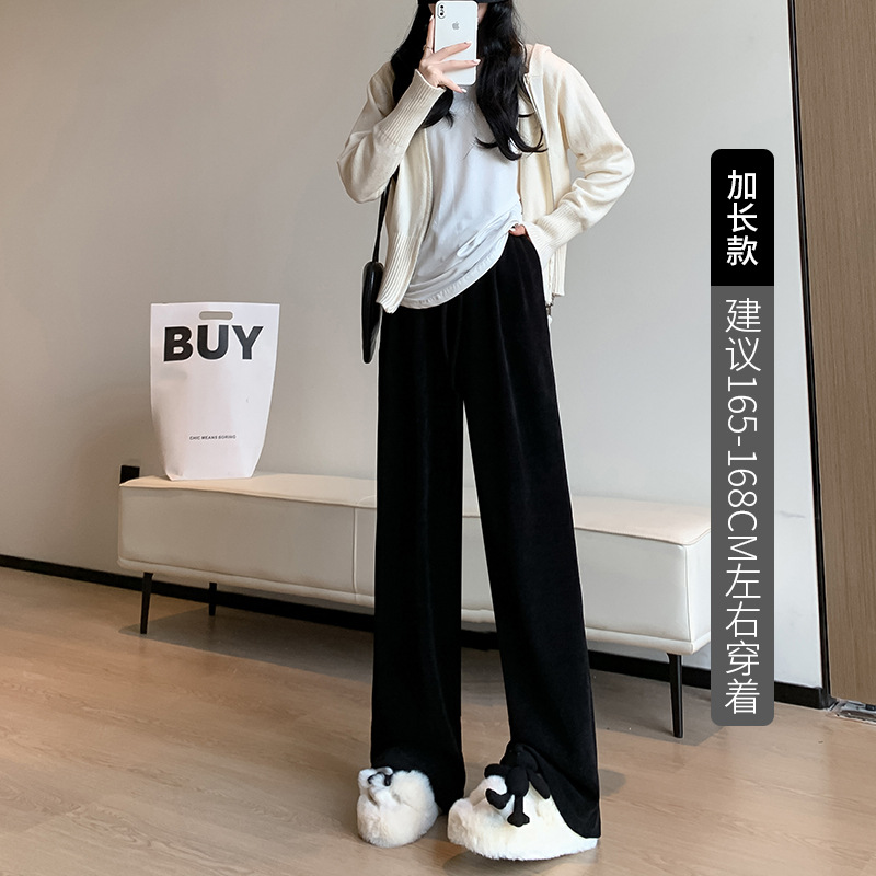 欧棉绒阔腿裤女裤子女款秋季新款宽松休闲直筒裤高腰女装拖地长裤