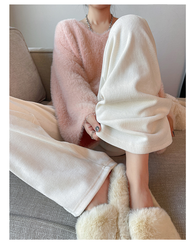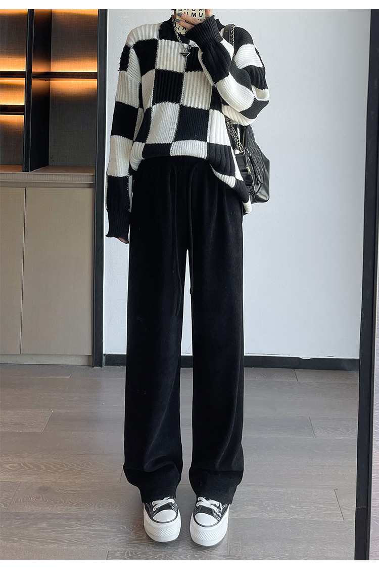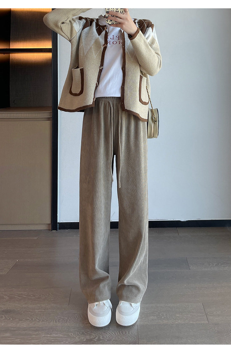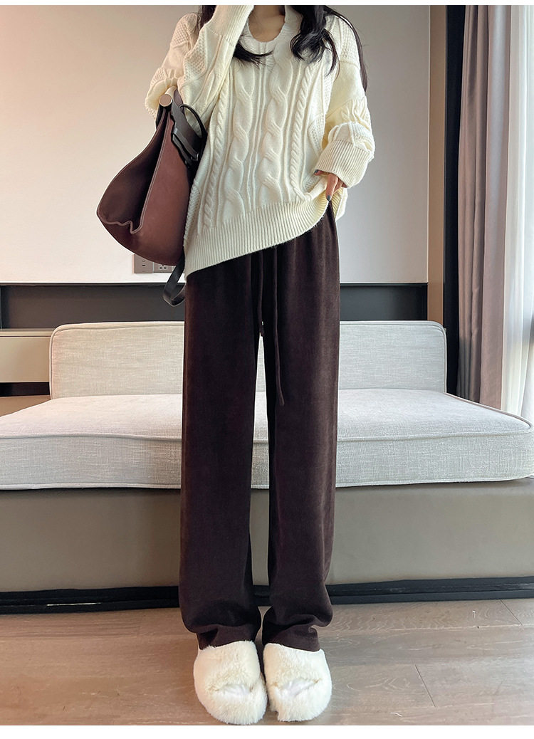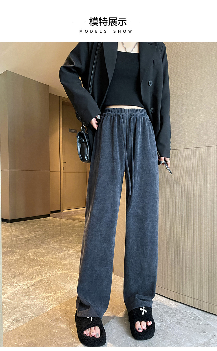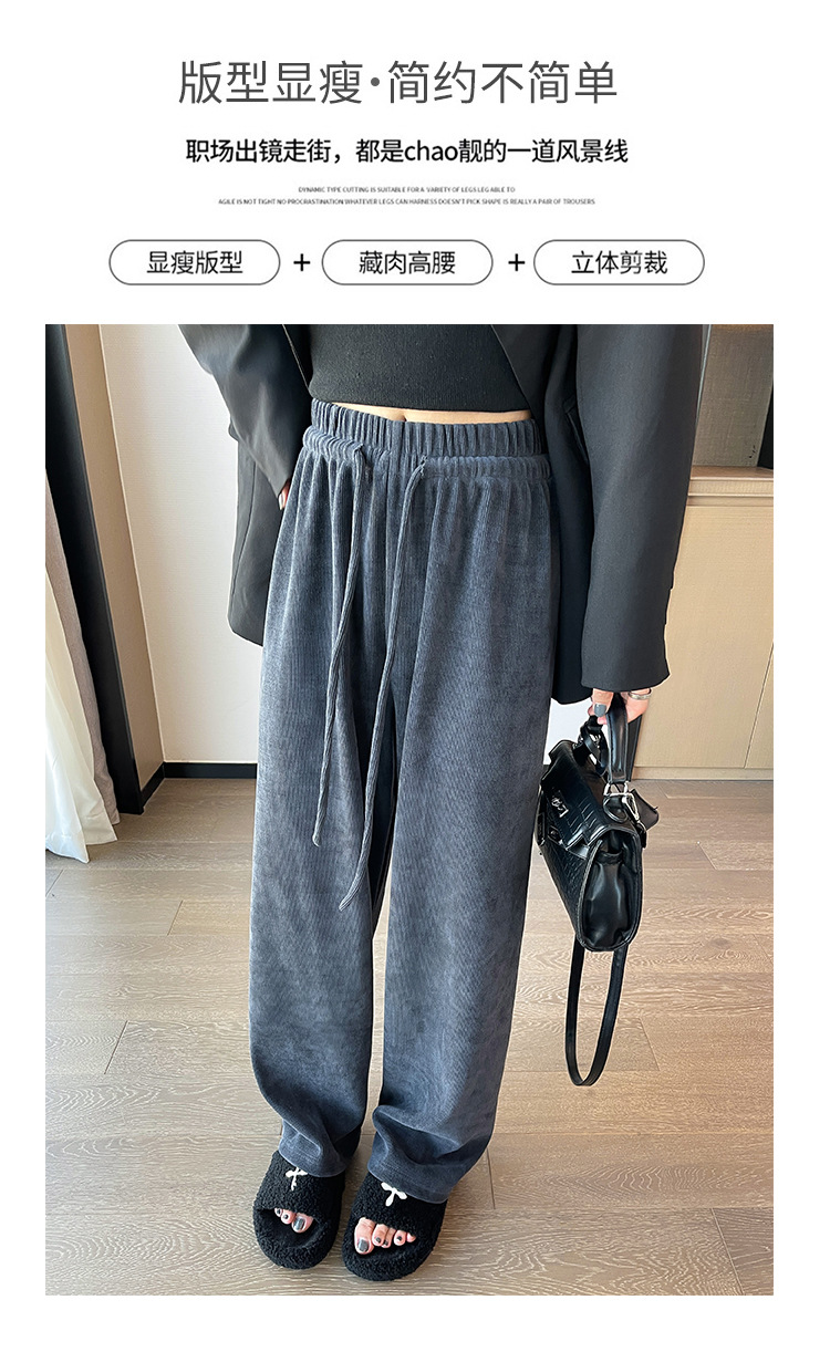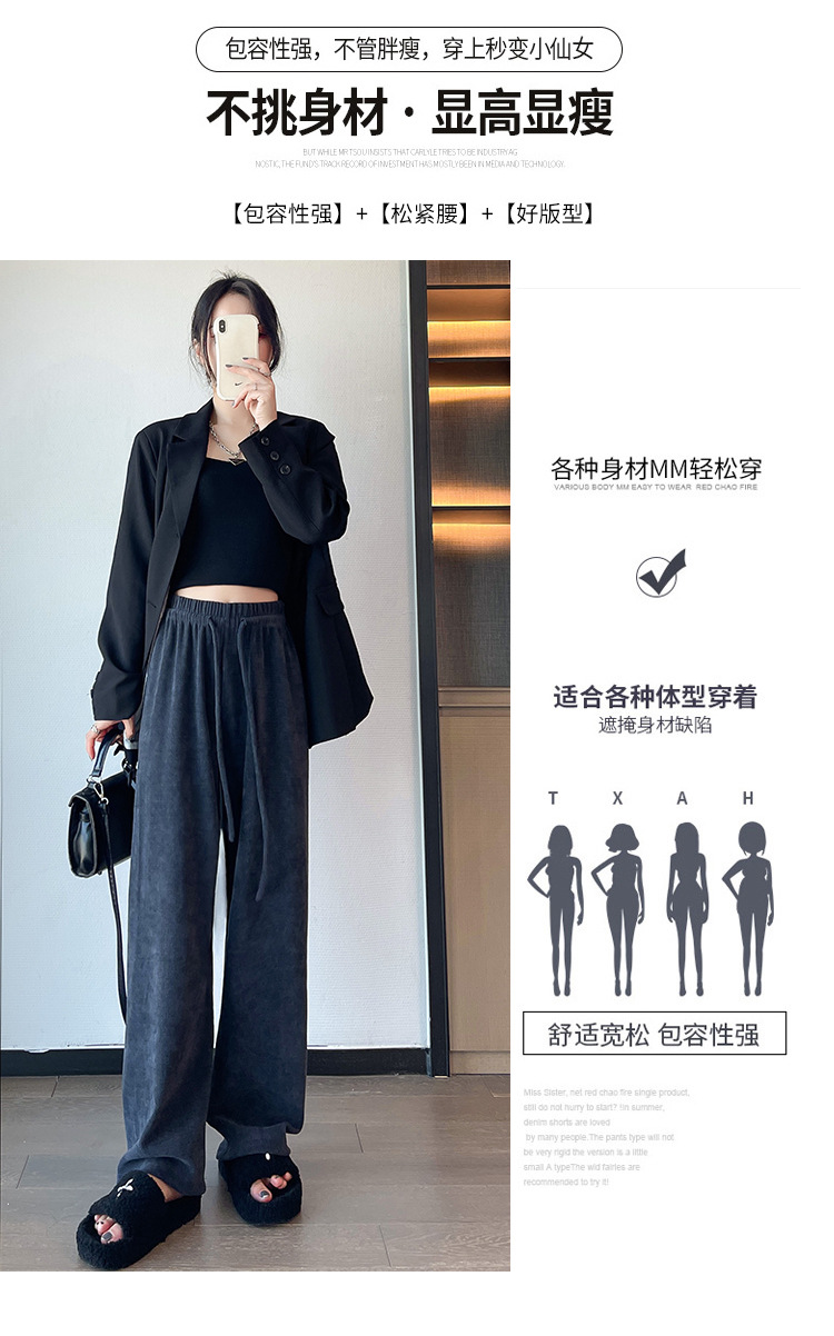 木棉绒阔腿裤垂坠感裤子女春秋新款高腰显瘦拖地裤女装窄版直筒裤