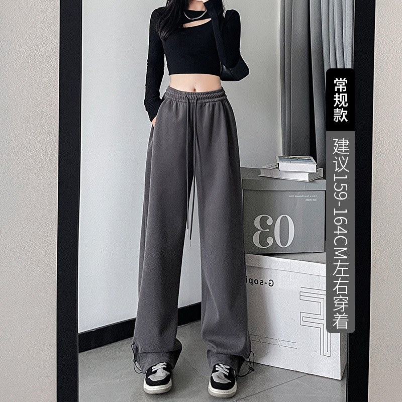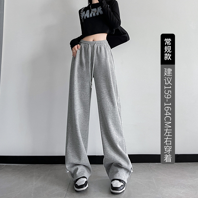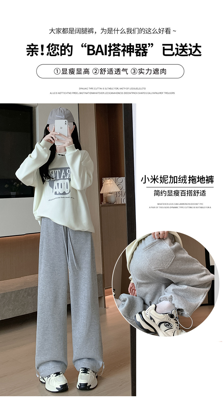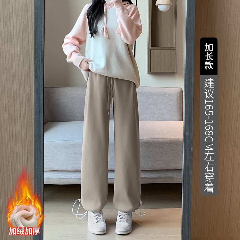 小米尼运动裤女秋冬新款加绒裤子美式束脚直筒卫裤垂感显瘦阔腿裤