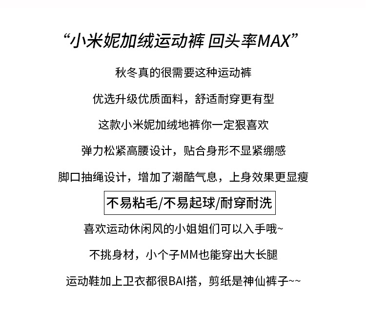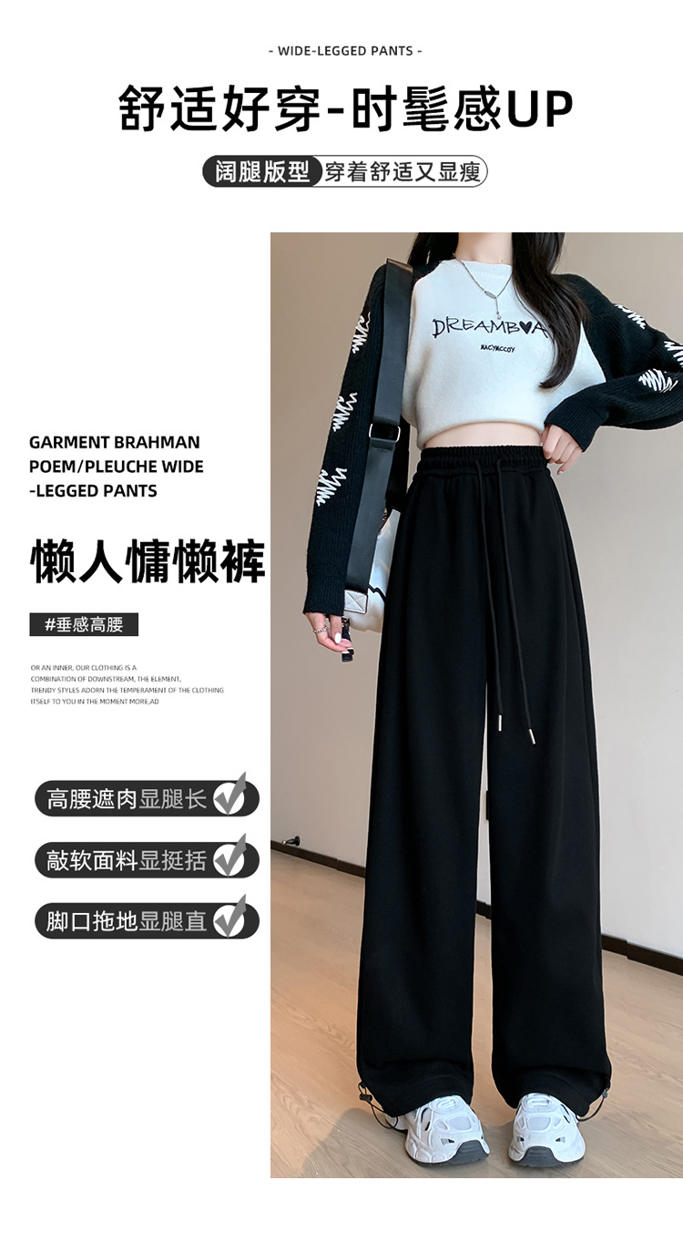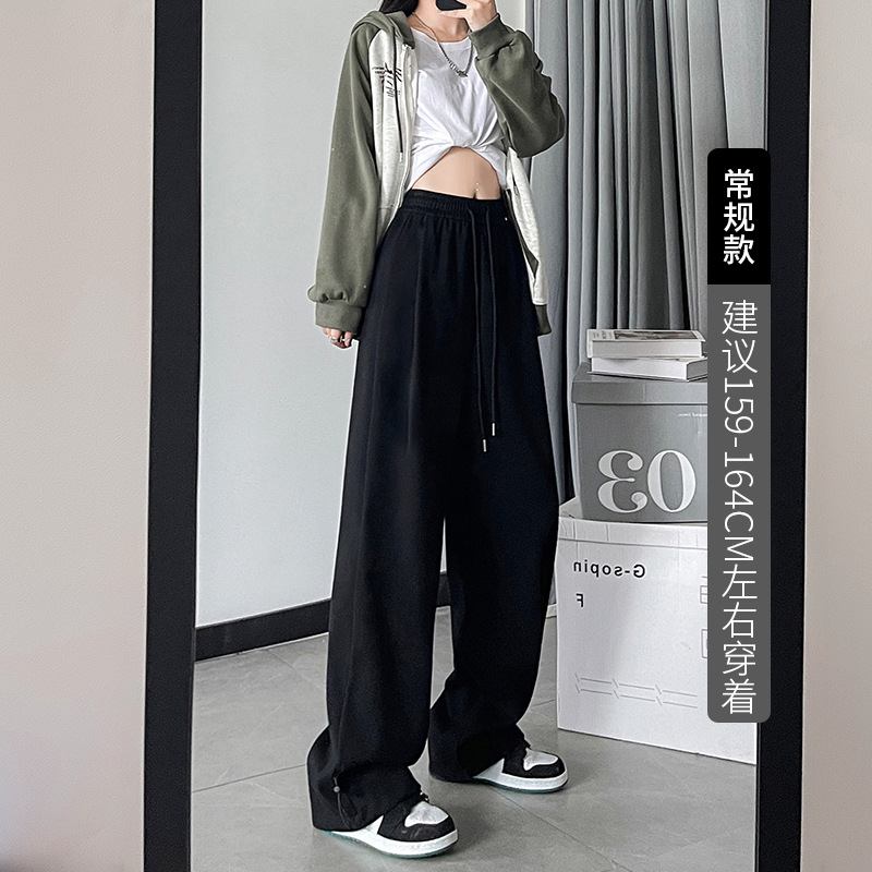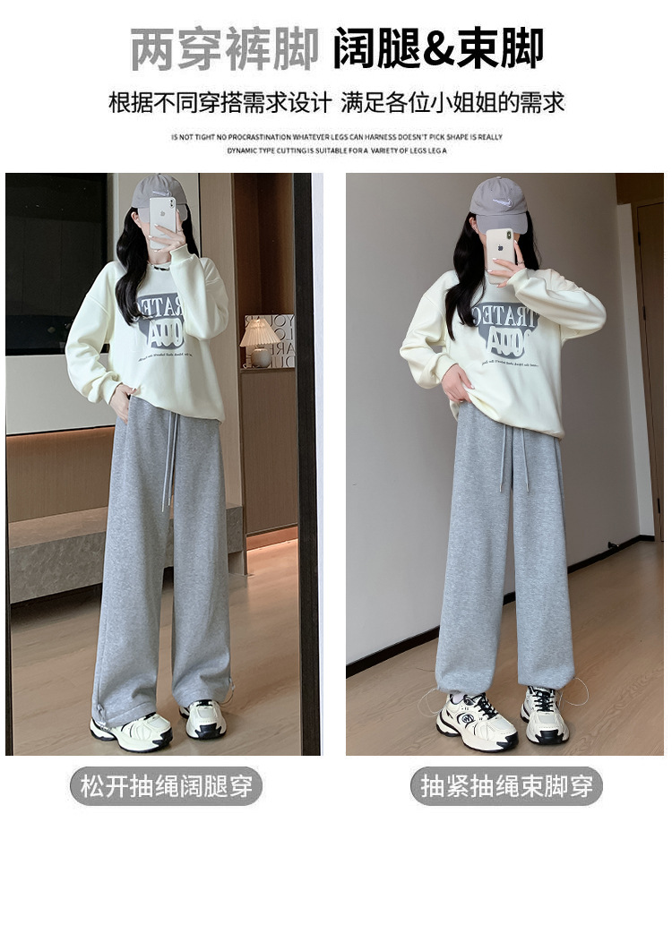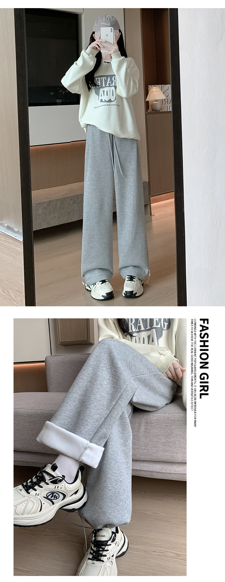 小米尼运动裤女秋冬新款加绒裤子美式束脚直筒卫裤垂感显瘦阔腿裤