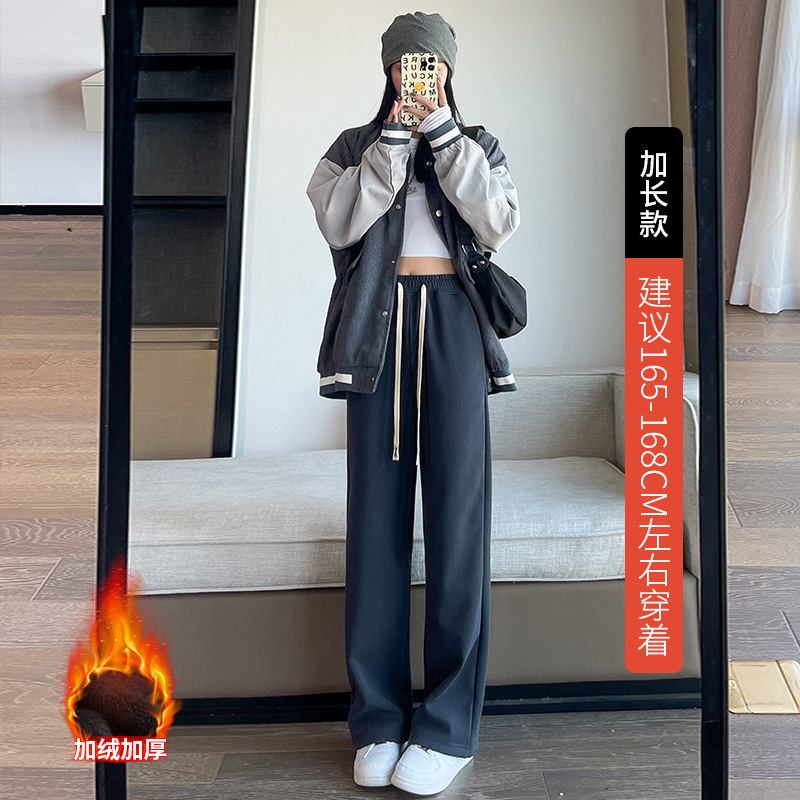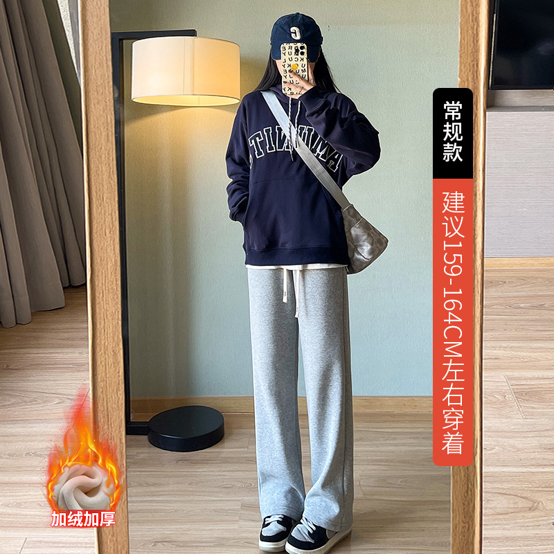 白灰阔腿裤垂感裤子女春秋休闲裤显瘦直筒裤宽松小个子运动裤女裤