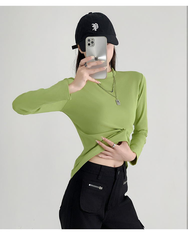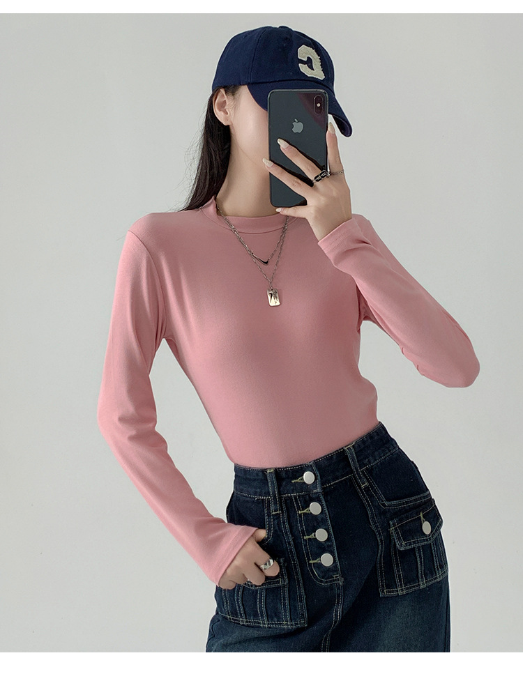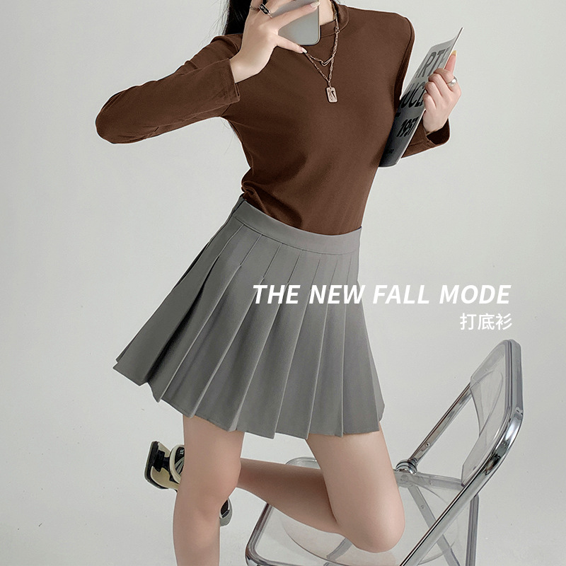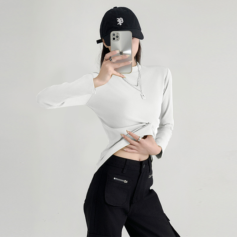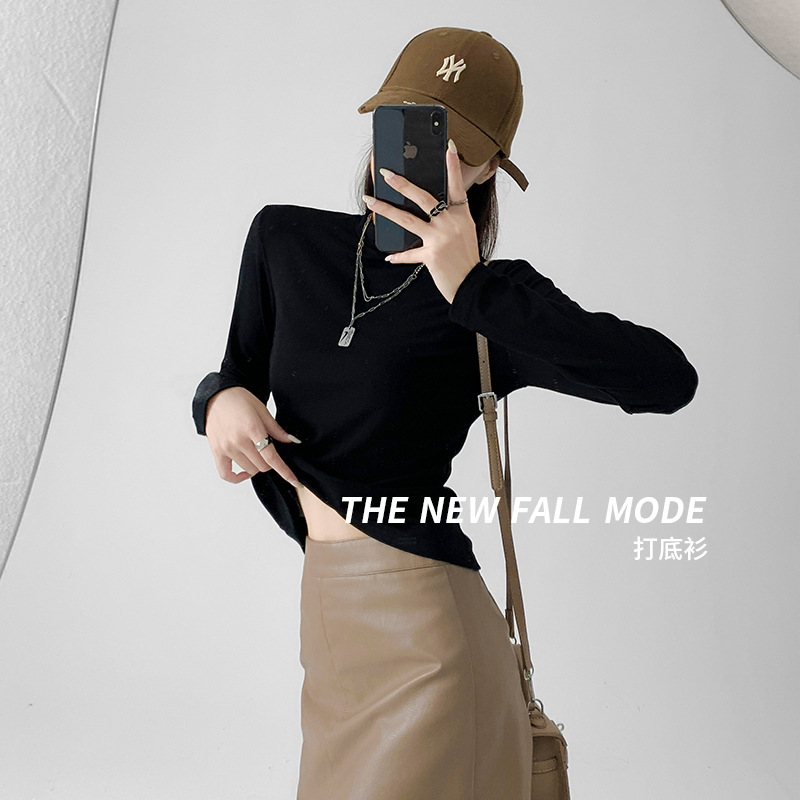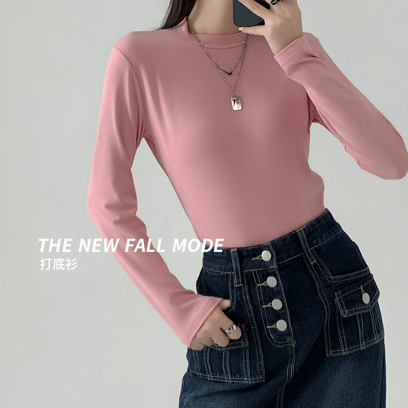 莫代尔圆领打底衫女春秋新款修身内搭长袖T恤弹力休闲辣妹上衣女
