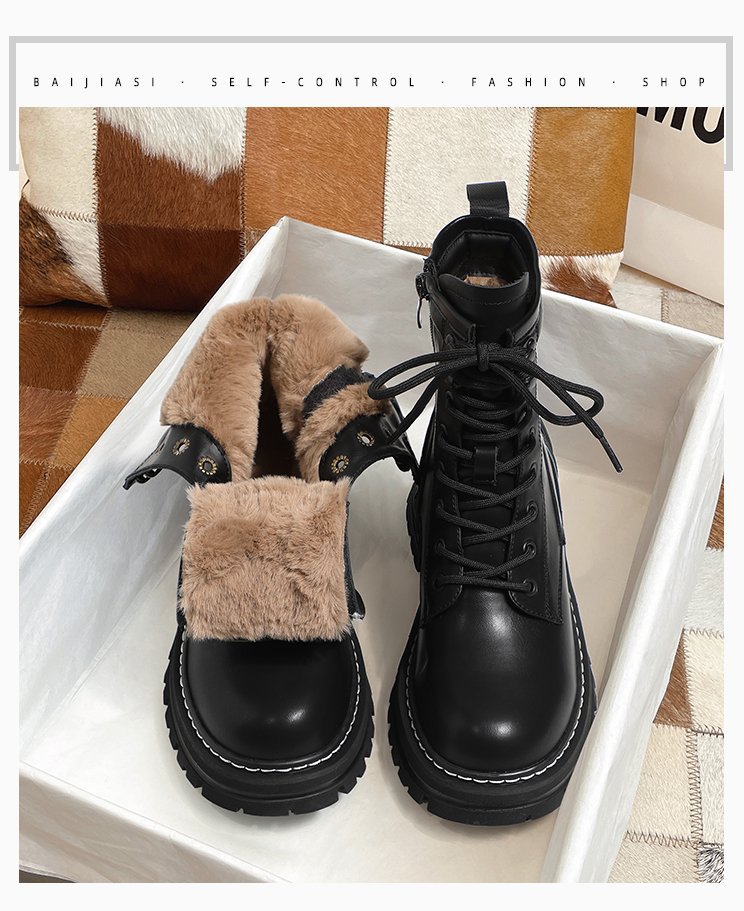 【阿蔓诺】雪地靴女2023秋冬新款英伦风加绒大棉鞋女厚底马丁靴女