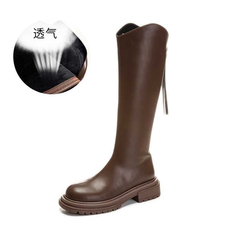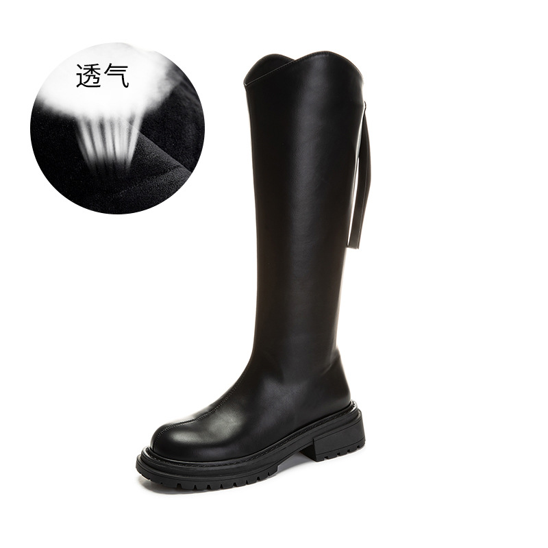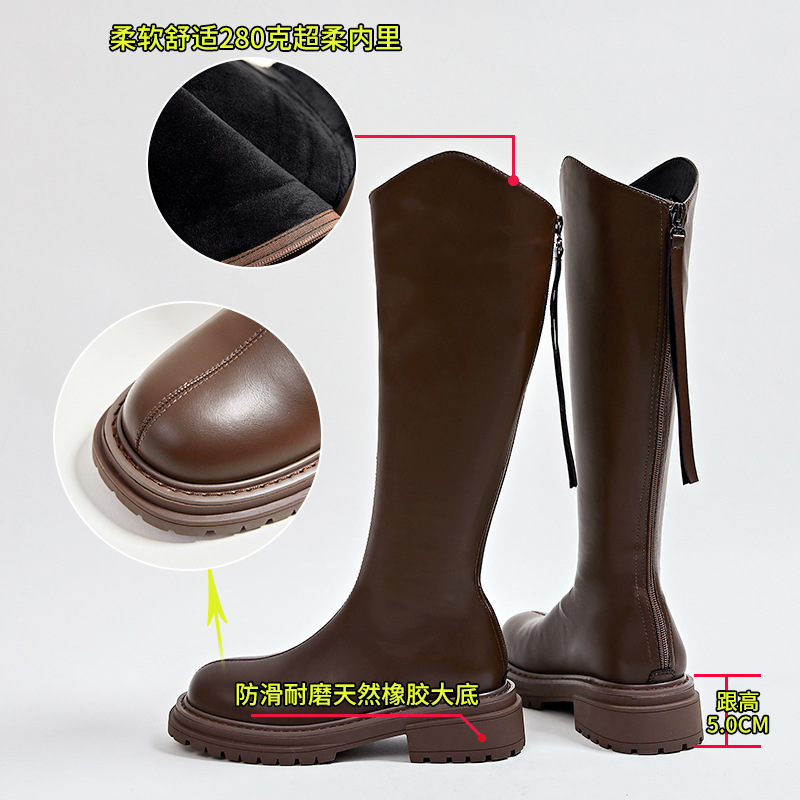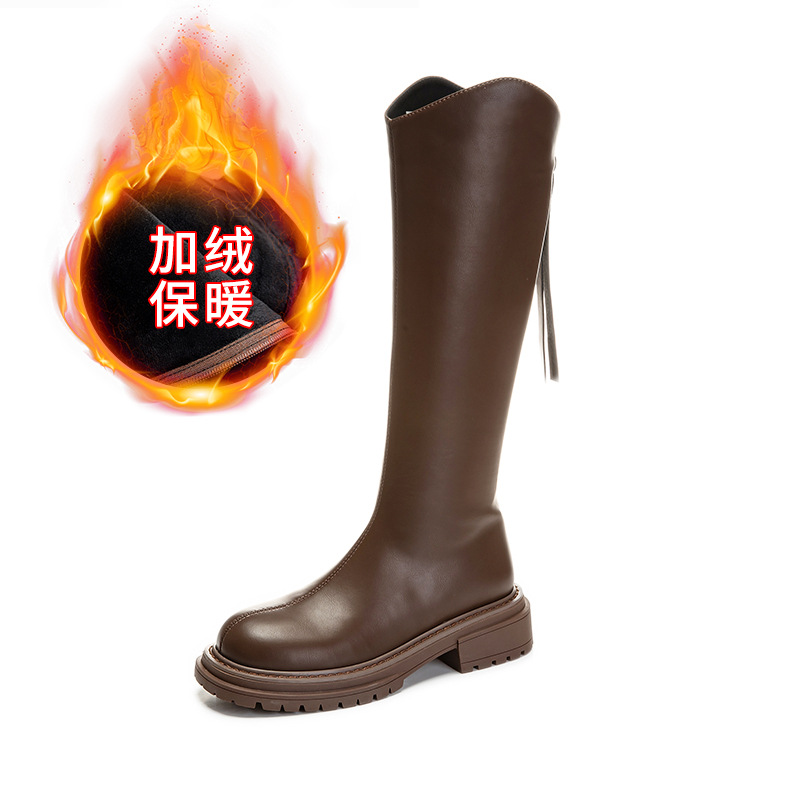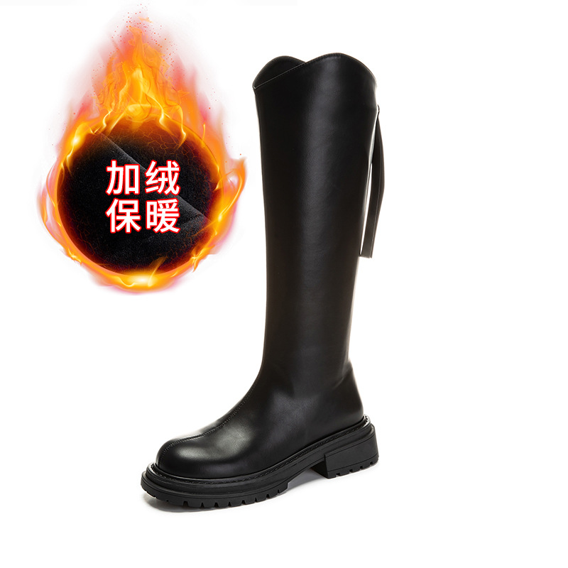 加绒长筒靴女2023冬季新款骑士靴粗跟复古长靴女靴子百搭女鞋