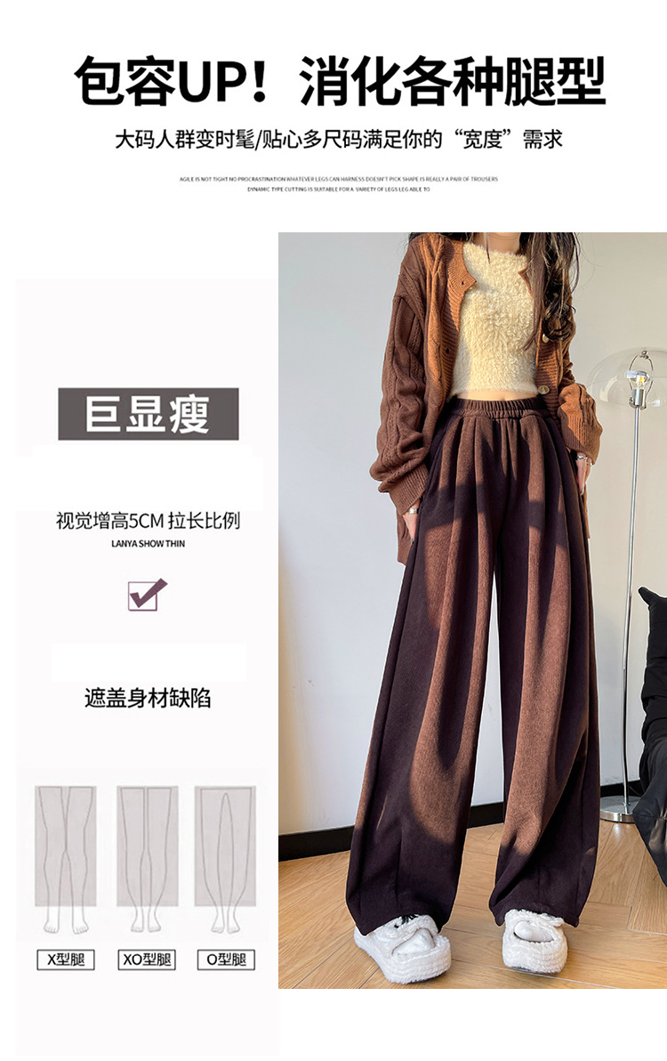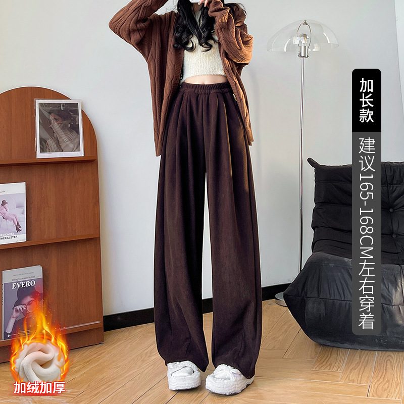 针织山本裤女秋冬新款加绒裤子显瘦宽松休闲直筒裤垂感拖地阔腿裤