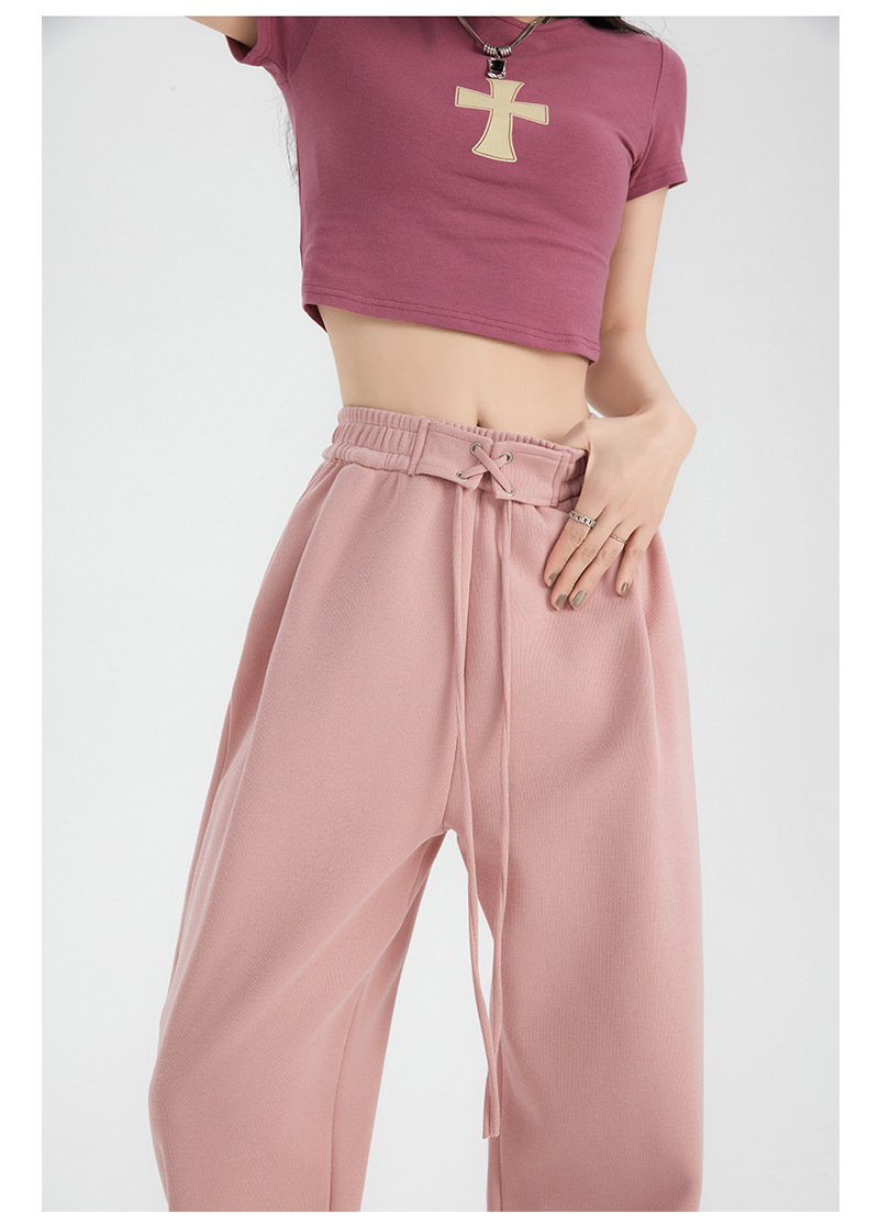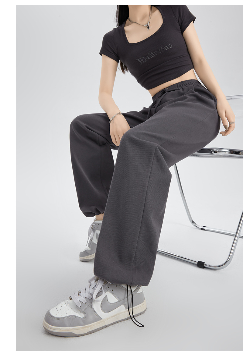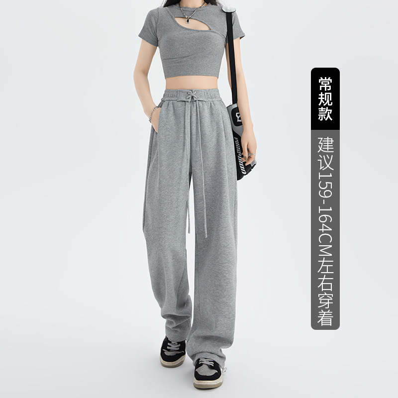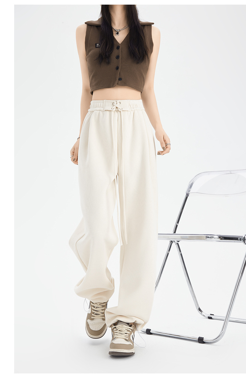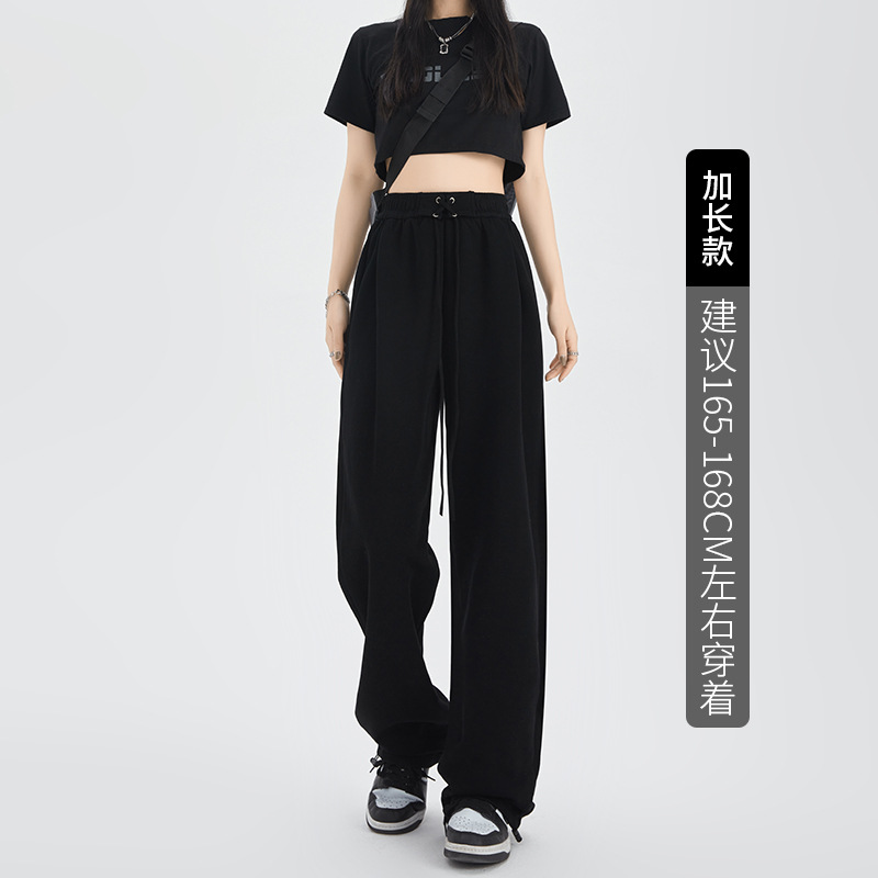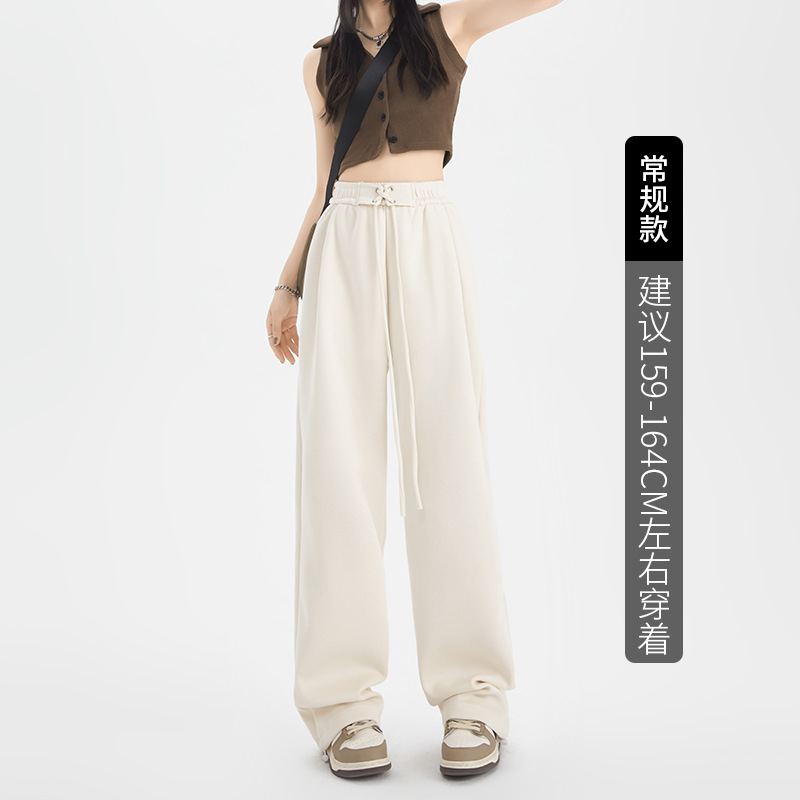 绑带运动裤女裤子秋冬新款高腰直筒休闲裤卫裤女装拖地高腰阔腿裤