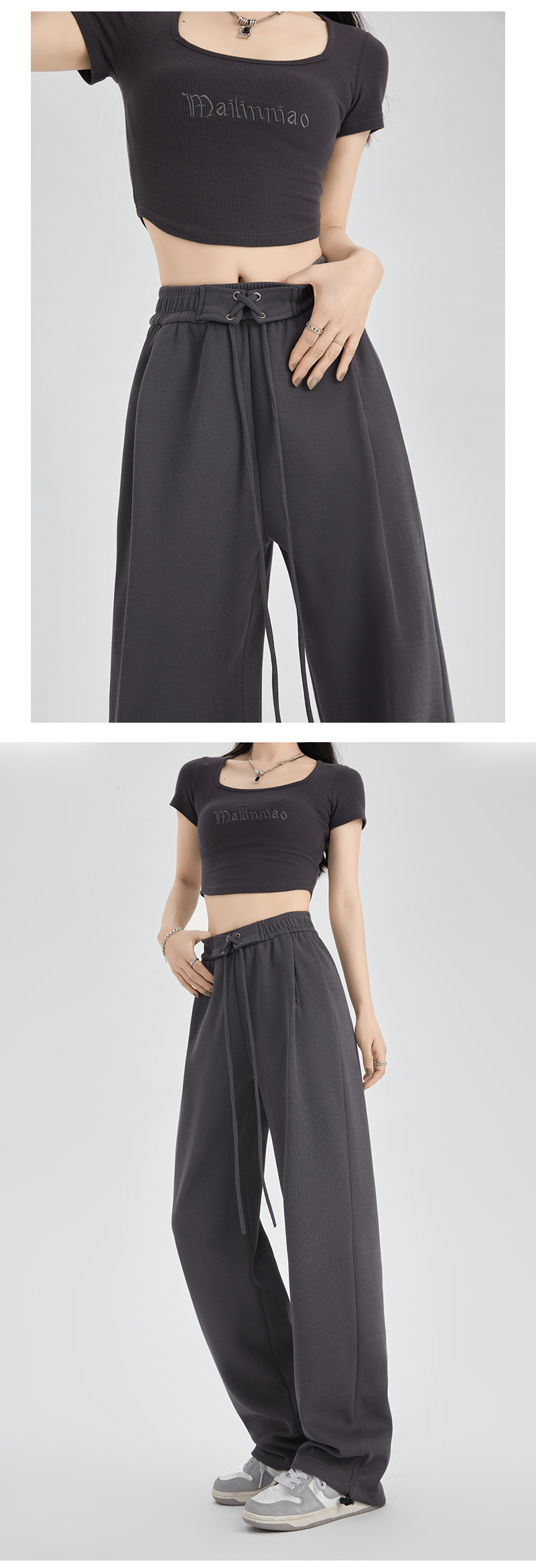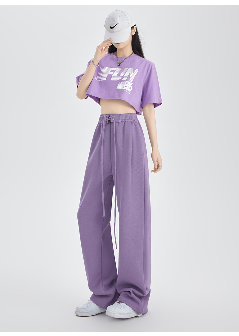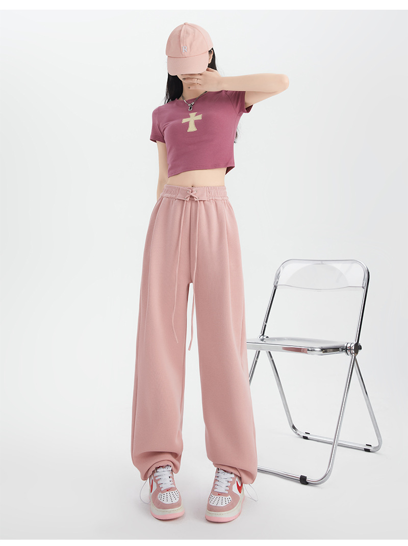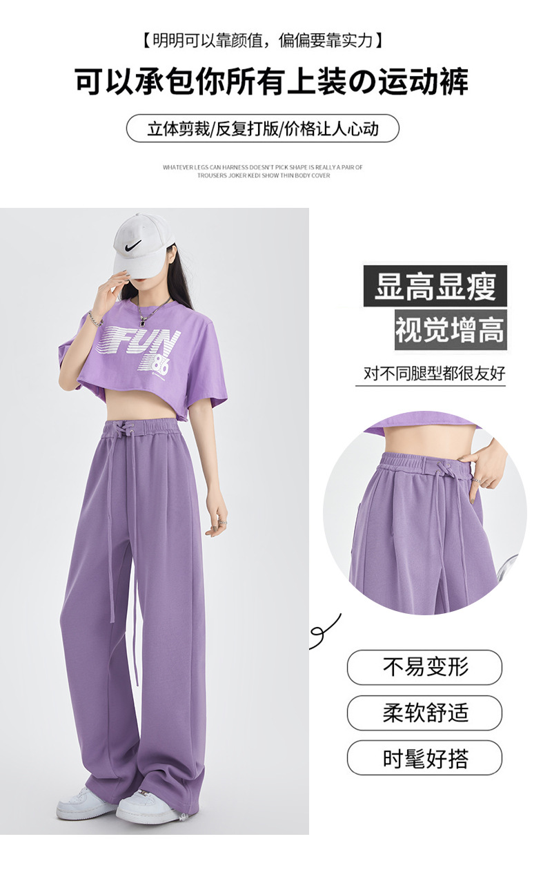 绑带运动裤女裤子秋冬新款高腰直筒休闲裤卫裤女装拖地高腰阔腿裤