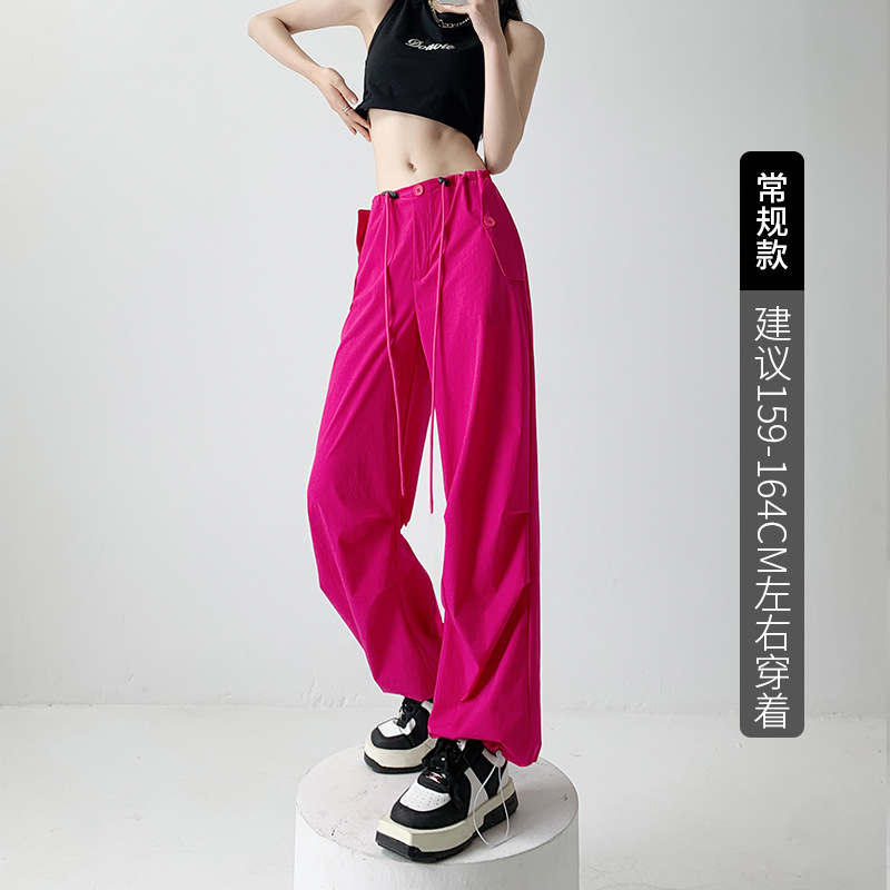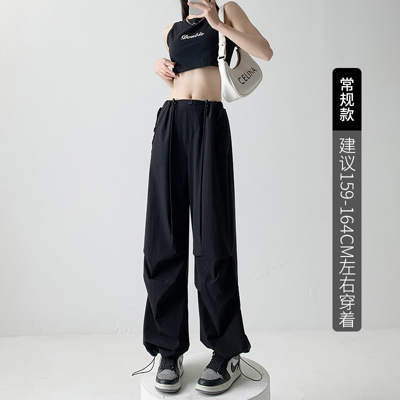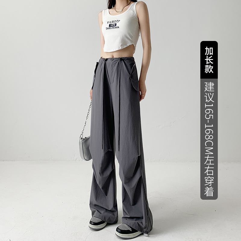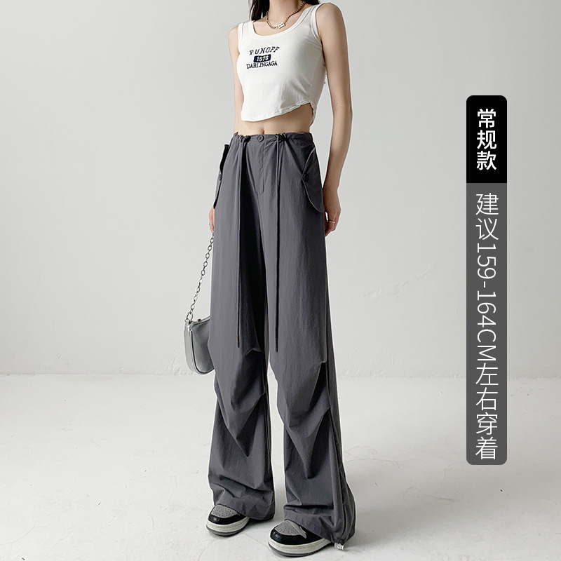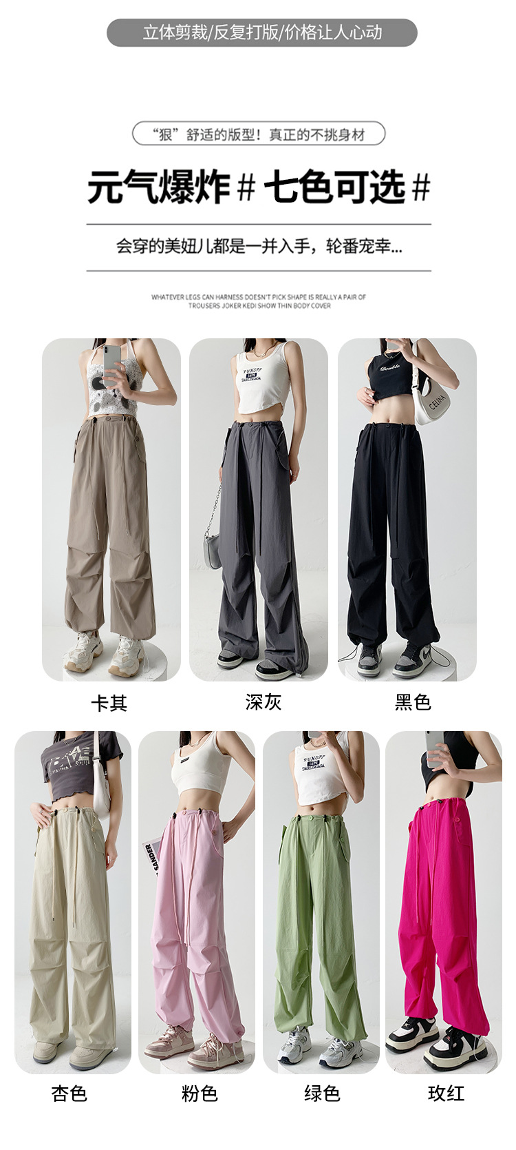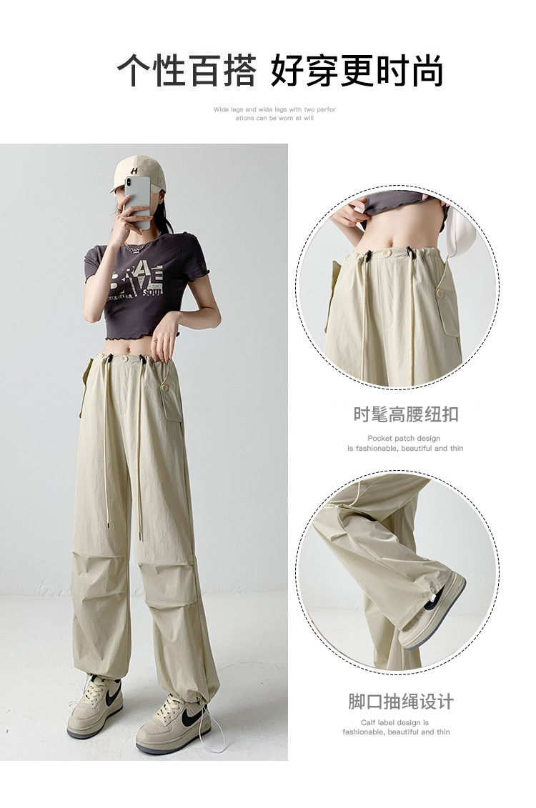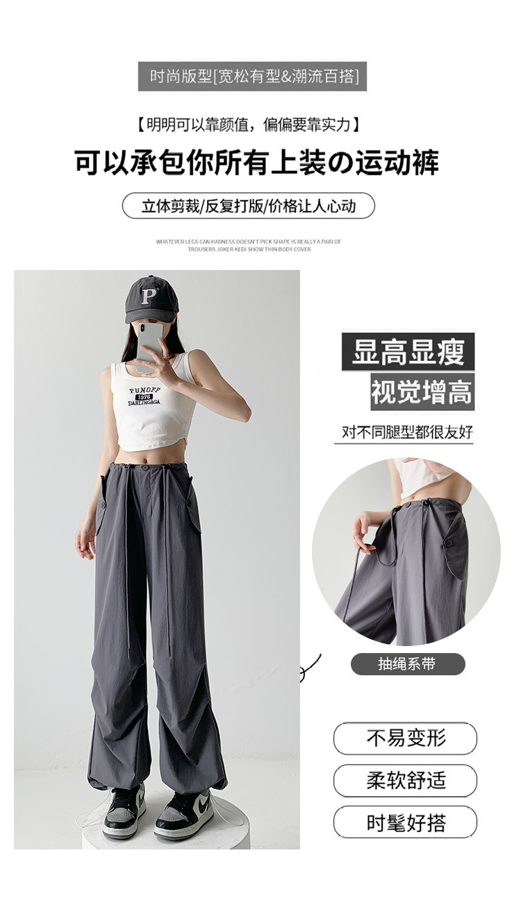 锦纶速干工装裤女夏季新款美式降落伞裤子高腰阔腿休闲卫裤运动裤