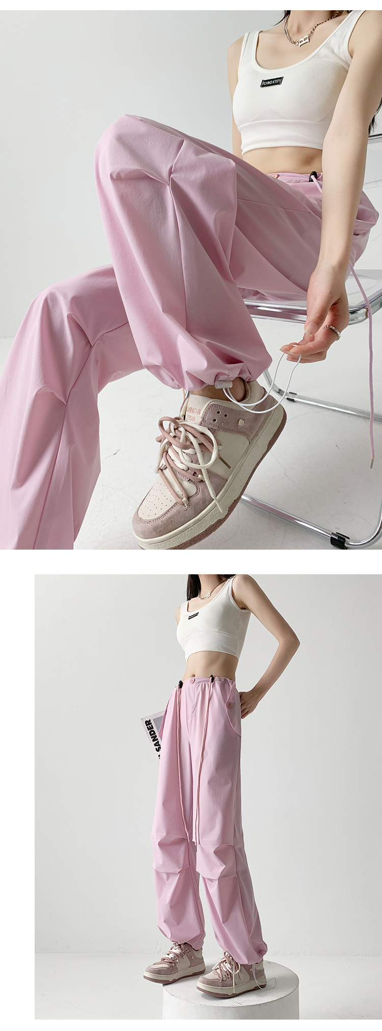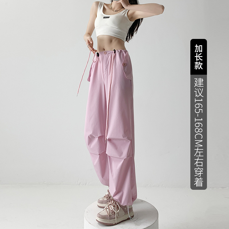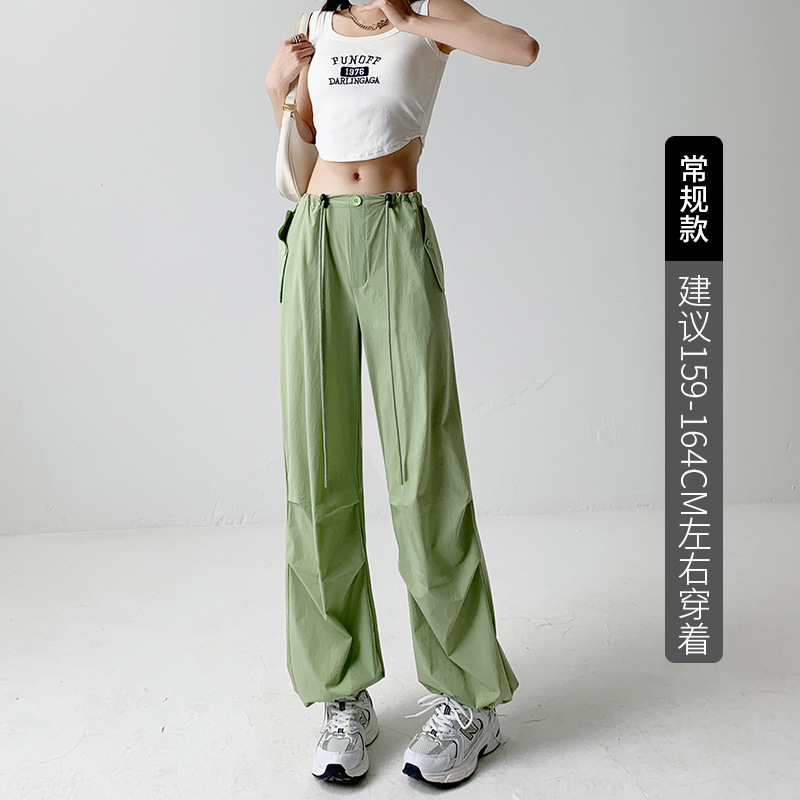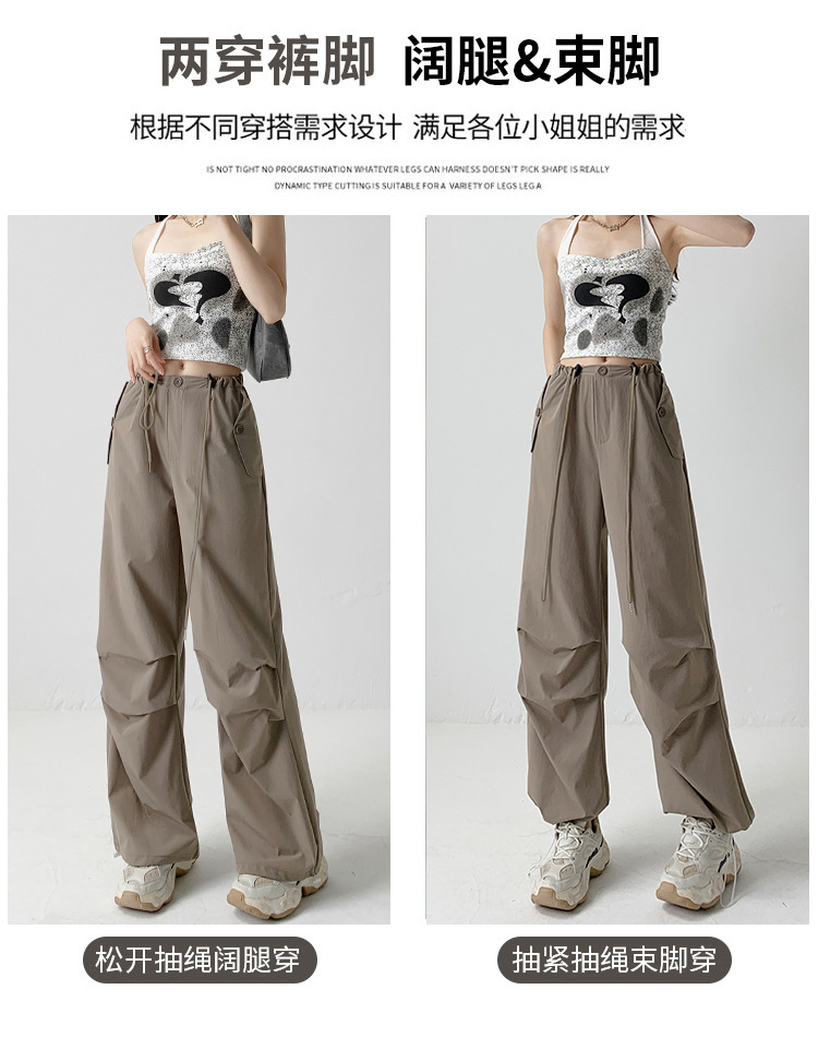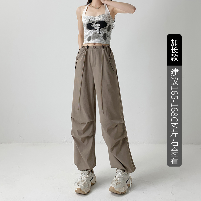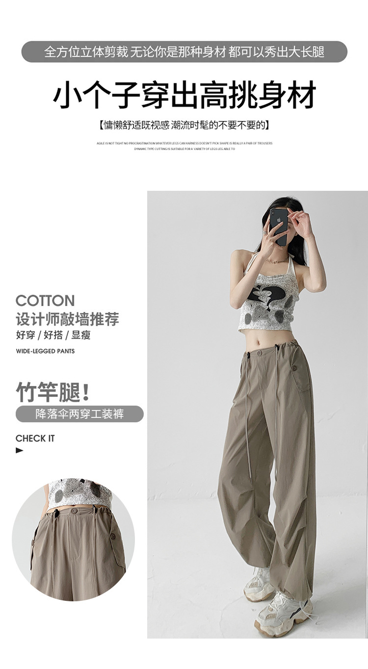 锦纶速干工装裤女夏季新款美式降落伞裤子高腰阔腿休闲卫裤运动裤