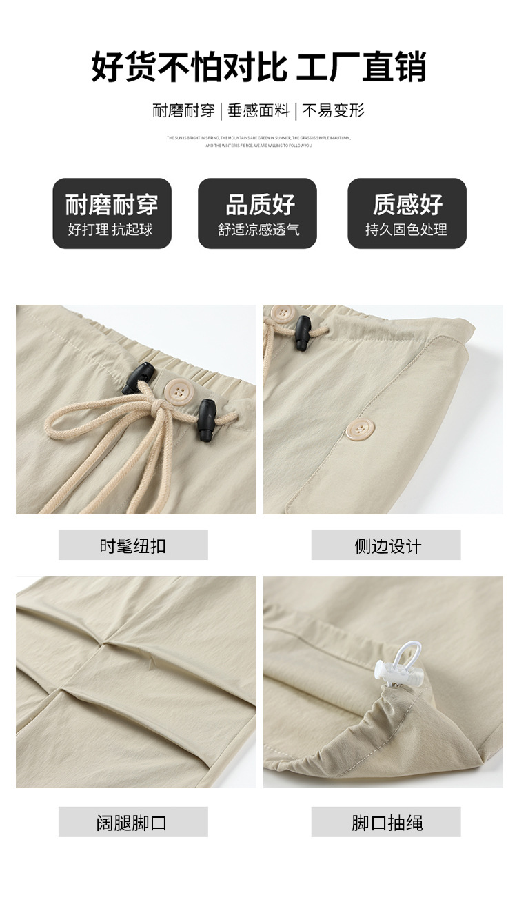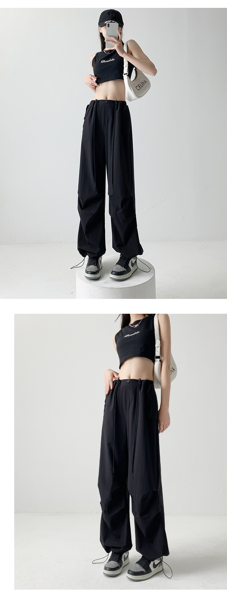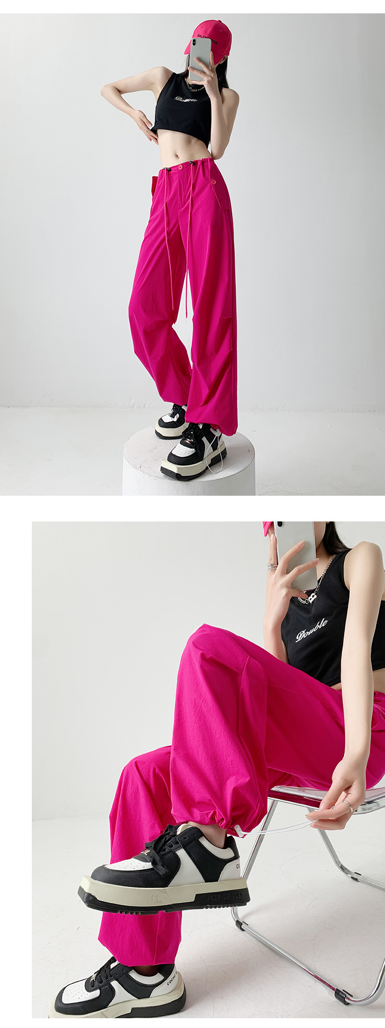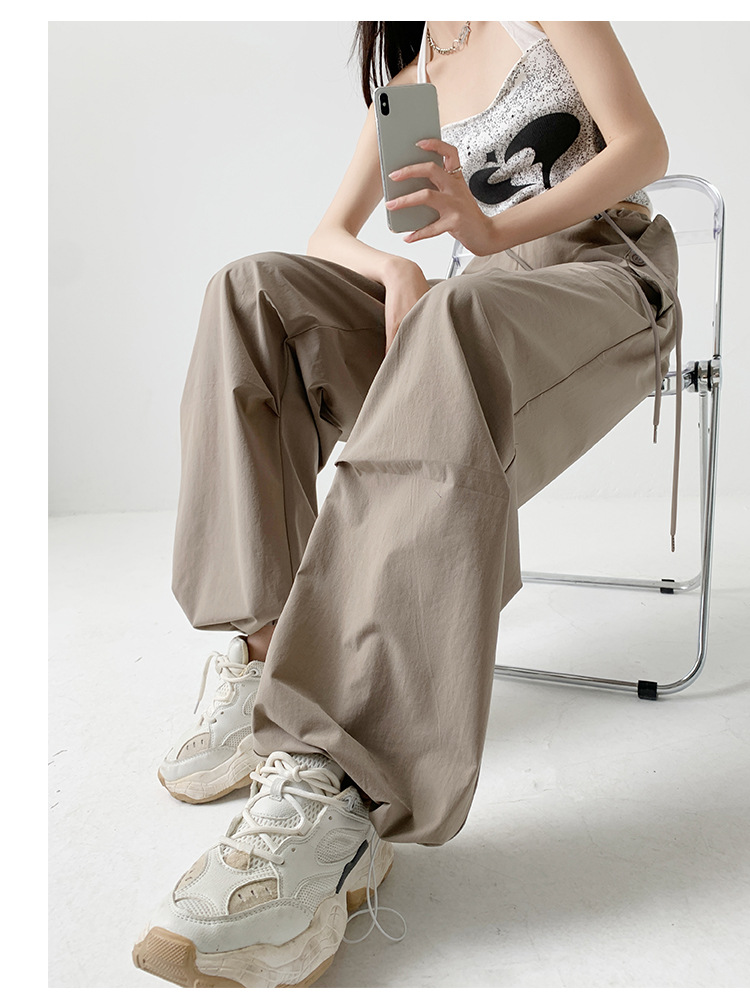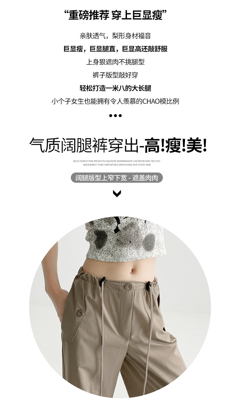 锦纶速干工装裤女夏季新款美式降落伞裤子高腰阔腿休闲卫裤运动裤