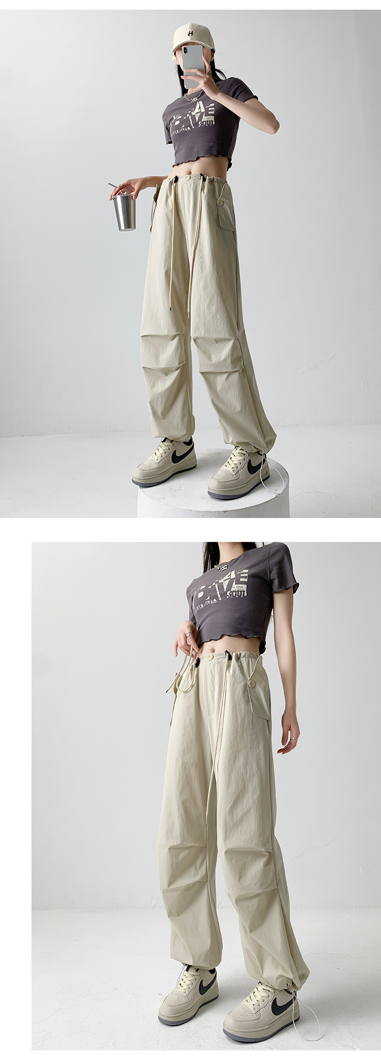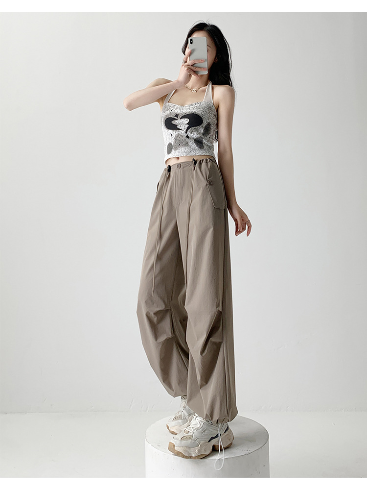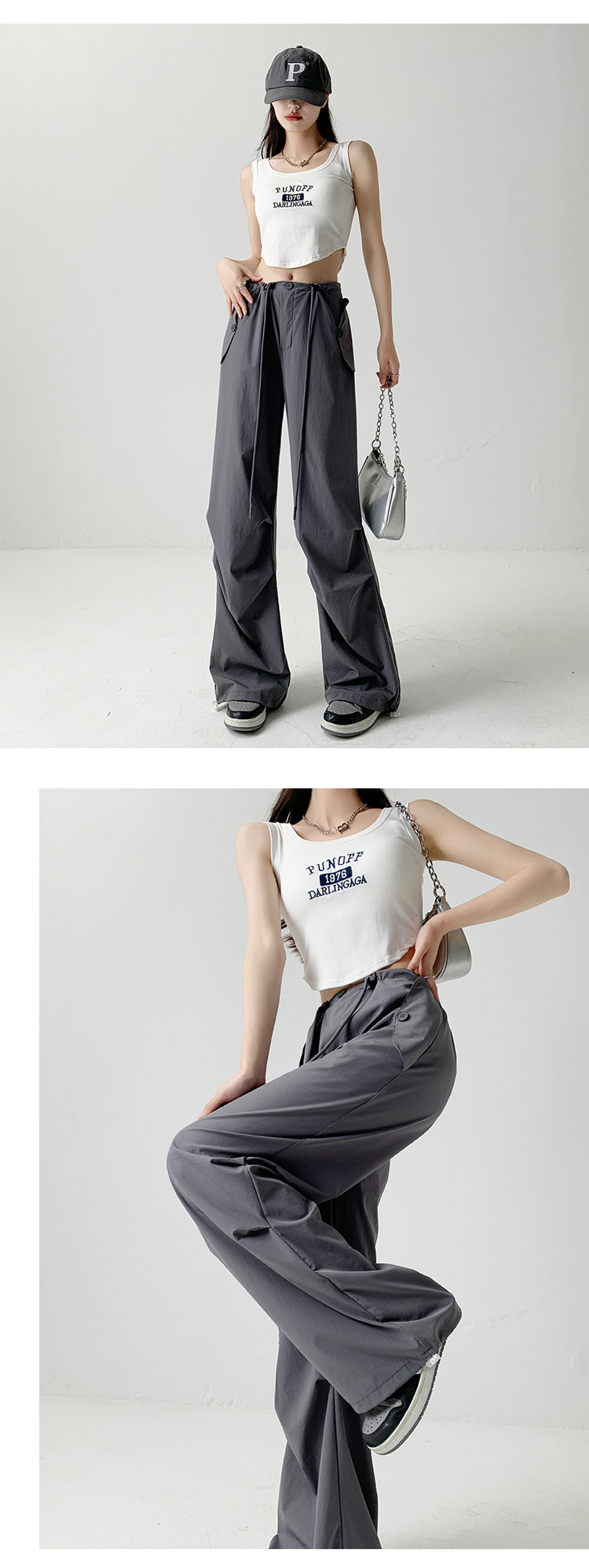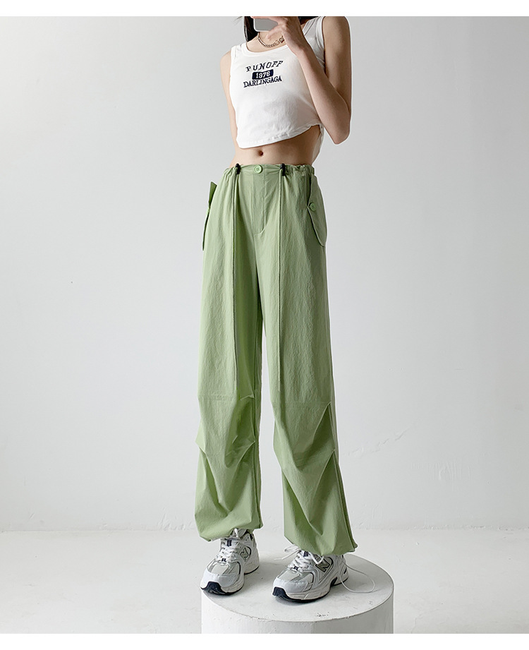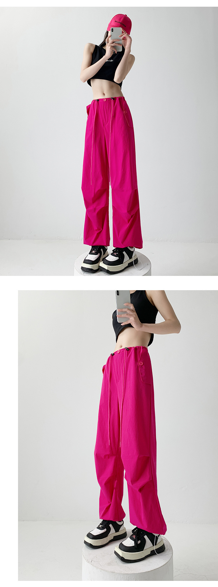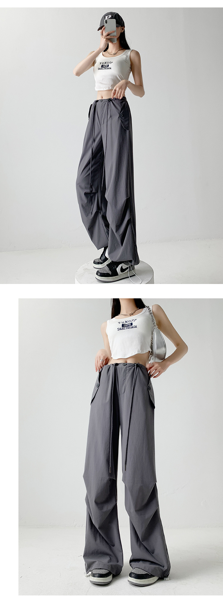 锦纶速干工装裤女夏季新款美式降落伞裤子高腰阔腿休闲卫裤运动裤
