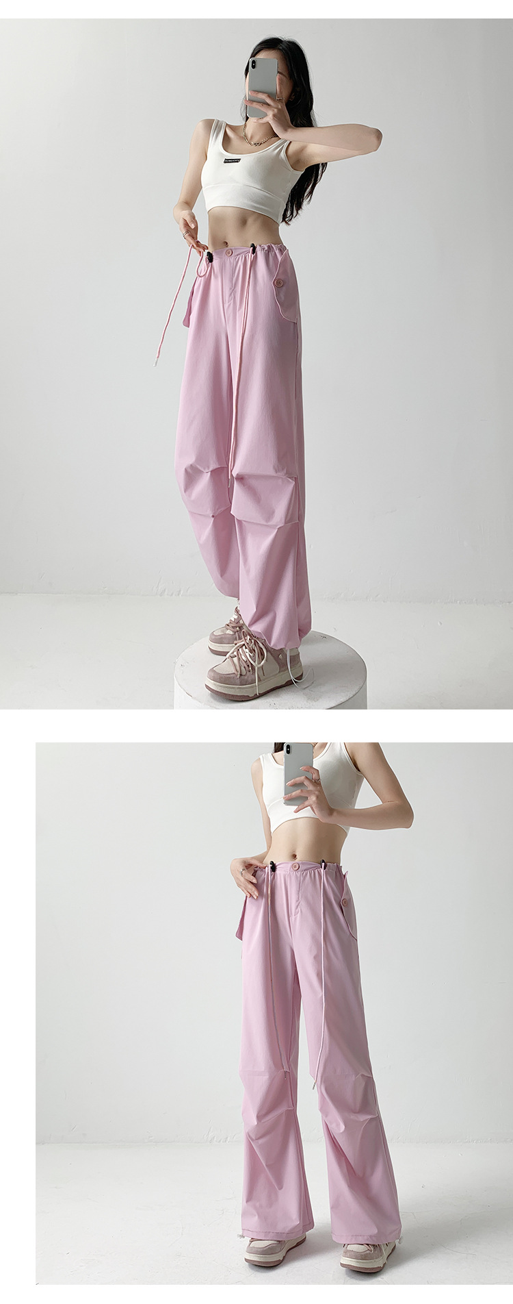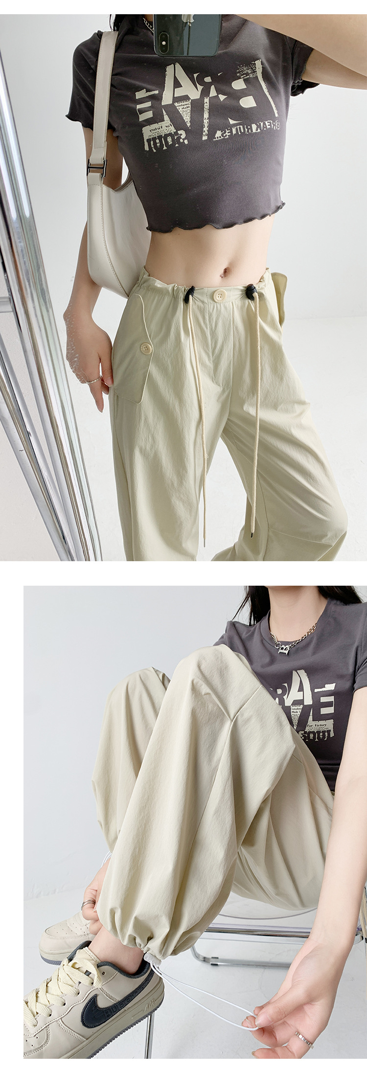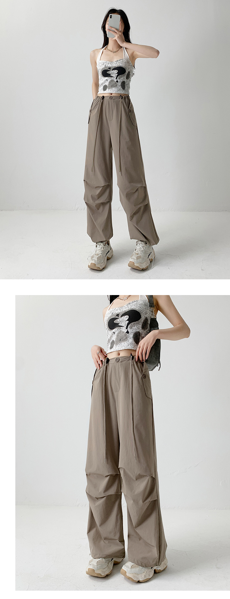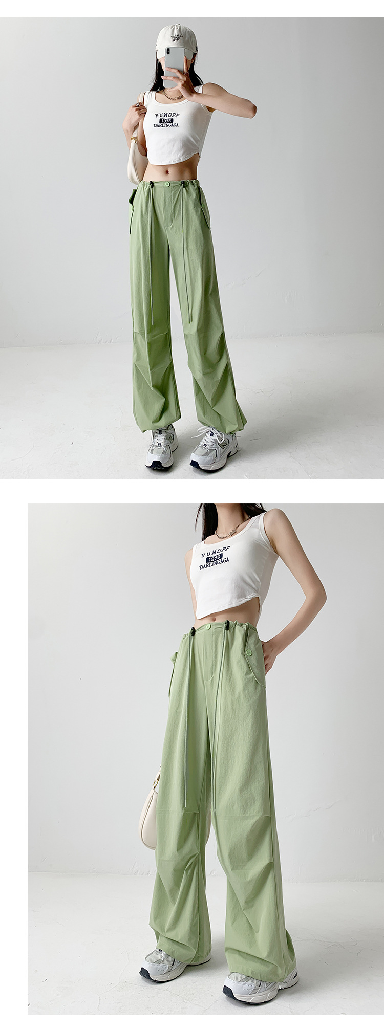 锦纶速干工装裤女夏季新款美式降落伞裤子高腰阔腿休闲卫裤运动裤