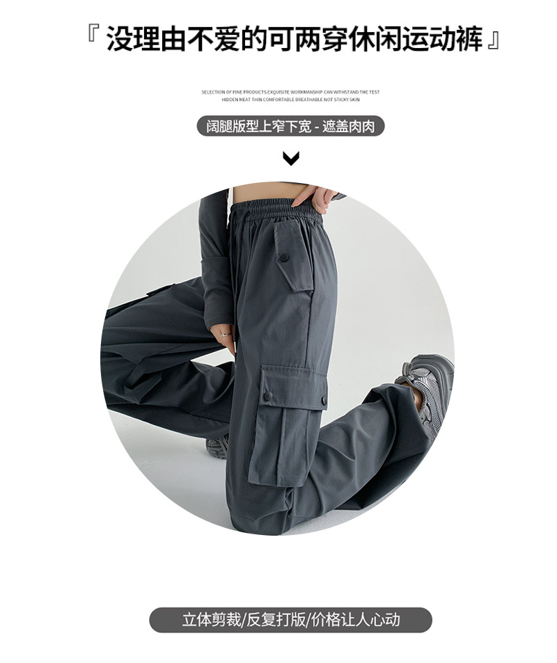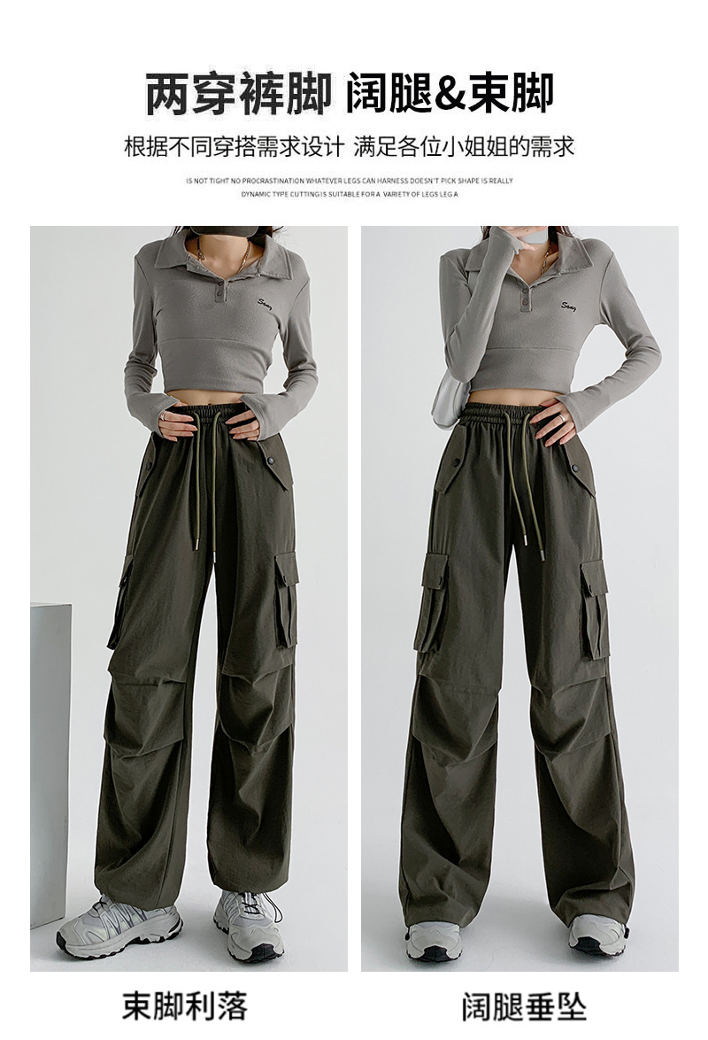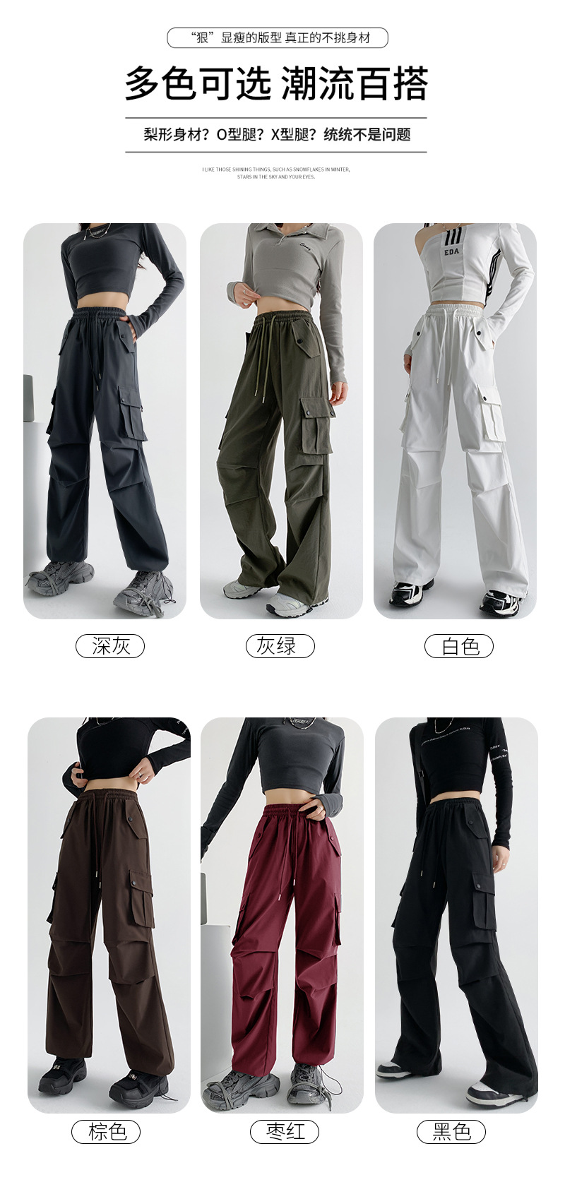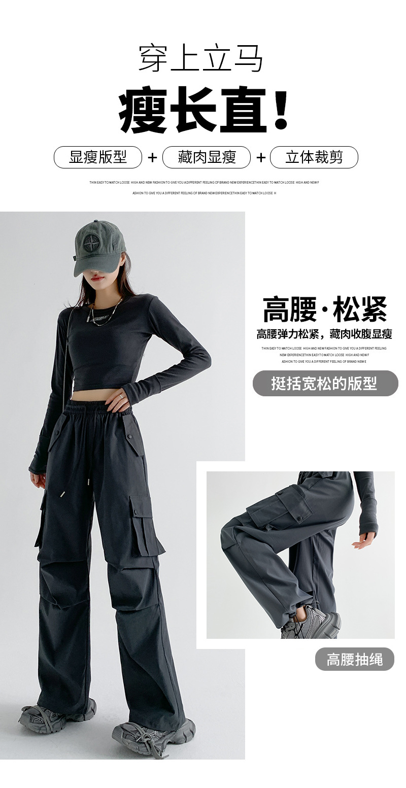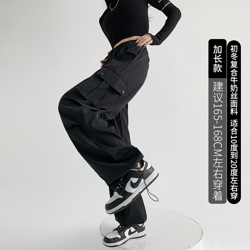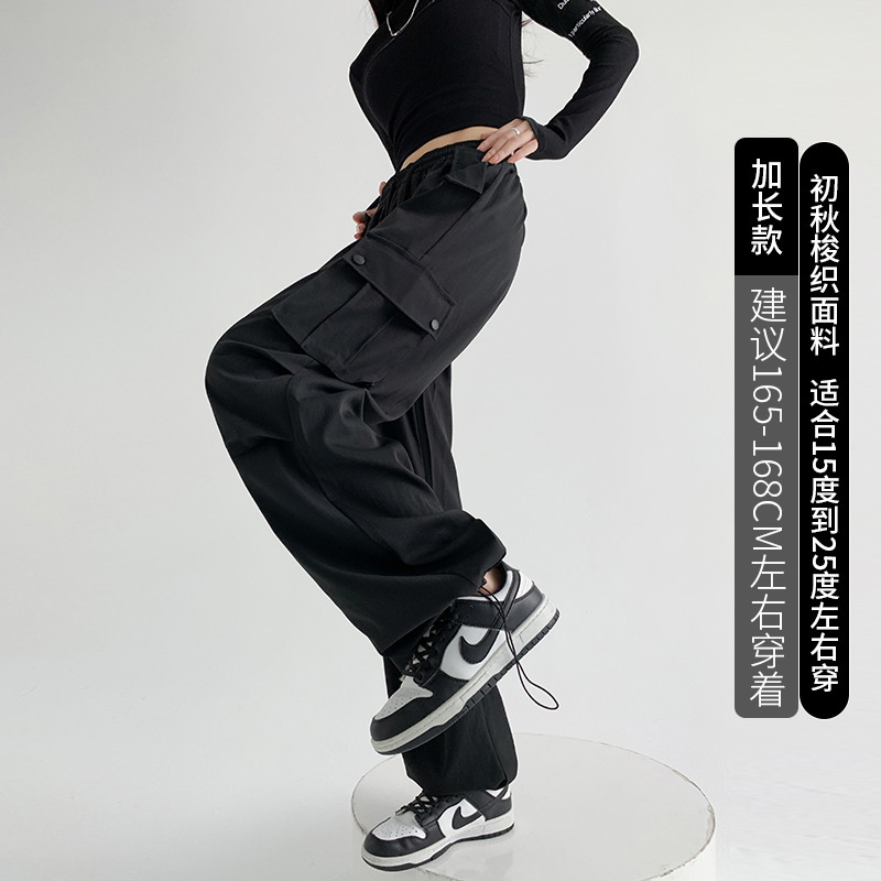 美式工装裤女裤子春秋新宽松显瘦辣妹直筒卫裤宽松阔腿休闲运动裤