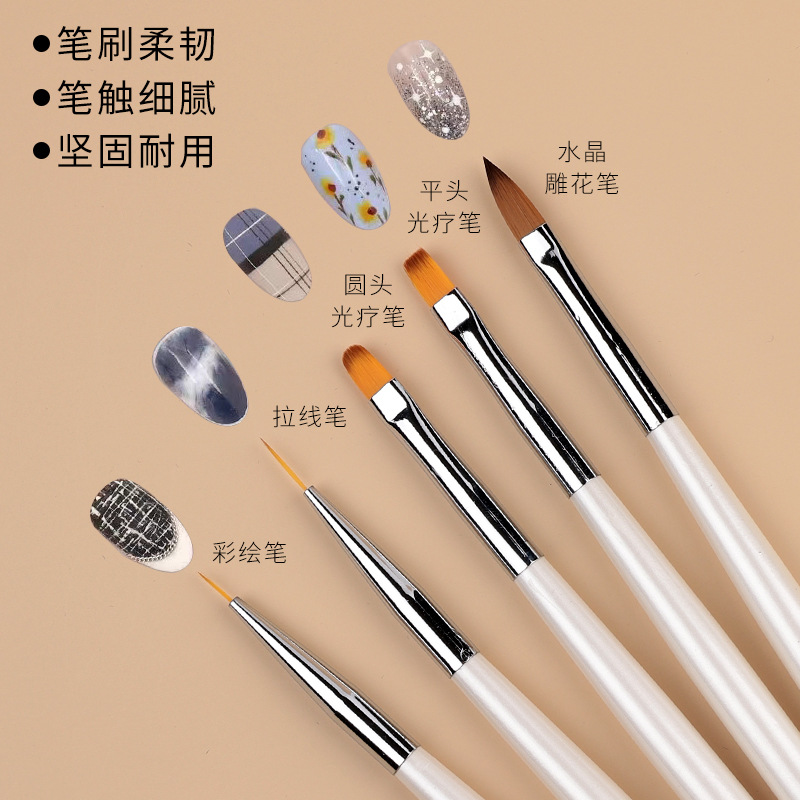 192 珠光白双头点钻美甲笔5支装彩绘拉线平头圆头光疗水晶