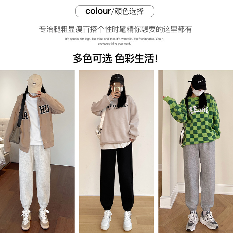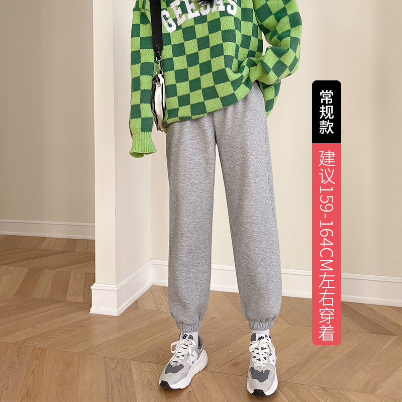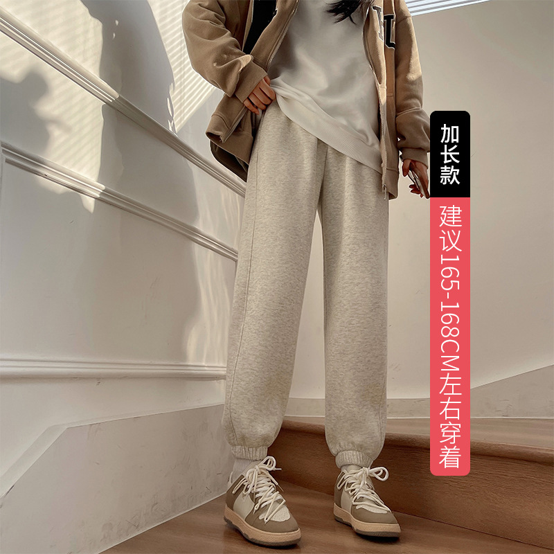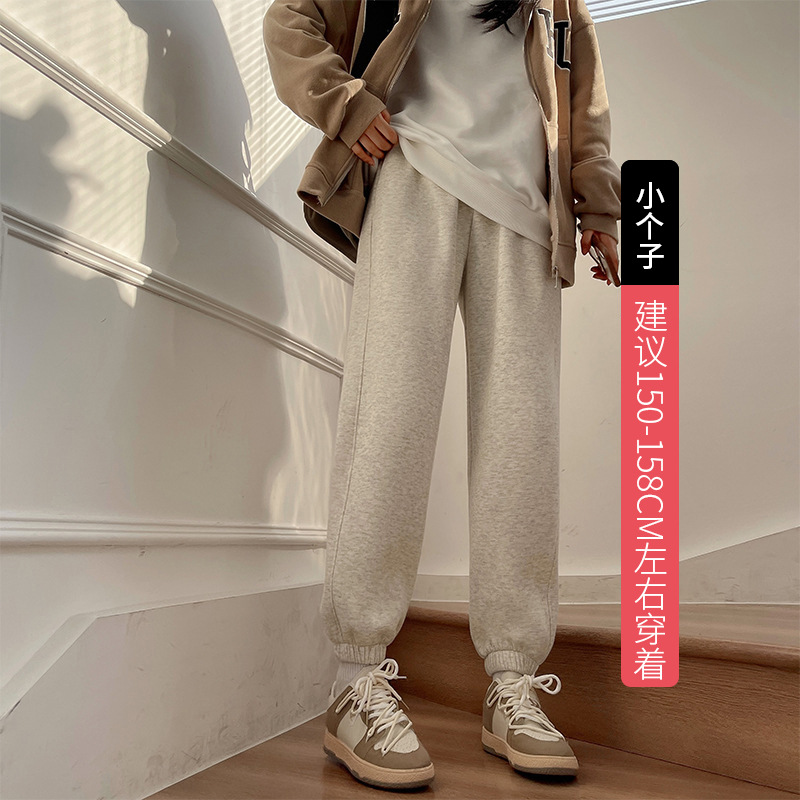 白灰运动裤女裤秋冬外穿加绒卫裤宽松休闲裤显瘦小个子女装哈伦裤